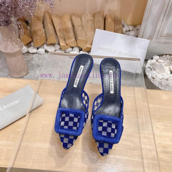 ? MANOLO BLAHNlK 2024 New Mb Fashion Little Women’s High Heels Checkered Cloth Mill Slipperjwaaoo41