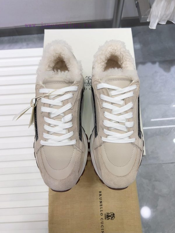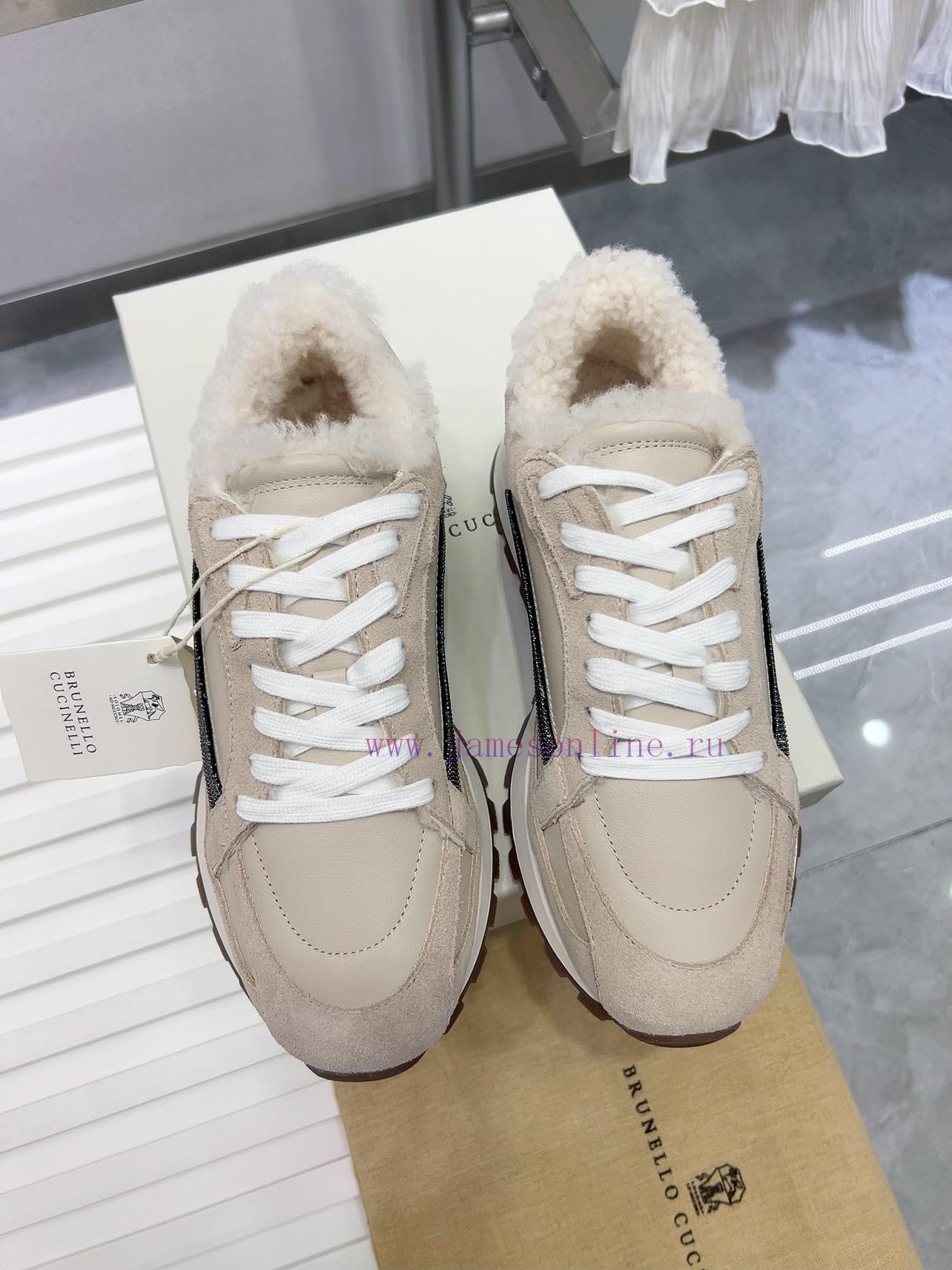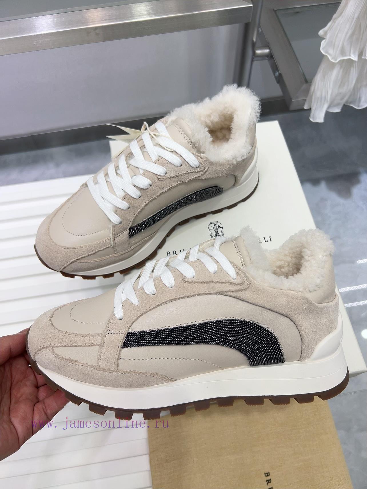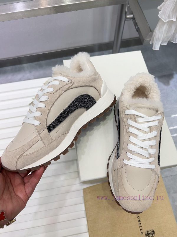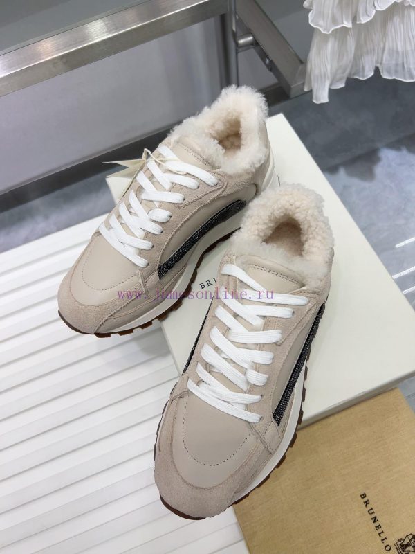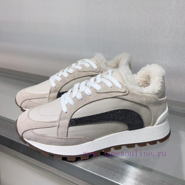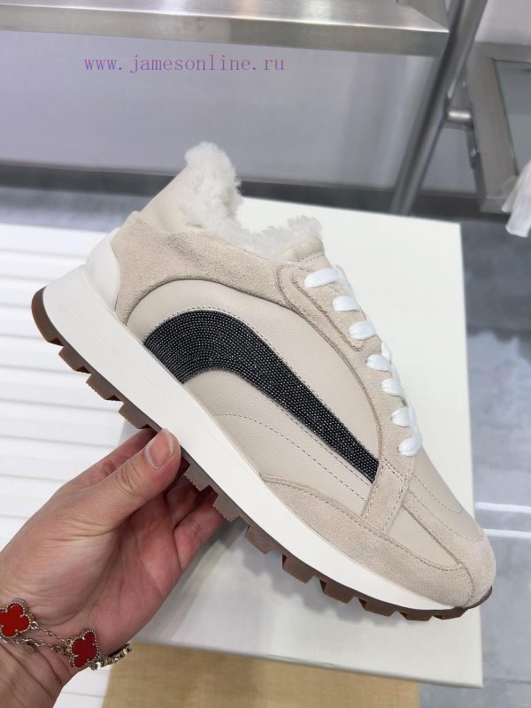 Winter new item, Brunello cucinelli BC new autumn and winter new item, women’s striped suede casual lamb wool sports shoes decorated with bead sports shoes, model number 25G27POne to one replica of the shoe upper made of high silk gloss cowhide splicing special materialMatching the chain without fading, the ruler has no bubblesInner lamb woolPads with lamb wool high-density elastic latex, detachable and independent high elastic latex insoleThe original version of the outsole looks like a rubber outsoleSizes 35-4235,42 Customized Non refundable