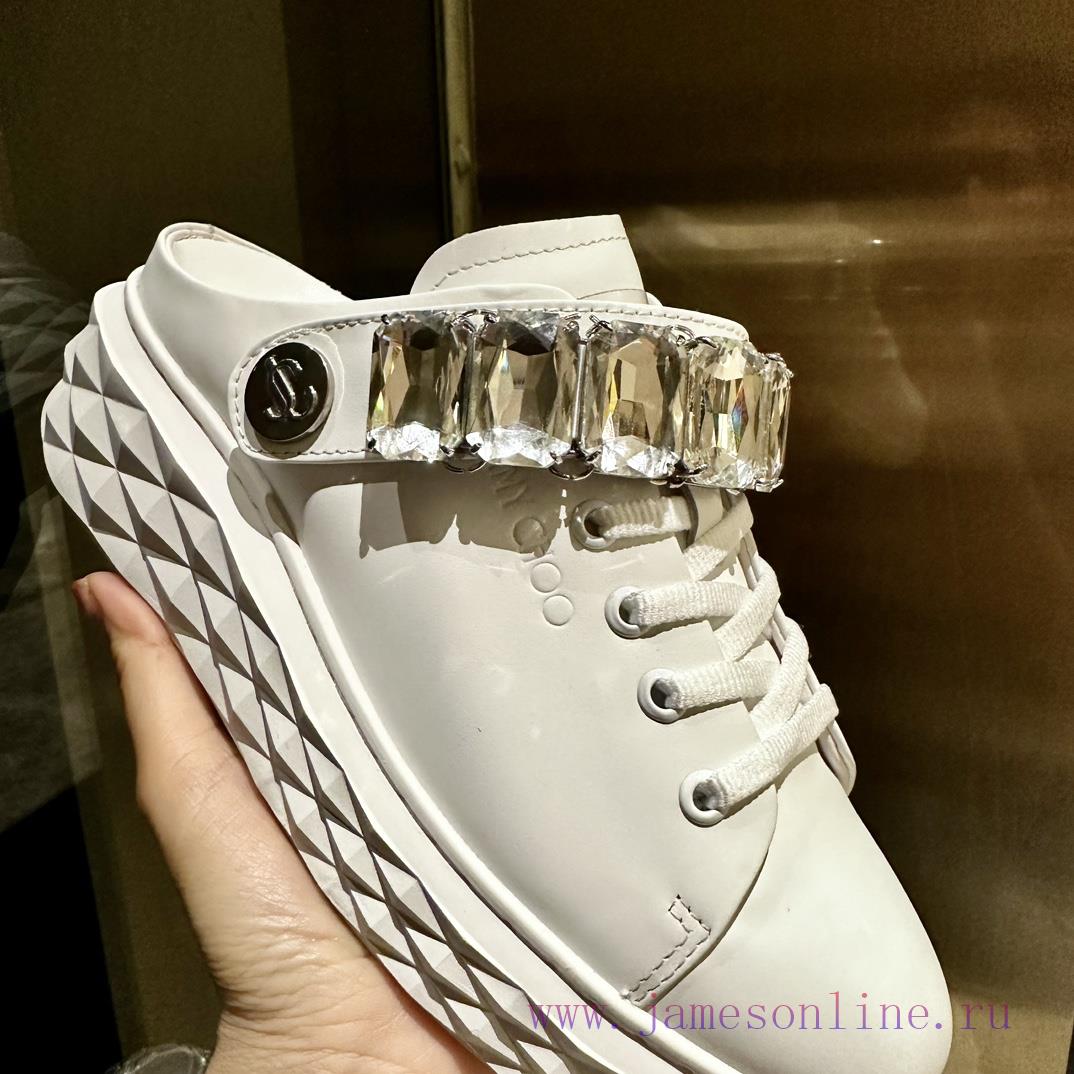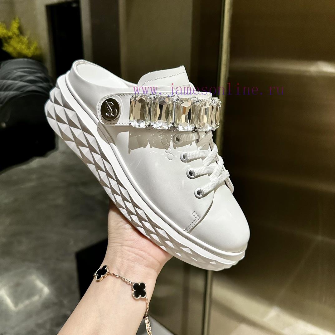 2024 new Jimmy Zhou JIMMY CHOO, released, original large sole casual white shoes, adopting the latest craftsmanship design, strong three-dimensional sense, multiple craftsmanship fusion together, subverting fashion, super stylish rhinestones matched with super beautiful pure hand sewn diamonds, original one-to-oneVersatile and trendy, two ways of wearing: cool and cuteSize35-40