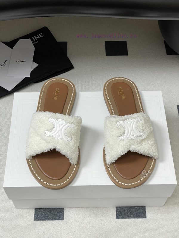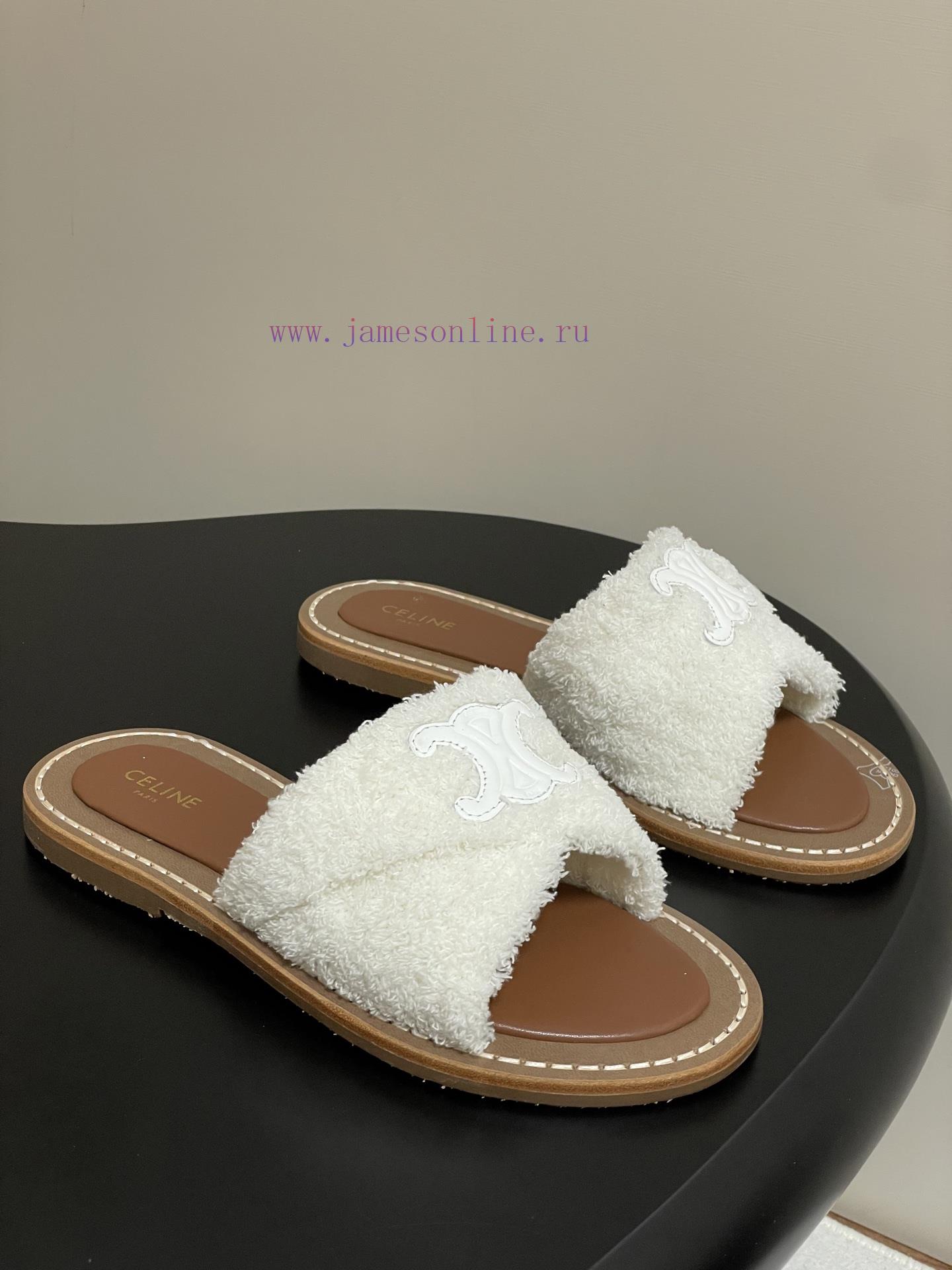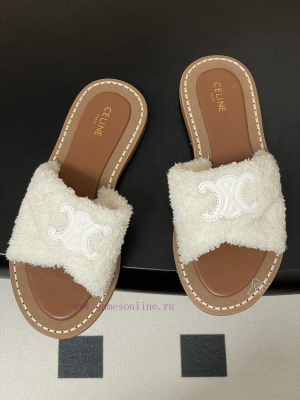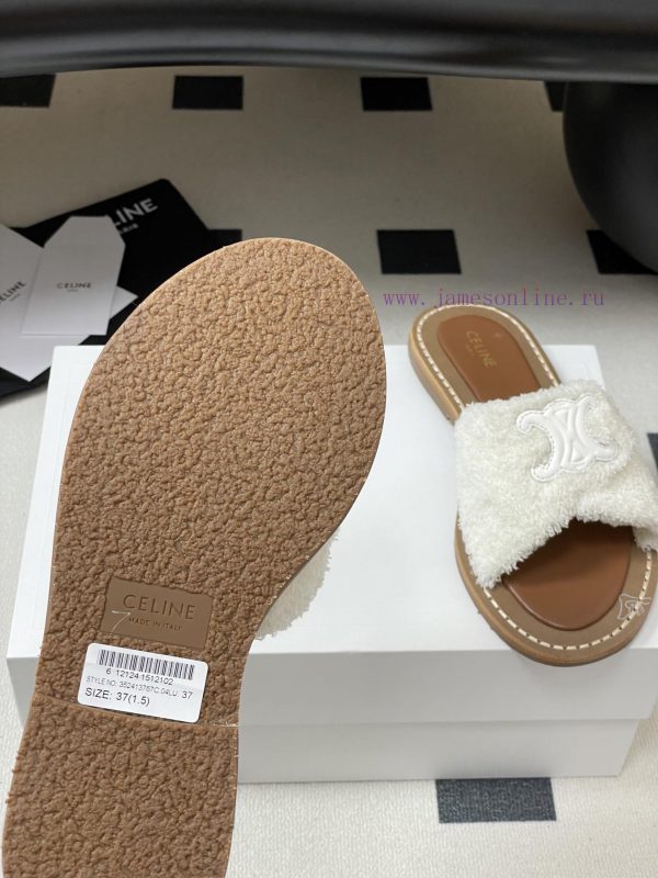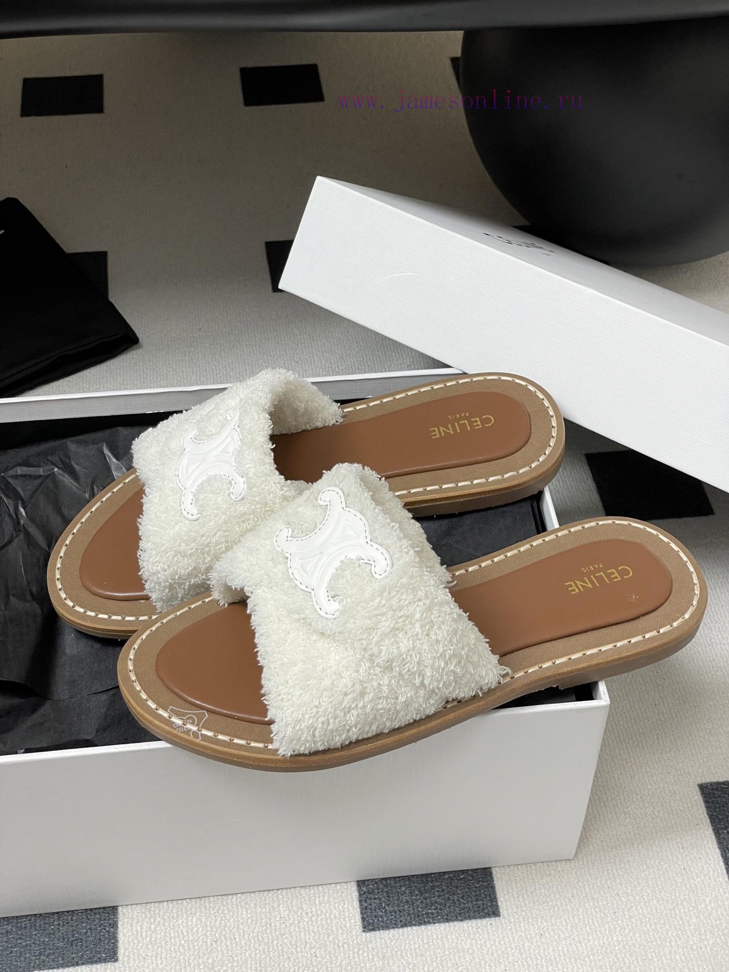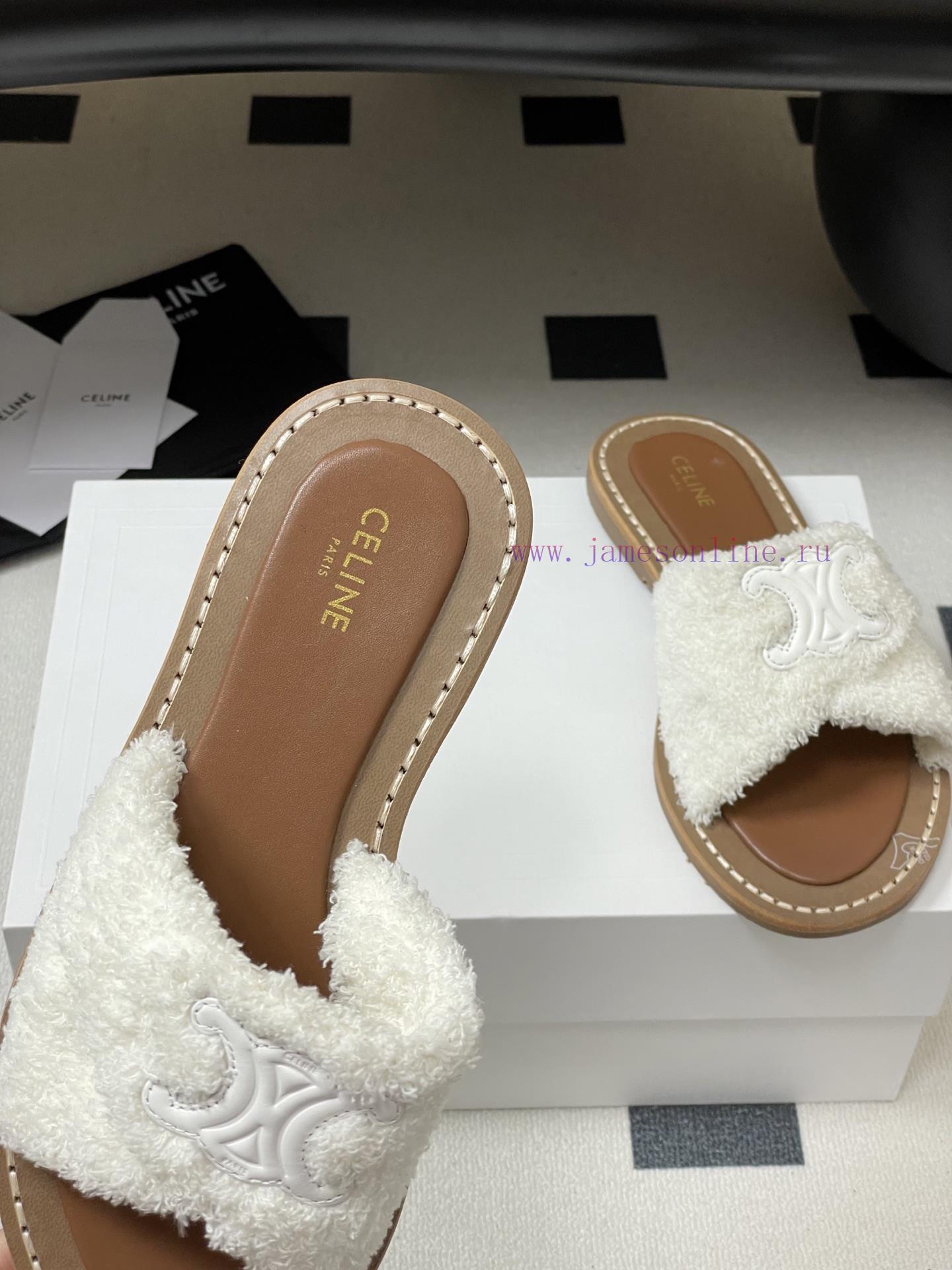-Top quality25ss Spring/Summer New CELINE LYMPIA Twisted Plush Slippers Triumphal Arch Plush Face British Style Flat Bottom Micro Label SlippersSimplicity, grandeur, fashion, durability, and timeless style are the timeless classics in the fashion industry. The retro British style allows you to wear a different temperamentSimple and comfortable, clean and tidy, plush is really beautiful. Whether worn alone or paired with wide leg pants, the high street is retro. Let’s do CELINE girl togetherCustomized plush fabric for shoe upperInner footrest sheepskinSole genuine leather edging/customized cigarette adhesive outsoleSize 35-3940.41.42 Customized Non refundable