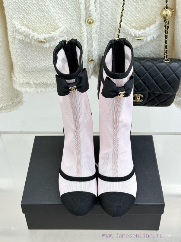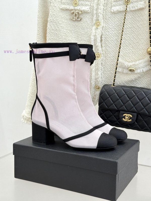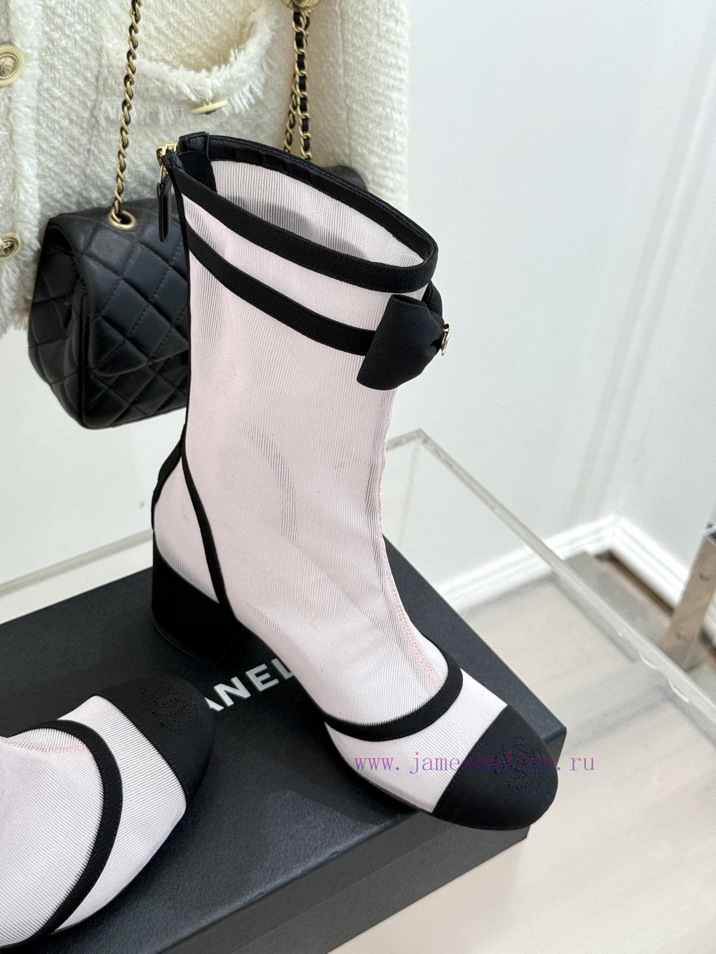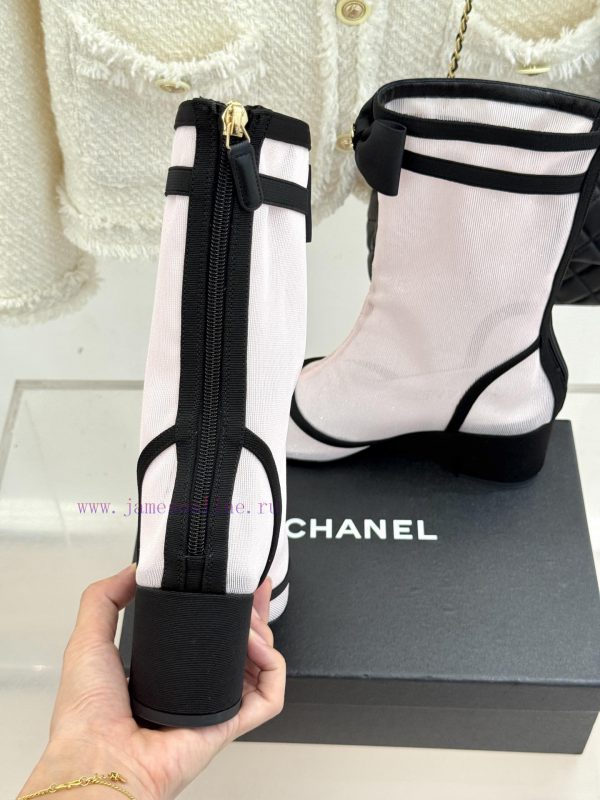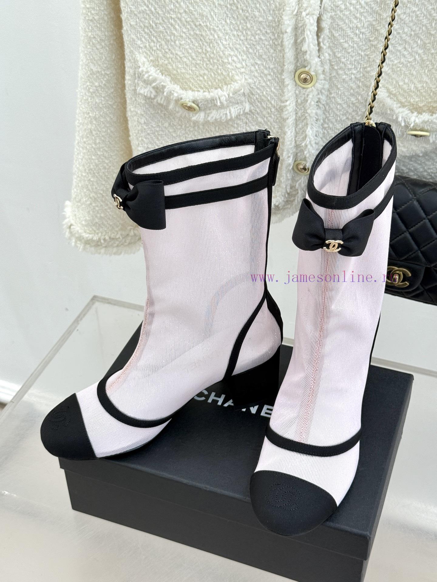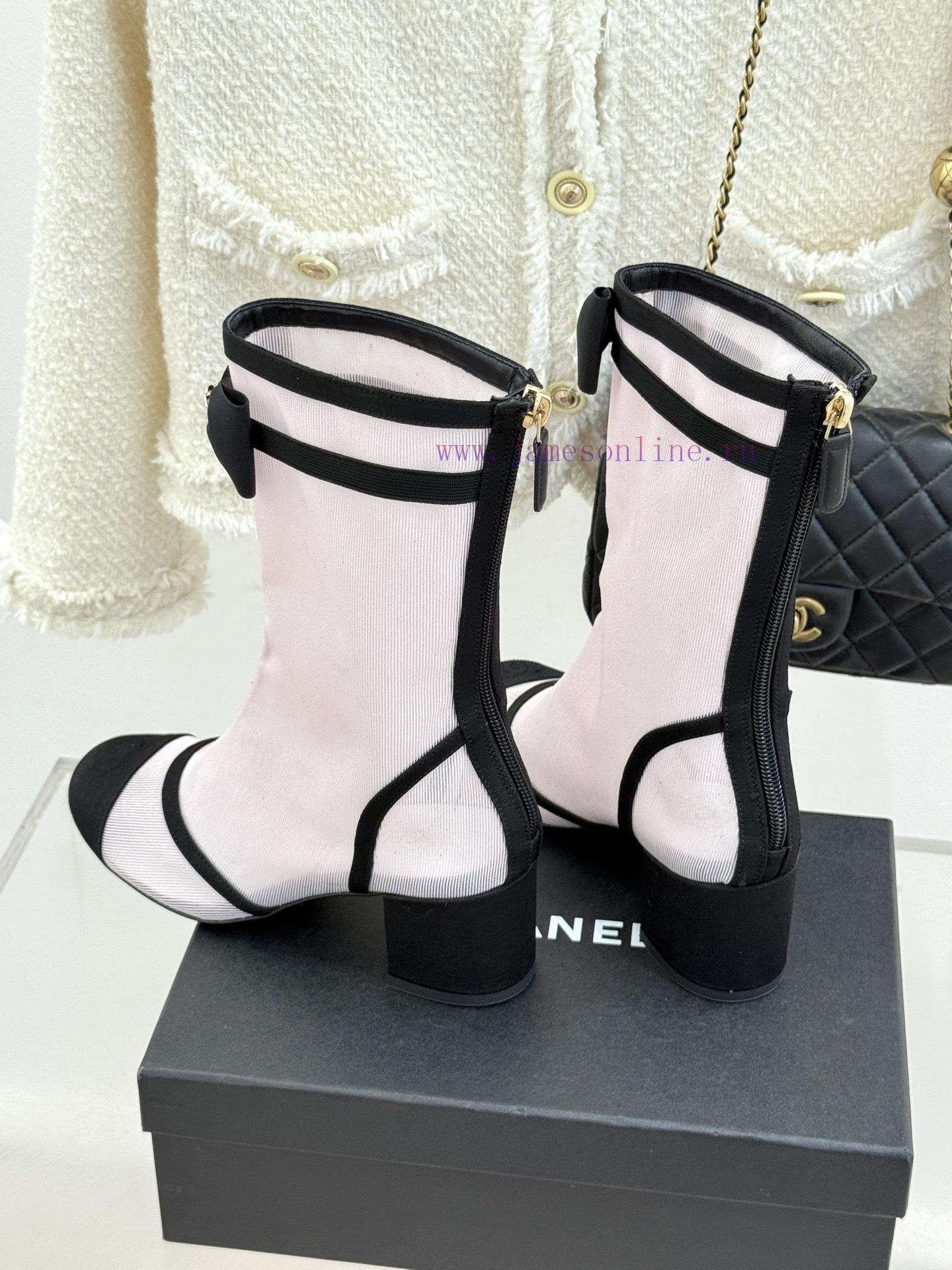 Mesh leather 430Chanel | Chanel 25B New Product Double C BowMesh elastic boots and short bootsThere are always some existences in the boundless universe of fashionCan easily capture the gaze and become the eternal focusIt is precisely such a sparkling fashion masterpieceIt combines fantasy and practicality in a unique postureInterpreting the elegance of Chanel’s century old heritageMesh as the main tone of these boots gives them lightness and agilityDelicate yarns interweave vertically and horizontally, as gentle as clouds and mistLike spider silk, resilient under the gentle touch of sunlightReflecting a faint light, like the shimmering waves of the morning lakeAdding a hazy beauty to the overall designIts breathability is unparalleled, even on hot and humid summer daysBoth feet can enjoy free breathing and break free from stuffiness and constraintsThe double C bow embellished on the shoe body is a perfect combination of classic and sweetIt is not a casual decoration, but carefully cut and hand sewnThe luster of the ribbon and the haze of the mesh complement each other,Every stitch showcases Chanel’s ultimate craftsmanshipThe design of the elastic boot tube is a new interpretation of comfort and fashionIt fits the leg lines without losing freedom and agilityWhether walking briskly on the streets of bustling citiesStill spinning lightly on the romantic dance floorThey can make you feel unparalleled comfort and easeDon’t worry about your boots slipping or getting tightIt’s like your second layer of skin moving with youShow the most natural and confident postureThe fabric is made of original customized mesh elastic materialThe inner footrests are all made of lambskinItalian imported genuine leather outsoleSize35-3940/41 Customization