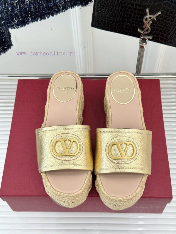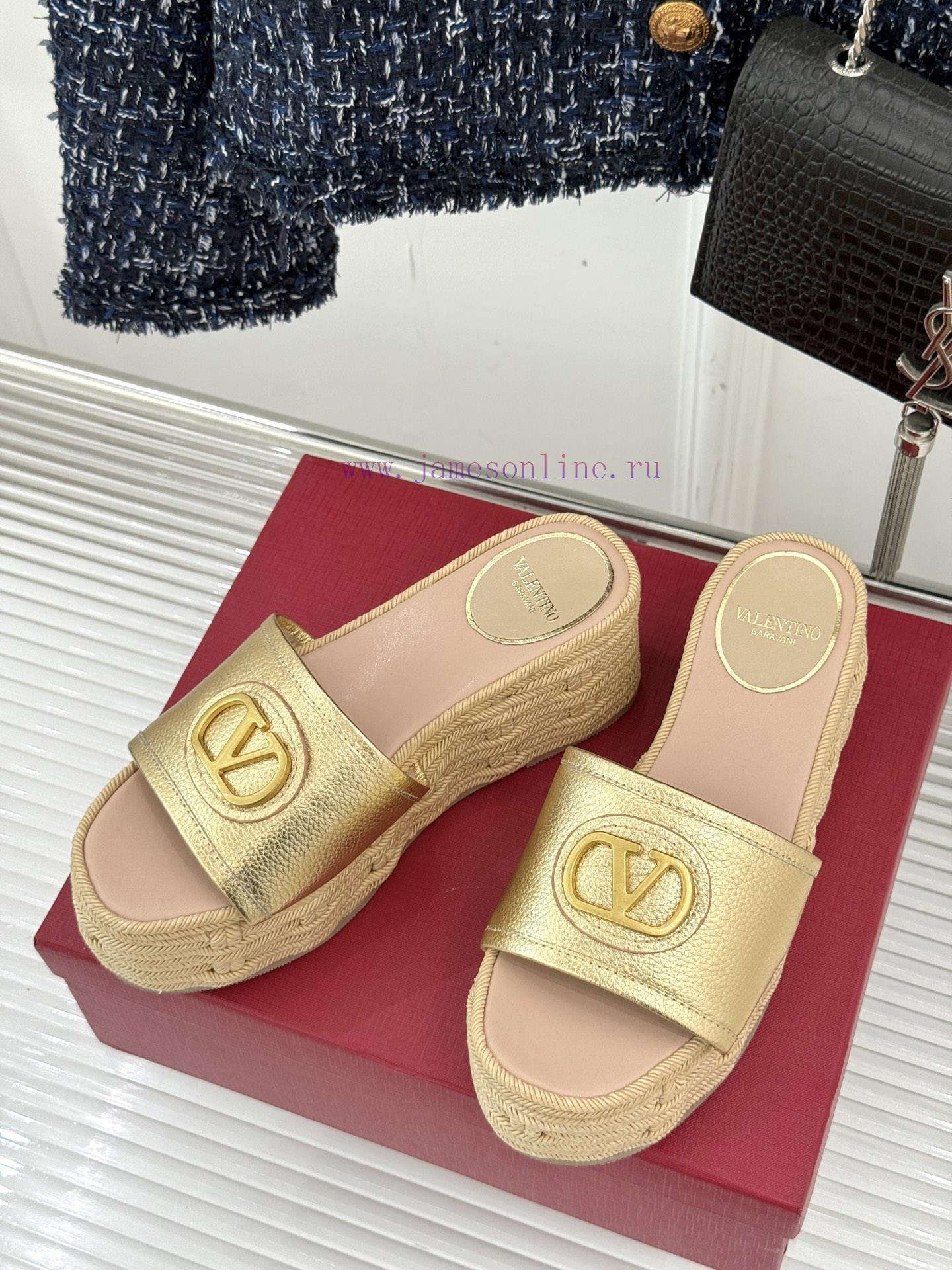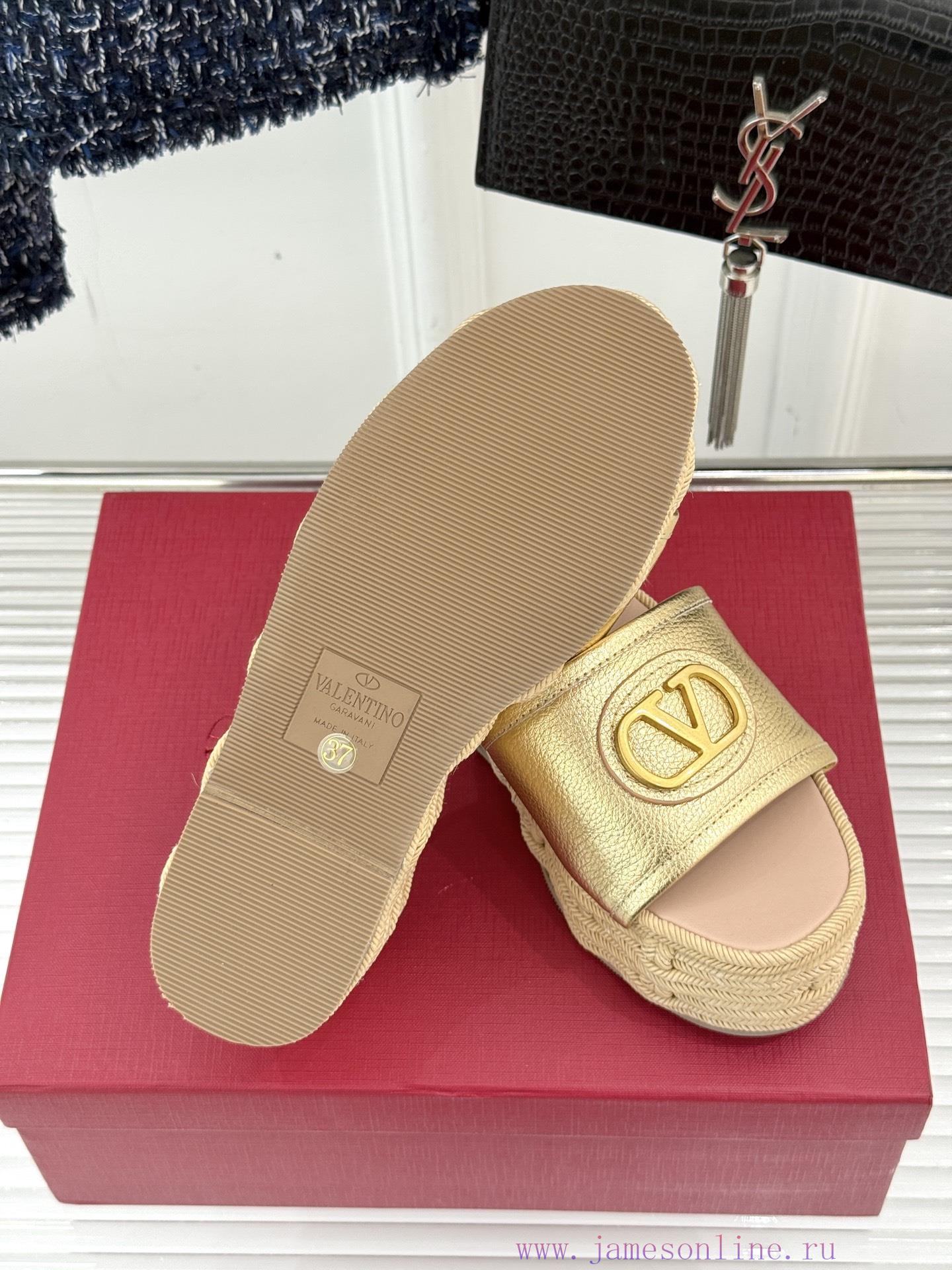 Valentino | Valentino 25s Spring/SummerNew V-button thick soled slippersClassic V-buckle element designShowcasing the unique style of the brandLuxury fashion is highly recognizableThick soles are really effective in elongating legsVersatile and comfortable, instantly increasing the size of your feet and legsThe shoe upper is made of imported calf leatherMixed sheepskin with tiptoe insideOriginal mold buckleOriginal molded hemp rope/rubber outsoleCustomization for sizes 35-3940/41