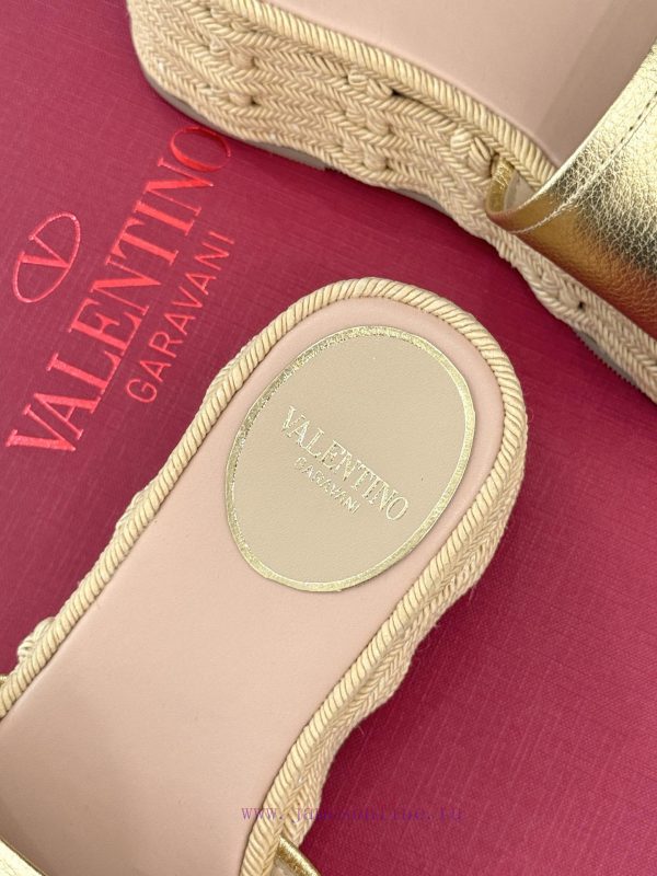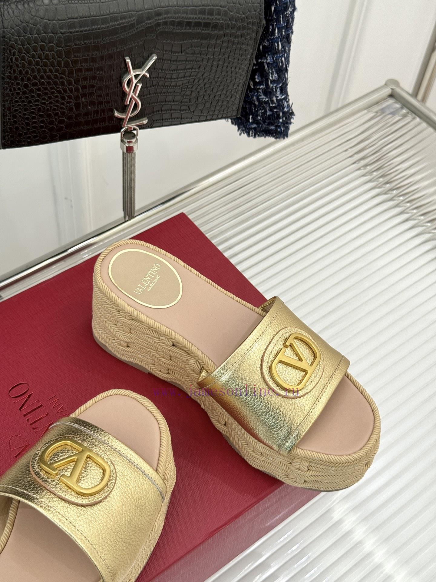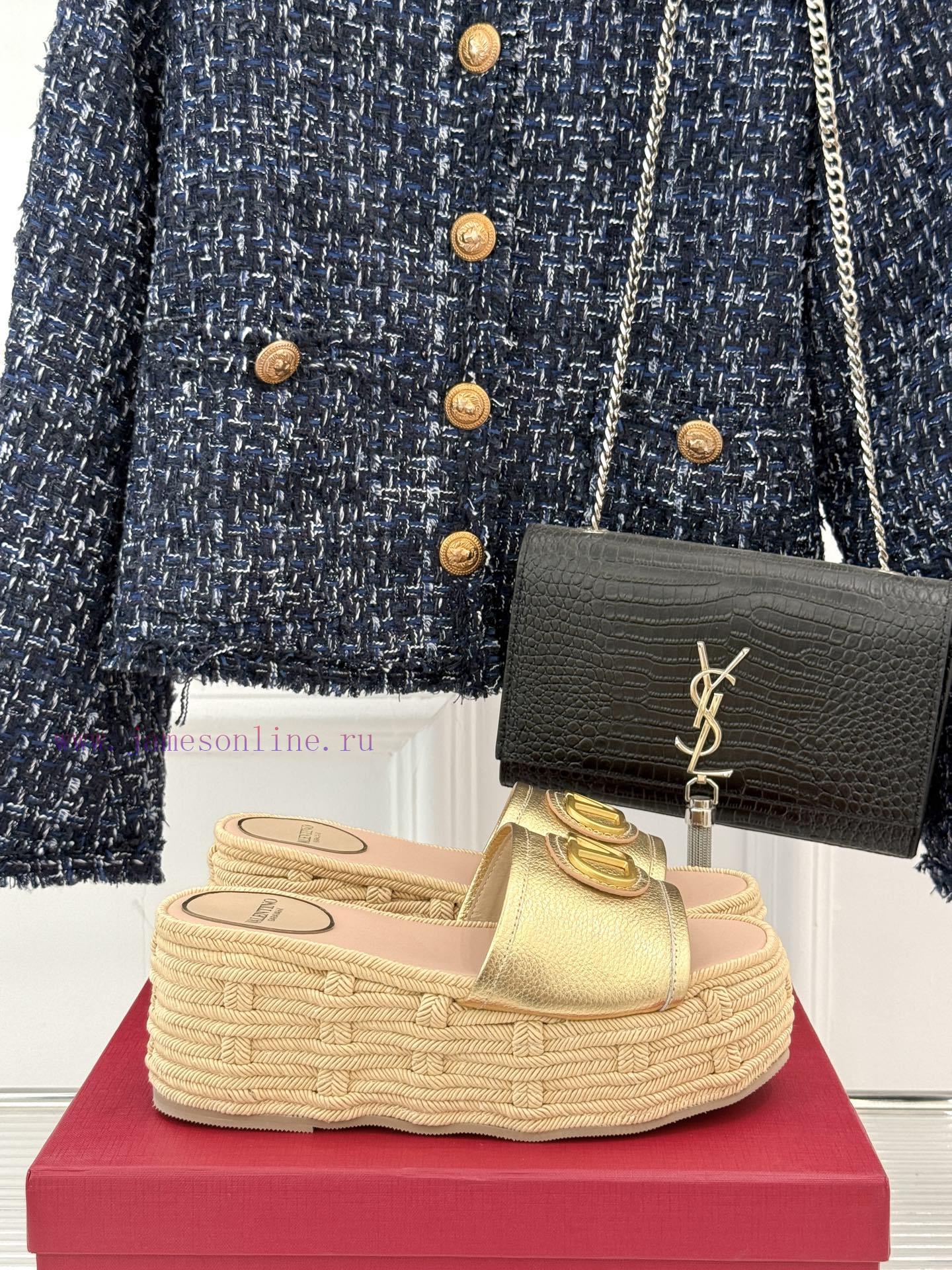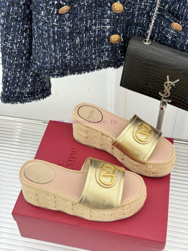 Valentino | Valentino 25s Spring/SummerNew V-button thick soled slippersClassic V-buckle element designShowcasing the unique style of the brandLuxury fashion is highly recognizableThick soles are really effective in elongating legsVersatile and comfortable, instantly increasing the size of your feet and legsThe shoe upper is made of imported calf leatherMixed sheepskin with tiptoe insideOriginal mold buckleOriginal molded hemp rope/rubber outsoleCustomization for sizes 35-3940/41