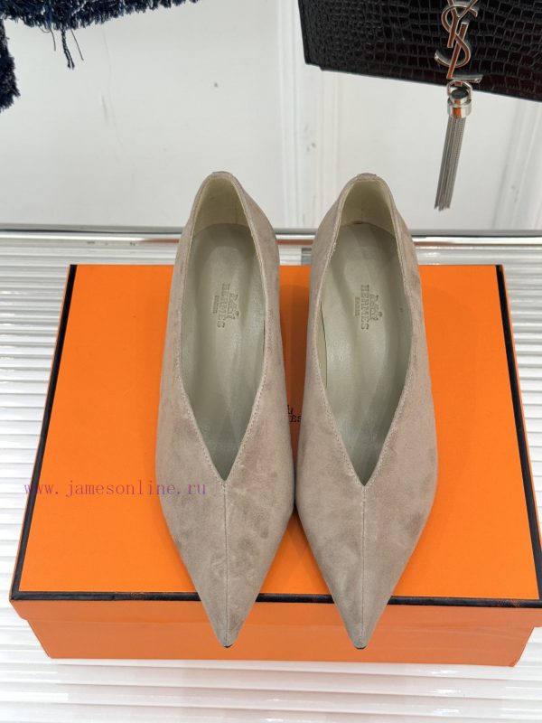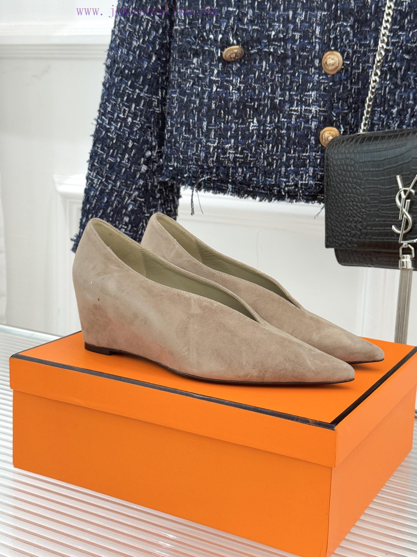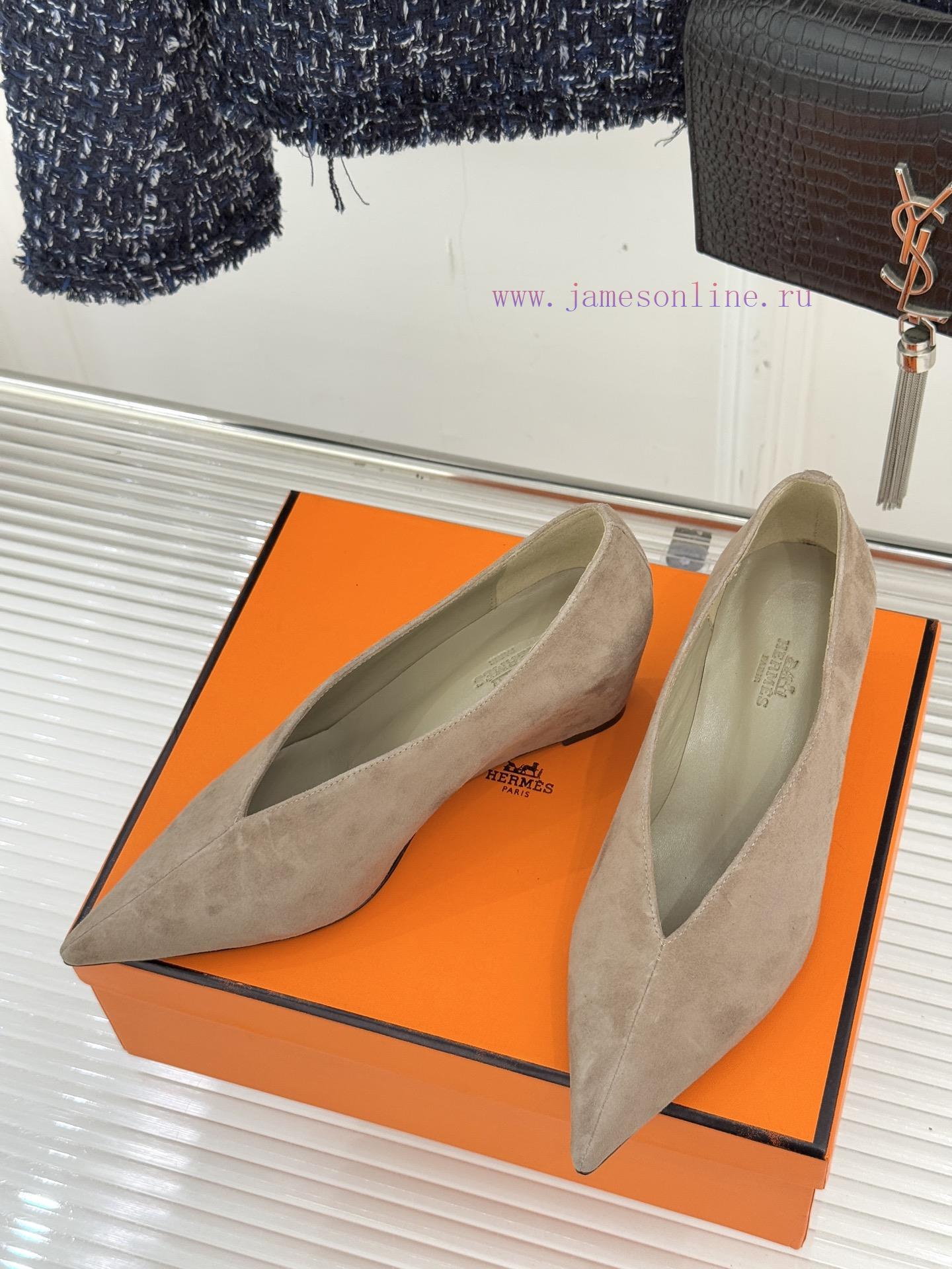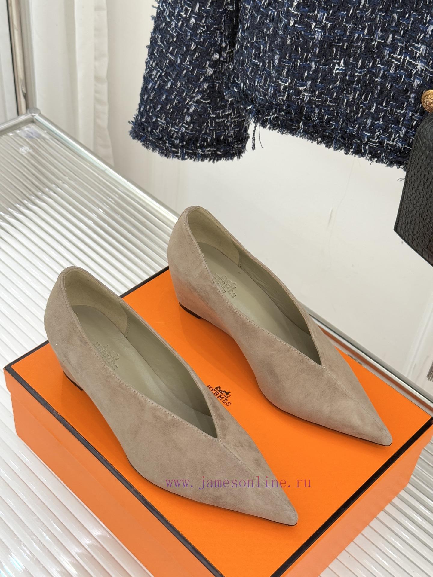 Herm è s/Herm è s 25WF new product pointed tipV-mouth slope matching shoesWhen the sharp tip meets the soft arc of the V-mouthThese single shoes reshape elegant contours with condensed linesThe craftsmanship of Italian workshops is poured into every inch of leatherDelicate touch and crisp shoe shape create a perfect balanceWalking with a calm and composed demeanorDeep and narrow V-mouth naturally extends along the instepAccurately tailored light and shadowVisually elongate the leg linesPaired with a sharp pointed designAchieving a 37% golden ratio without exaggerating the heelCustomized slope and tilt angle have been repeatedly adjustedFrom commuting morning meeting to dinner party strollWalking all day without any burdenEvery step feels like stepping on a soft cloudLet elegance never come at the cost of comfortThe fabric is made of original customized leatherThe inner foot pads are all made of sheepskinItalian imported genuine leather outsoleSize35-3940/41 Customization