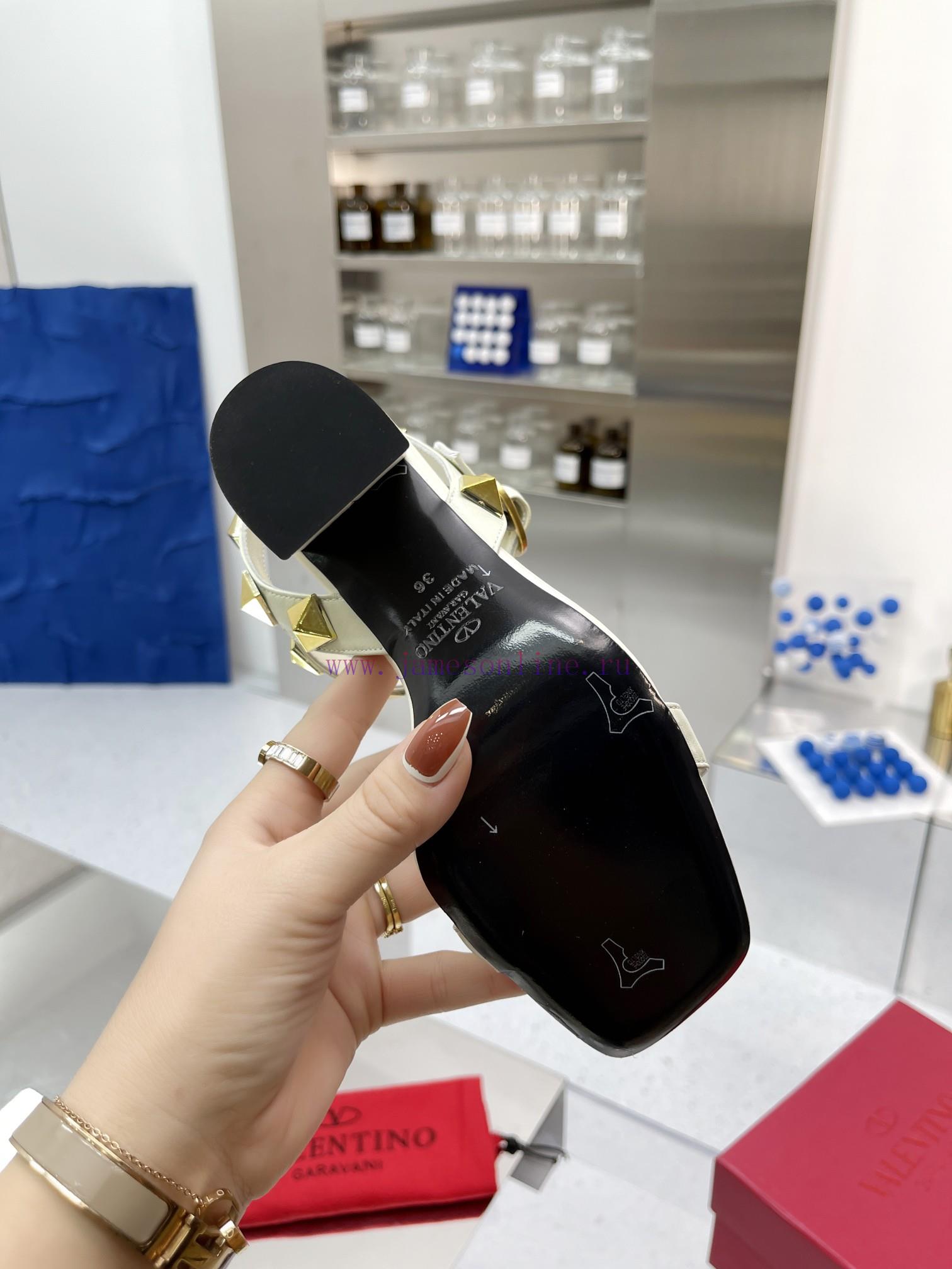 Valentinotino 〰️ Valentino Riveted Sandals New, Top QualityImported sheepskin upperImported sheepskin for inner foot padsColor: Black, White, Brown, Apricot, Bare, Available in Five ColorsHeight 8cmTwo options for outsole: genuine leather outsole and rubber outsoleSizes 34-4234 and 42 are custom-made and cannot be returned or exchangedP-price rubber sole ¥~genuine leather sole ¥ 300