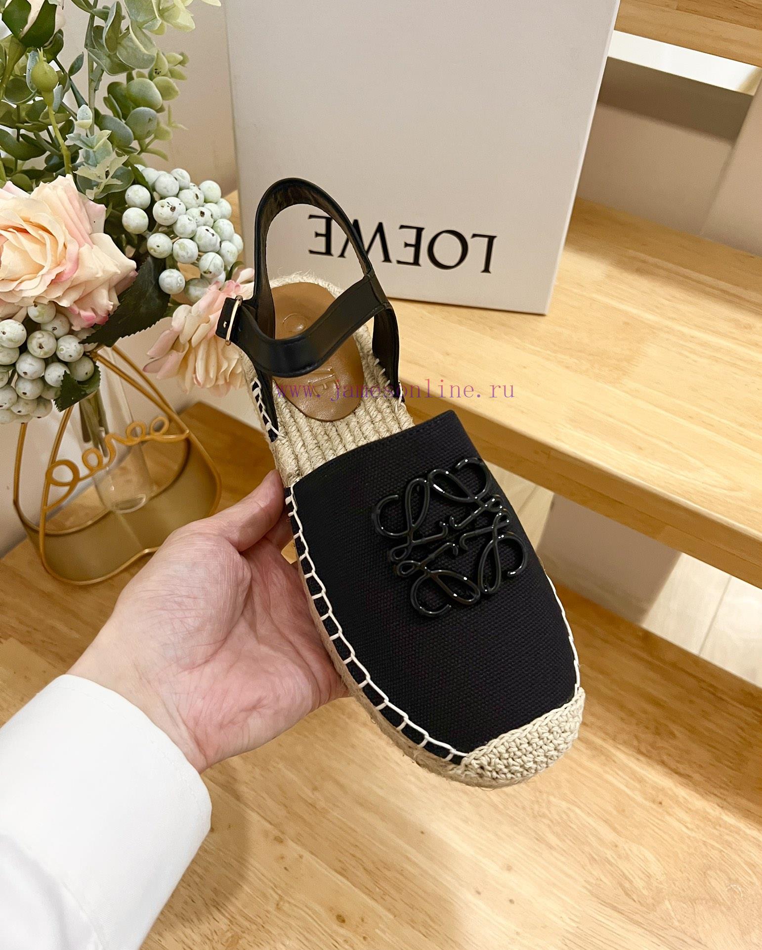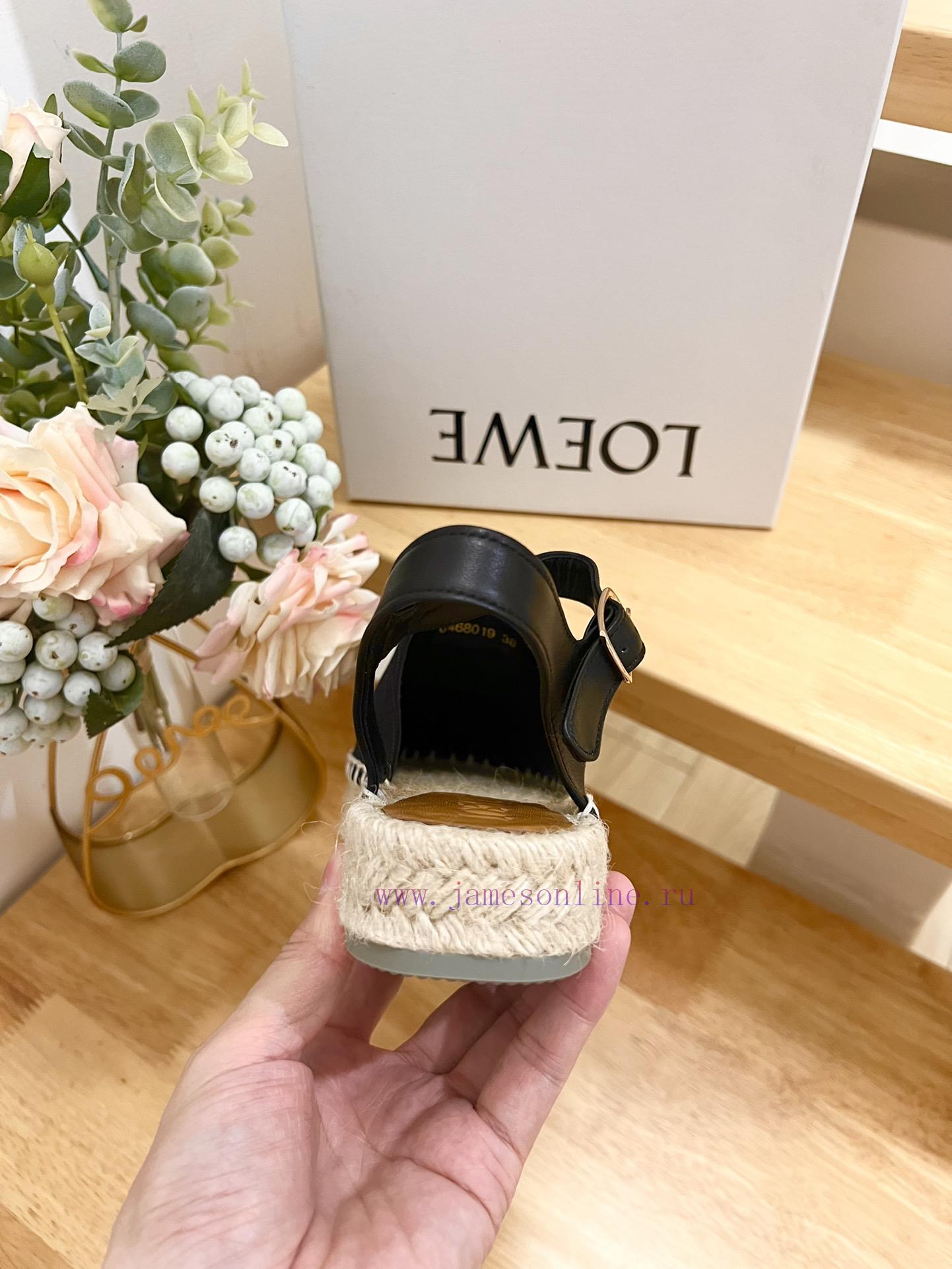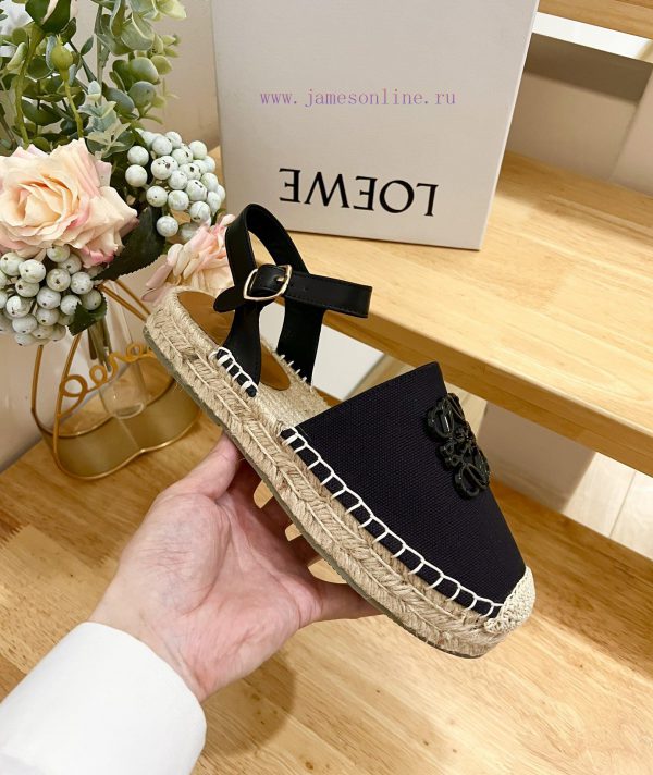 Brand LoeweLOEWE thick soled close toe slippers for fishermen, women’s canvas and cowhide leatherAnagram grass shoesColor: White, BlackOrigin ITTarget audience: WomenProduct Introduction: Huangma Bottom Sandals, Cow Leather Upper, Anagram PatternSize 35-41