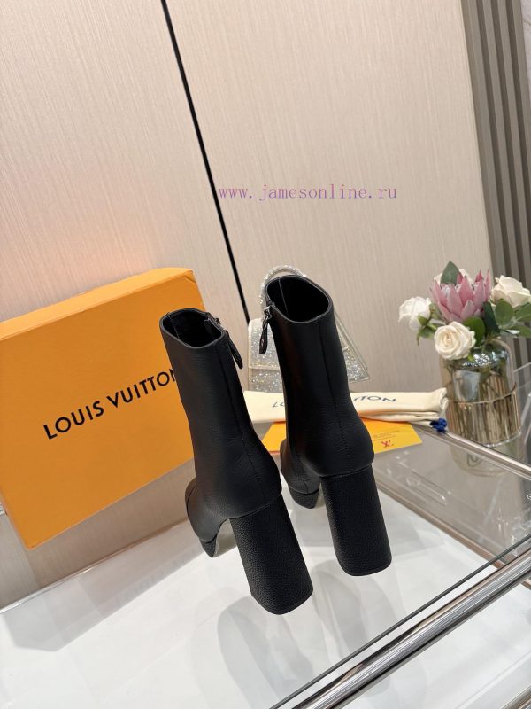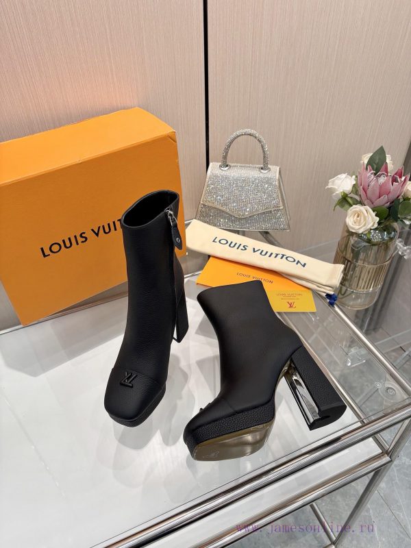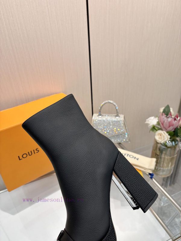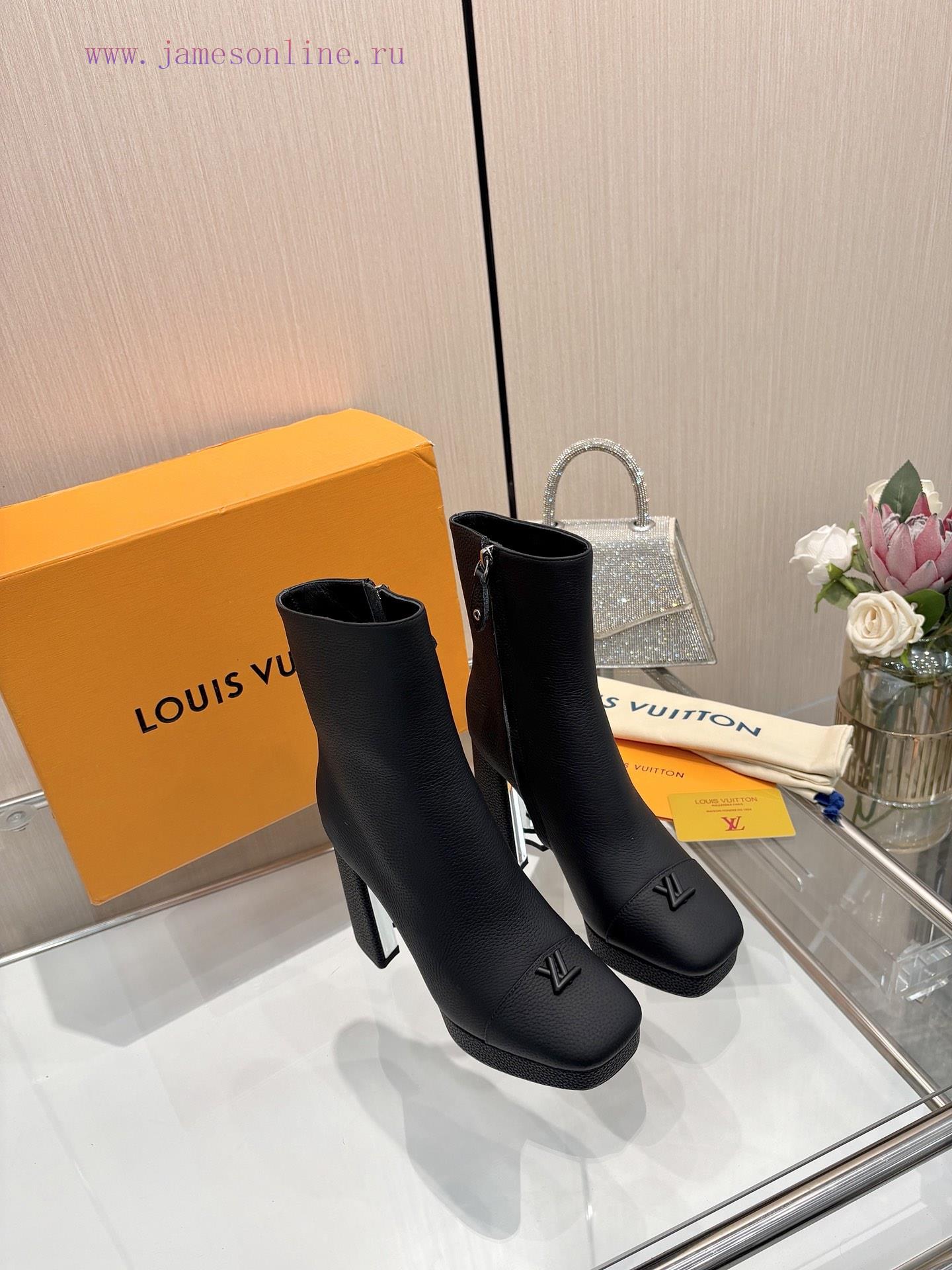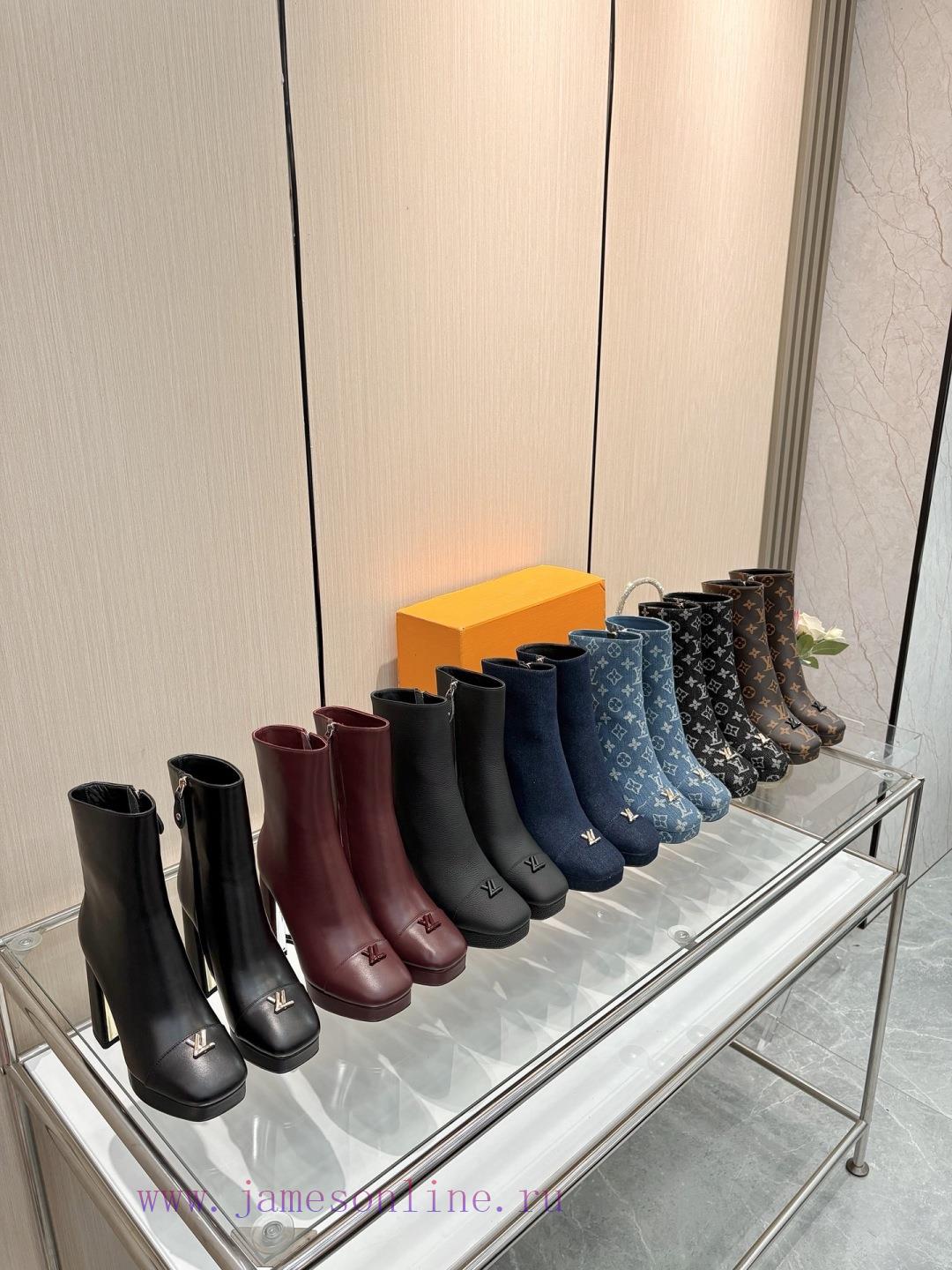 The top tier 2025 autumn/winter LV runway same style, these 6-inch water platform short boots are too tall, aren’t they11cm high heels, thick water platform, even small people can easily handle it. Walking steadily without tiring feet is really friendlyThe small V-buckle design is exquisitely crafted and perfectly replicated with the original last shape. It features an Italian genuine leather sole and imported high-end fabric with an inner zipper for easy on and offWhether paired with jeans or a dress, it can instantly enhance one’s temperament. Walking on the street, the rate of turning back is explosiveLV short boots fashion show, same high heels, niche wear, luxury wearImported calf leather/lychee pattern/distressed leather/denim fabricHigh quality soft sheepskin lining insideImported goat skin for foot padsSole Italian genuine leather soleLuxury PackagingHeel 11cm leather bag heel/2cm water table foreskin/electroplated designSize 35-4034.40.41 Customized Non refundable