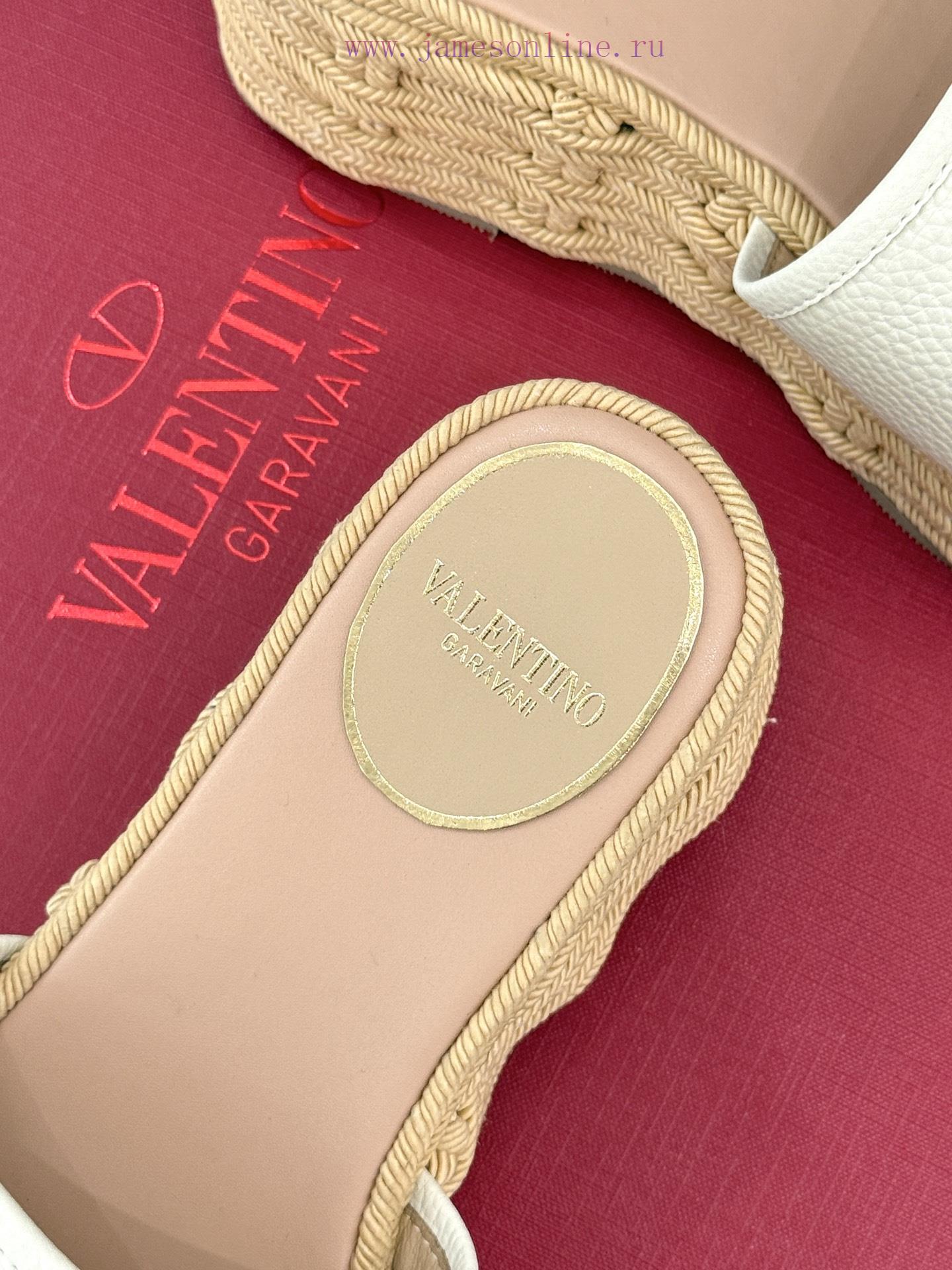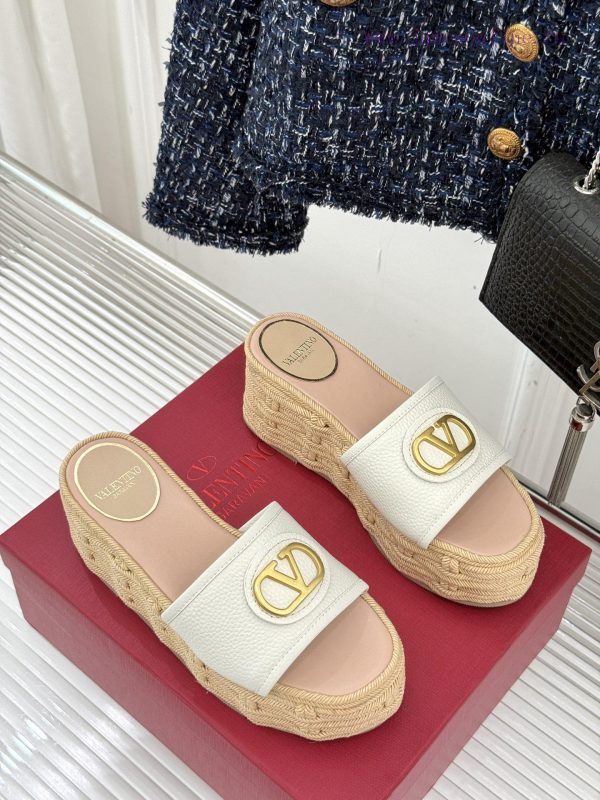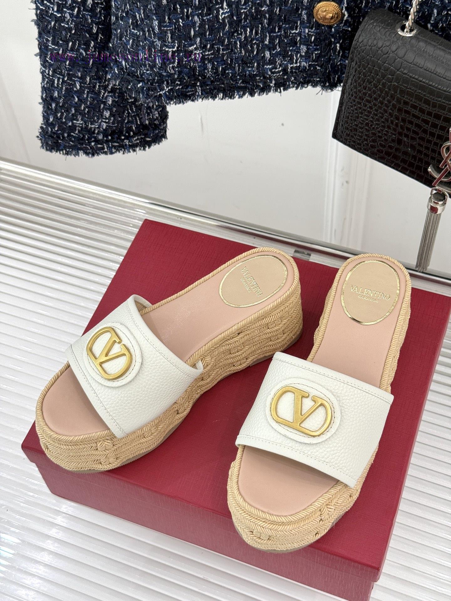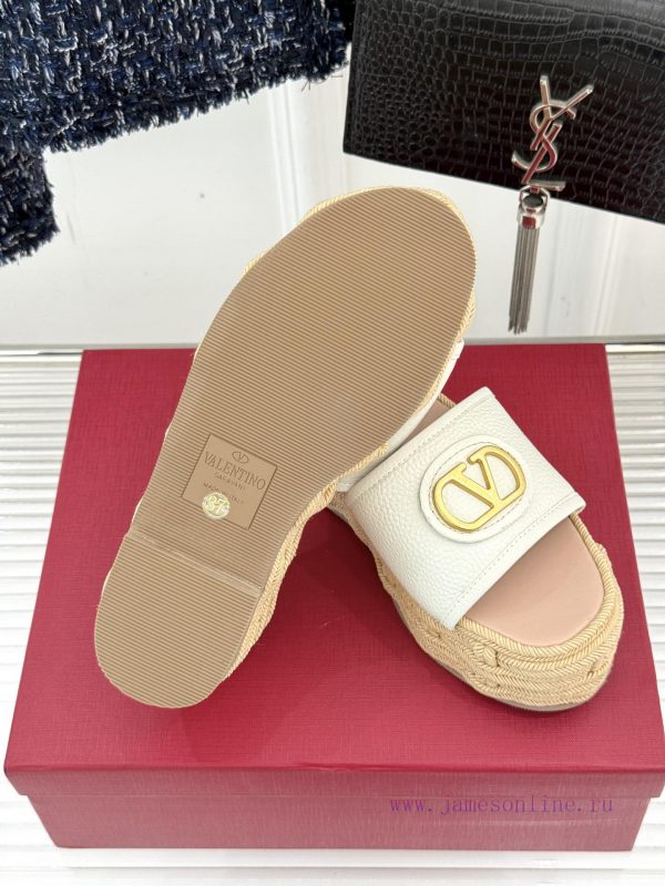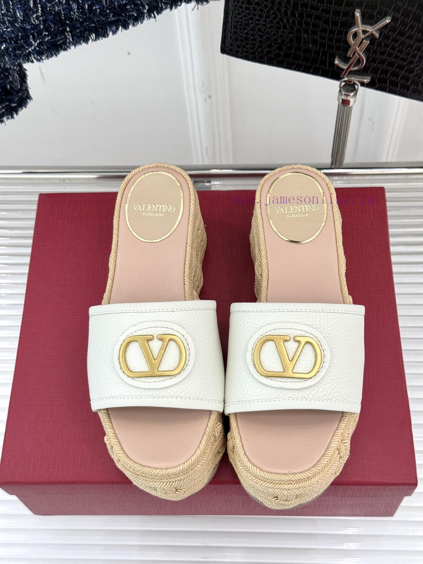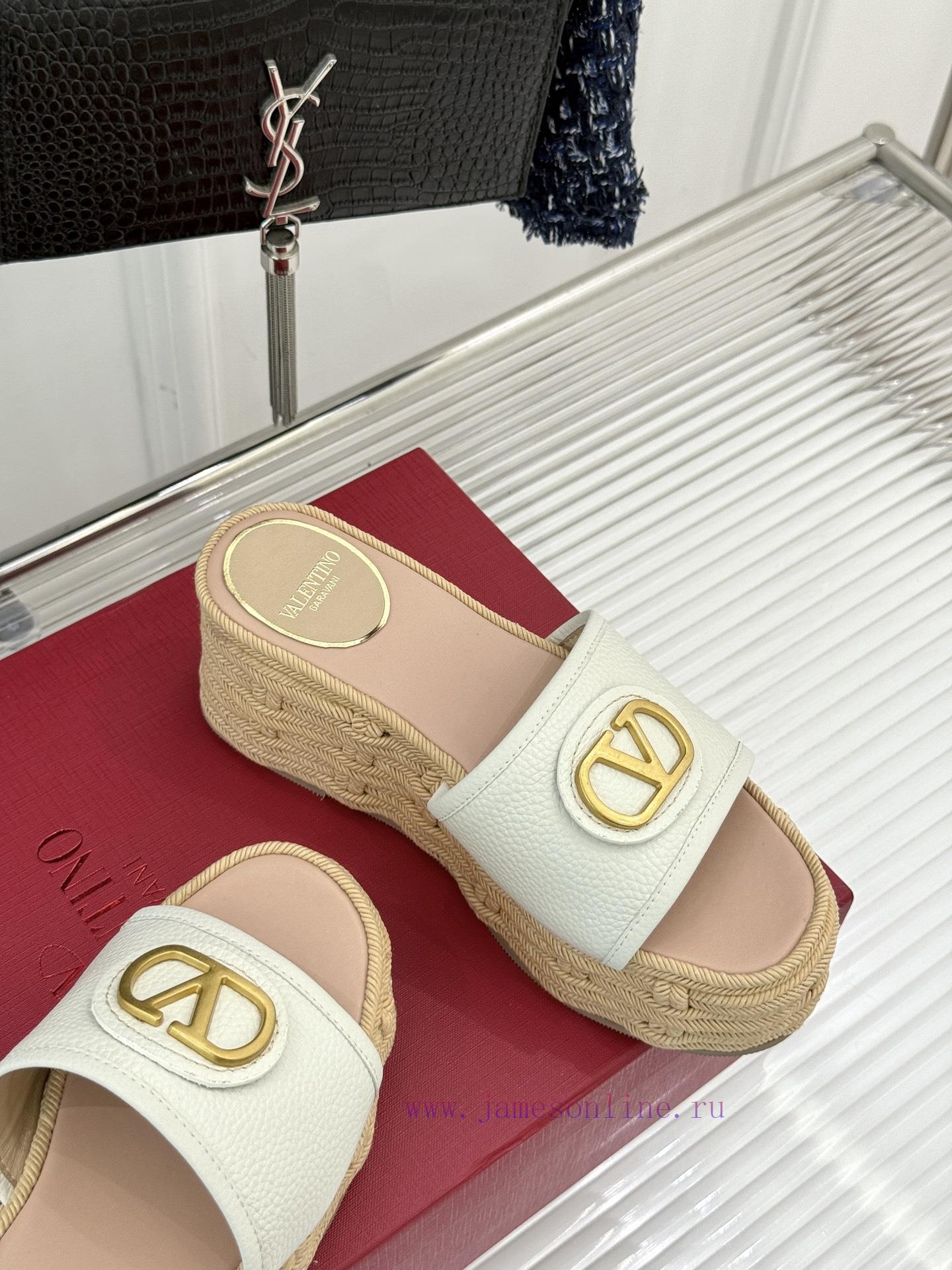 Valentino | Valentino 25s Spring/SummerNew V-button thick soled slippersClassic V-buckle element designShowcasing the unique style of the brandLuxury fashion is highly recognizableThick soles are really effective in elongating legsVersatile and comfortable, instantly increasing the size of your feet and legsThe shoe upper is made of imported calf leatherMixed sheepskin with tiptoe insideOriginal mold buckleOriginal molded hemp rope/rubber outsoleCustomization for sizes 35-3940/41