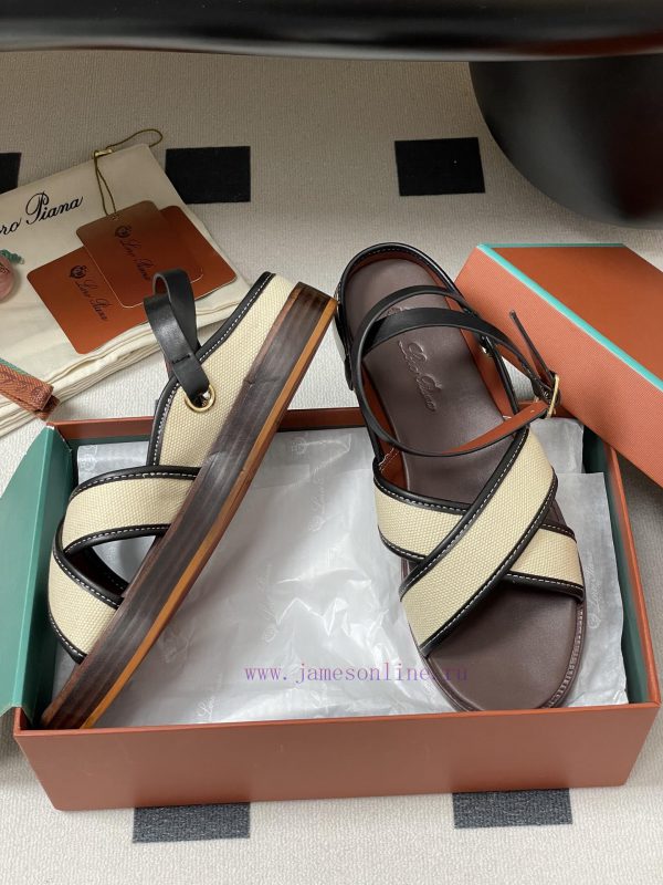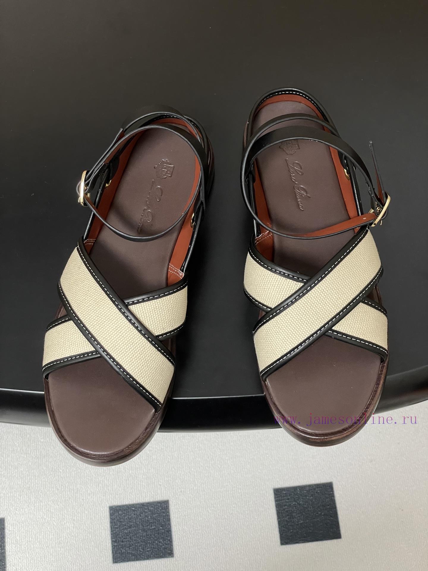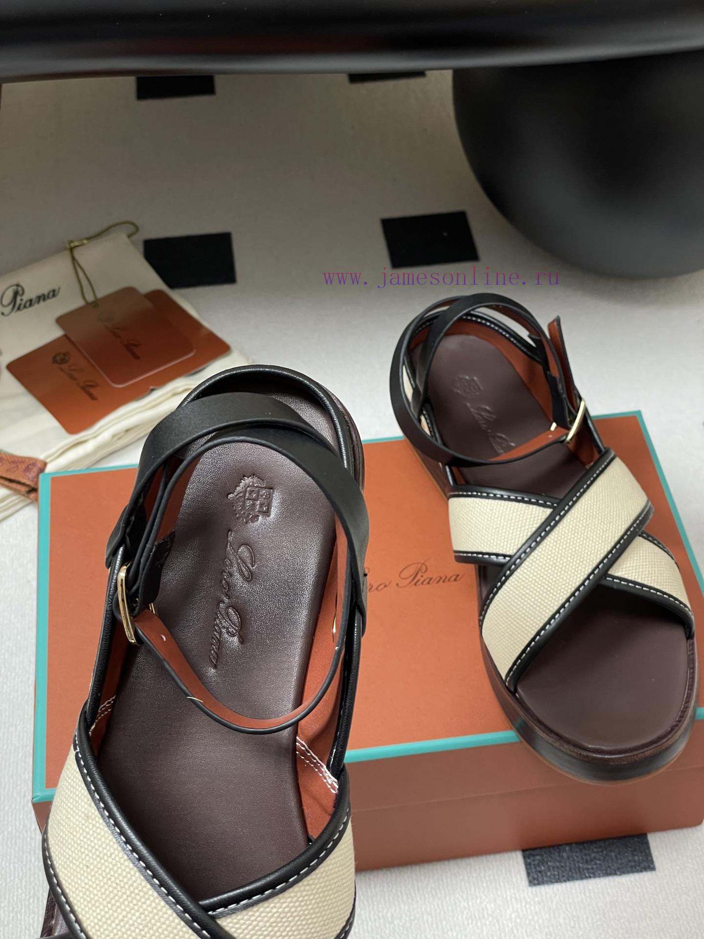 -Loro Piana 95s spring/summer new cross strap thick soled sandals with exposed heel and winding design, minimalist retro sandalsLeo flat toed sandals are an ideal choice for daily summer wear, exuding elegance and comfort between steps. Made of a cotton and linen blend of canvas fabric, adorned with contrasting leather details, the cross wide decorative strap design securely fits the feet, making it easy and comfortable to wear. The wide heel inlay cleverly connects the ankle strap, paired with a round and adjustable metal buckleLeather uppers/custom canvasInner footrest sheepskinOriginal molded rubber outsole with anti slip texture on the soleSize 35-3940.41 Customized Non refundable