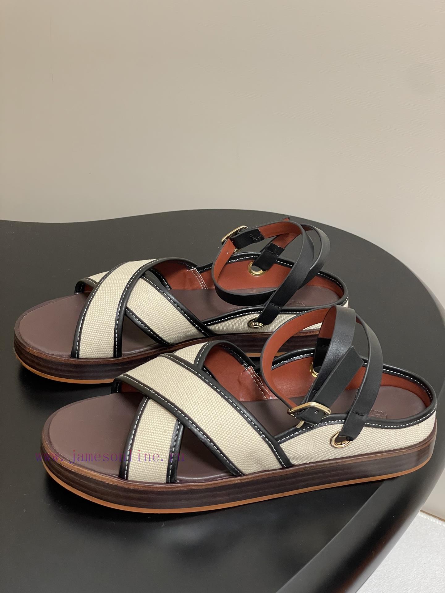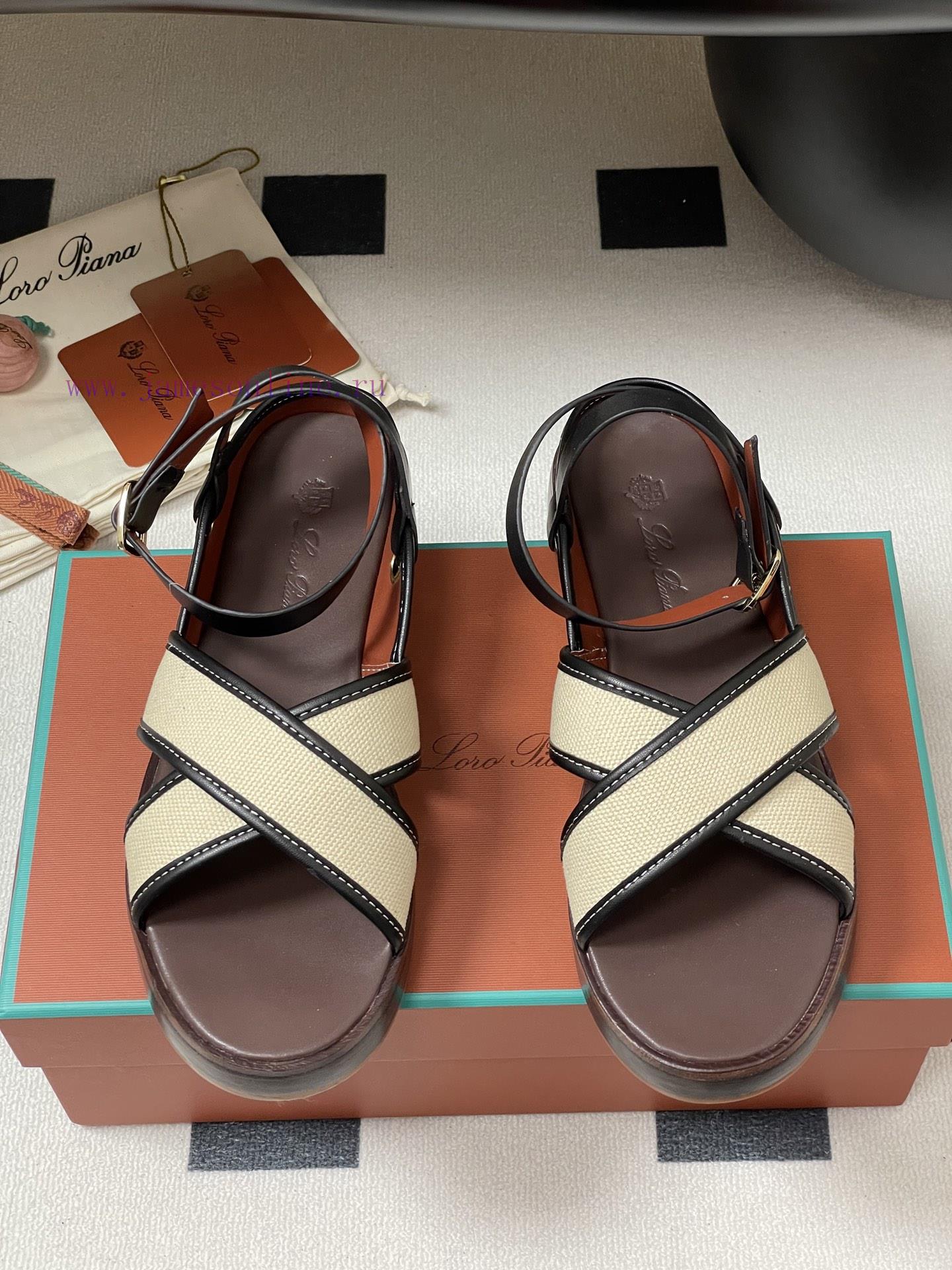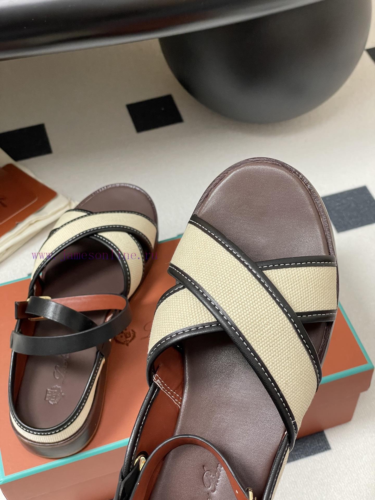 -Loro Piana 95s spring/summer new cross strap thick soled sandals with exposed heel and winding design, minimalist retro sandalsLeo flat toed sandals are an ideal choice for daily summer wear, exuding elegance and comfort between steps. Made of a cotton and linen blend of canvas fabric, adorned with contrasting leather details, the cross wide decorative strap design securely fits the feet, making it easy and comfortable to wear. The wide heel inlay cleverly connects the ankle strap, paired with a round and adjustable metal buckleLeather uppers/custom canvasInner footrest sheepskinOriginal molded rubber outsole with anti slip texture on the soleSize 35-3940.41 Customized Non refundable