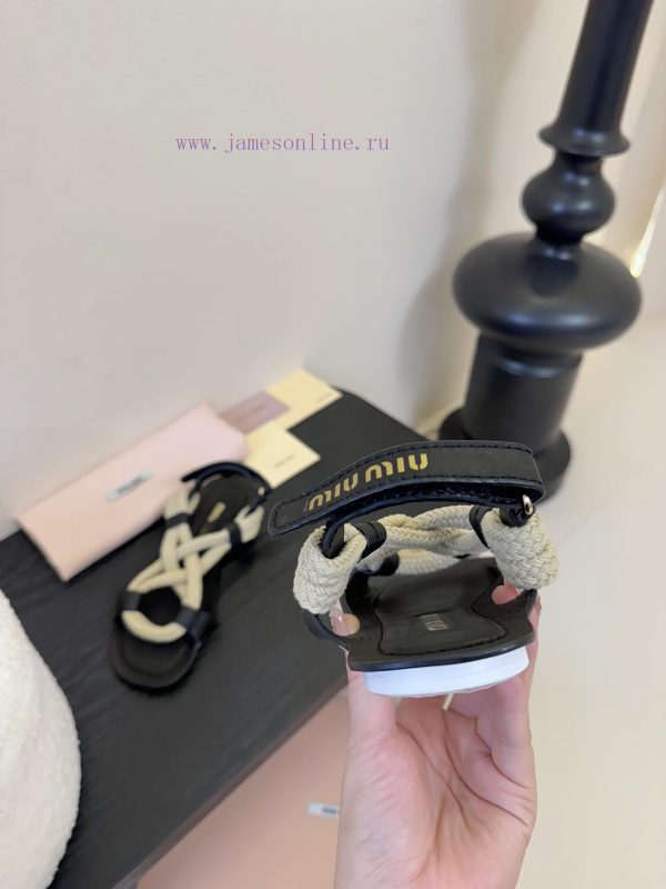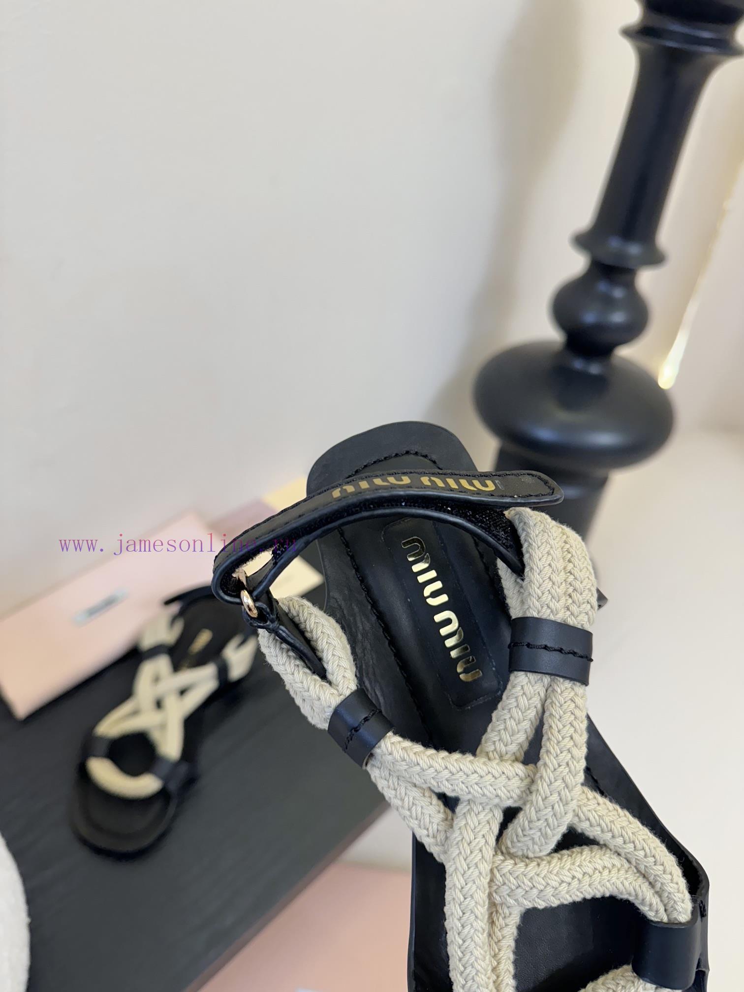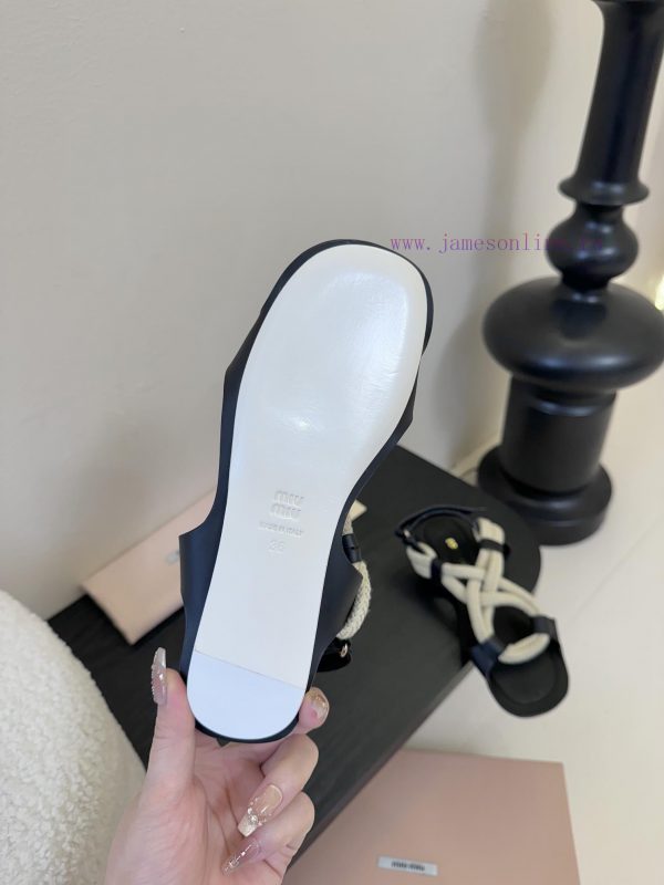 Miu Miu 2025 Fashion Week runway hemp rope woven sandals and flip flops are popular on major purchasing websites worldwide. The runway is exposed, and the Milad color matching flat shoes are very popular. The electric embroidery process design is unique in style and very texturedMaterial: Original imported cowhideInner sheepskinOriginal genuine leather sole (insole made of heavy-duty genuine leather material)Size 35-4040.41. Customized non refundable