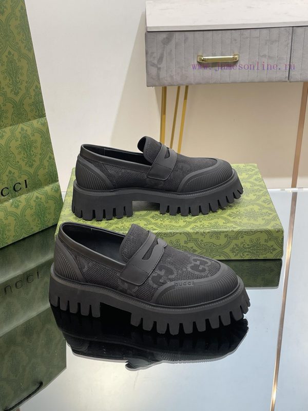 23 Gucci Thick soled GG Couple Shoes Academy Style Retro Casual Shoes Original Custom 11 RemakesThe purchasing agent level is comparable to GZ without any differenceImported calf leather upper with double GG woven fabricLeather lining/footrest11 original mold opening ultra light material wear-resistant bottomSize for Men and Women 35-46 (Female 4041 Male 4546 Customized)Heel height 4 centimeters, forefoot water table 3 centimetersGreen full set packagingThis pair of fitted couple shoes features a large design that interprets the interweaving pattern of the first letters of the brand founder Guccio Gucci’s name. The grooved sole and contrasting rolled edges add a touch of modern fashion, cleverly blending different chapters of the brand’s heritage