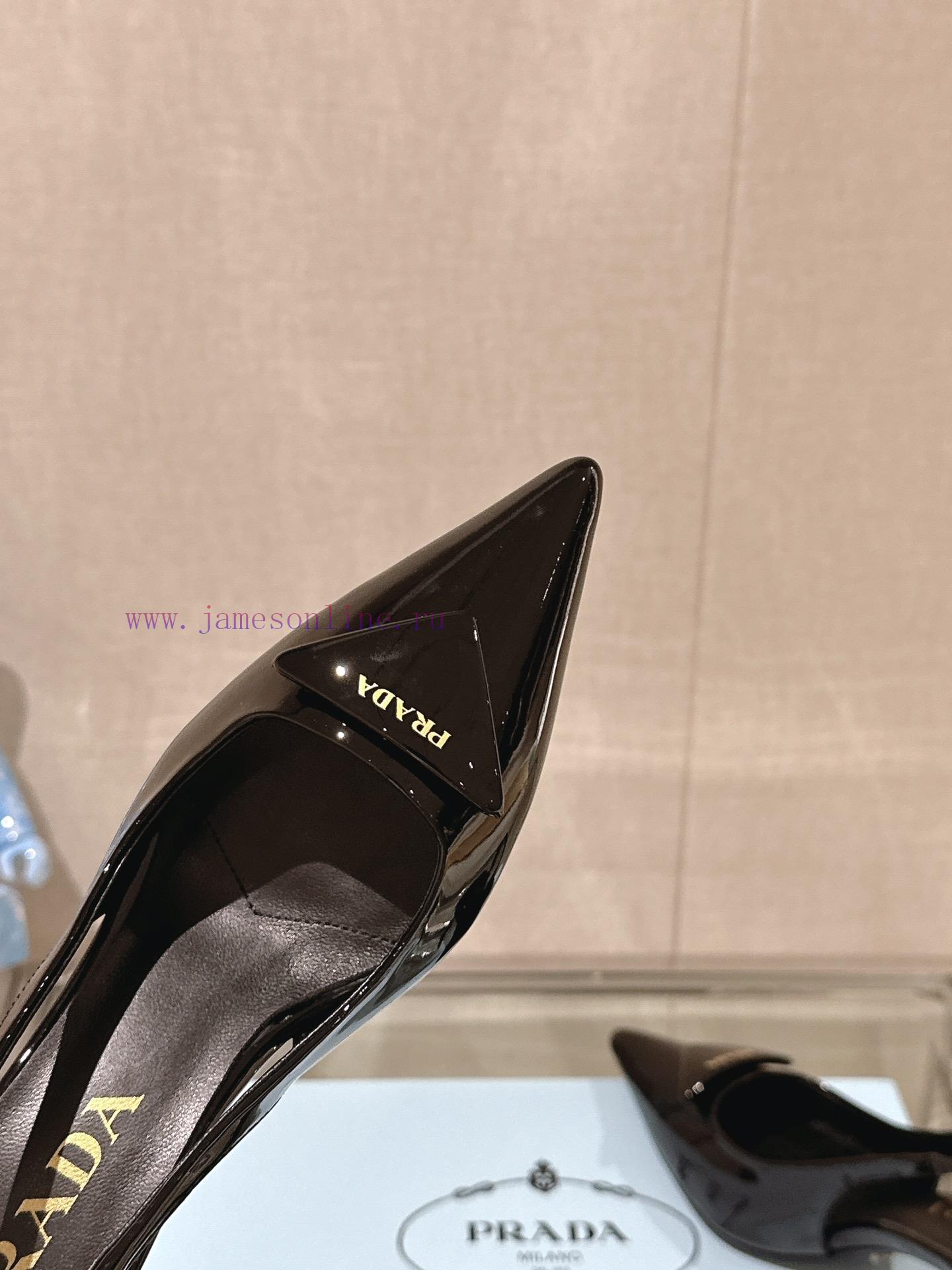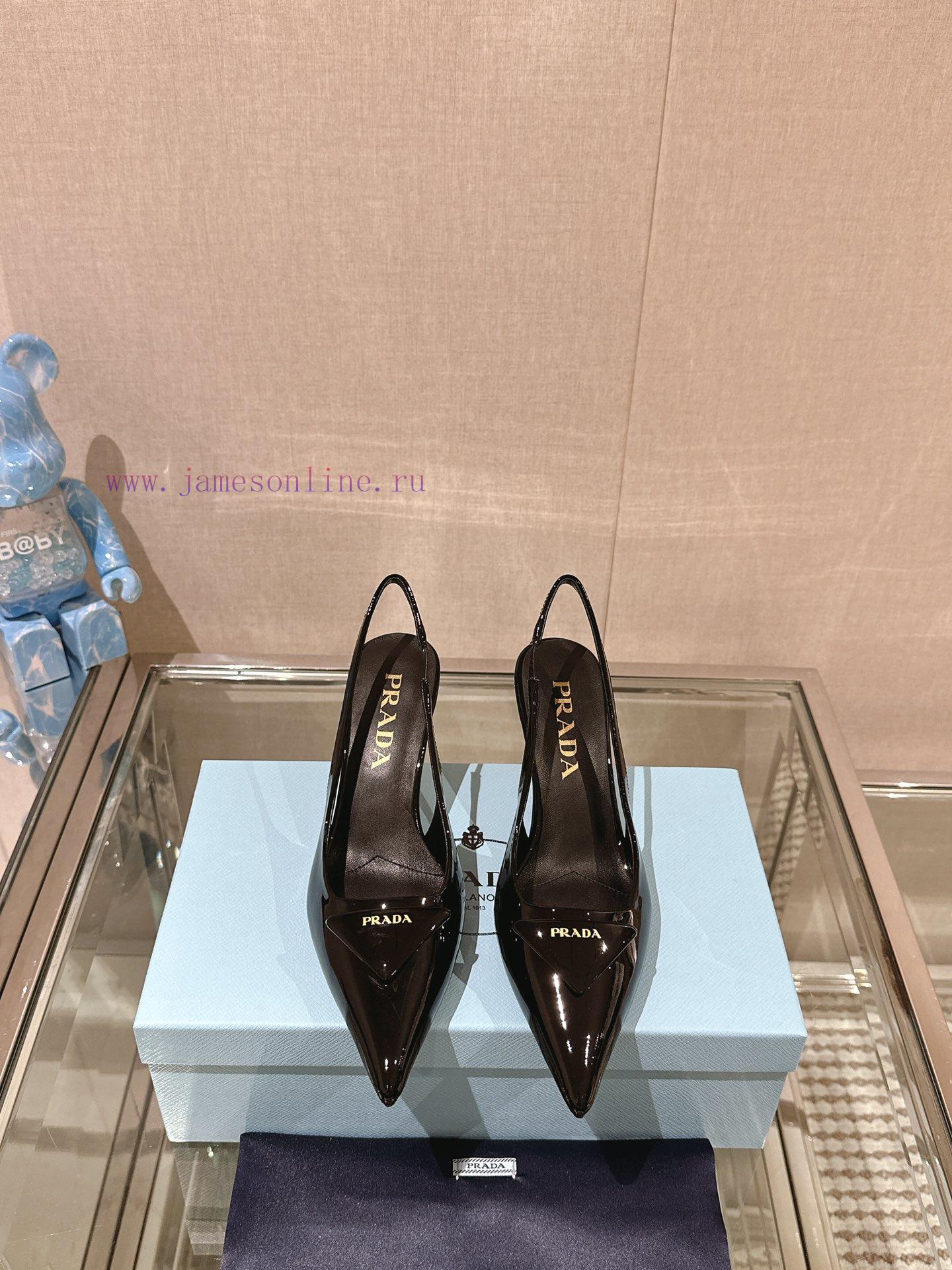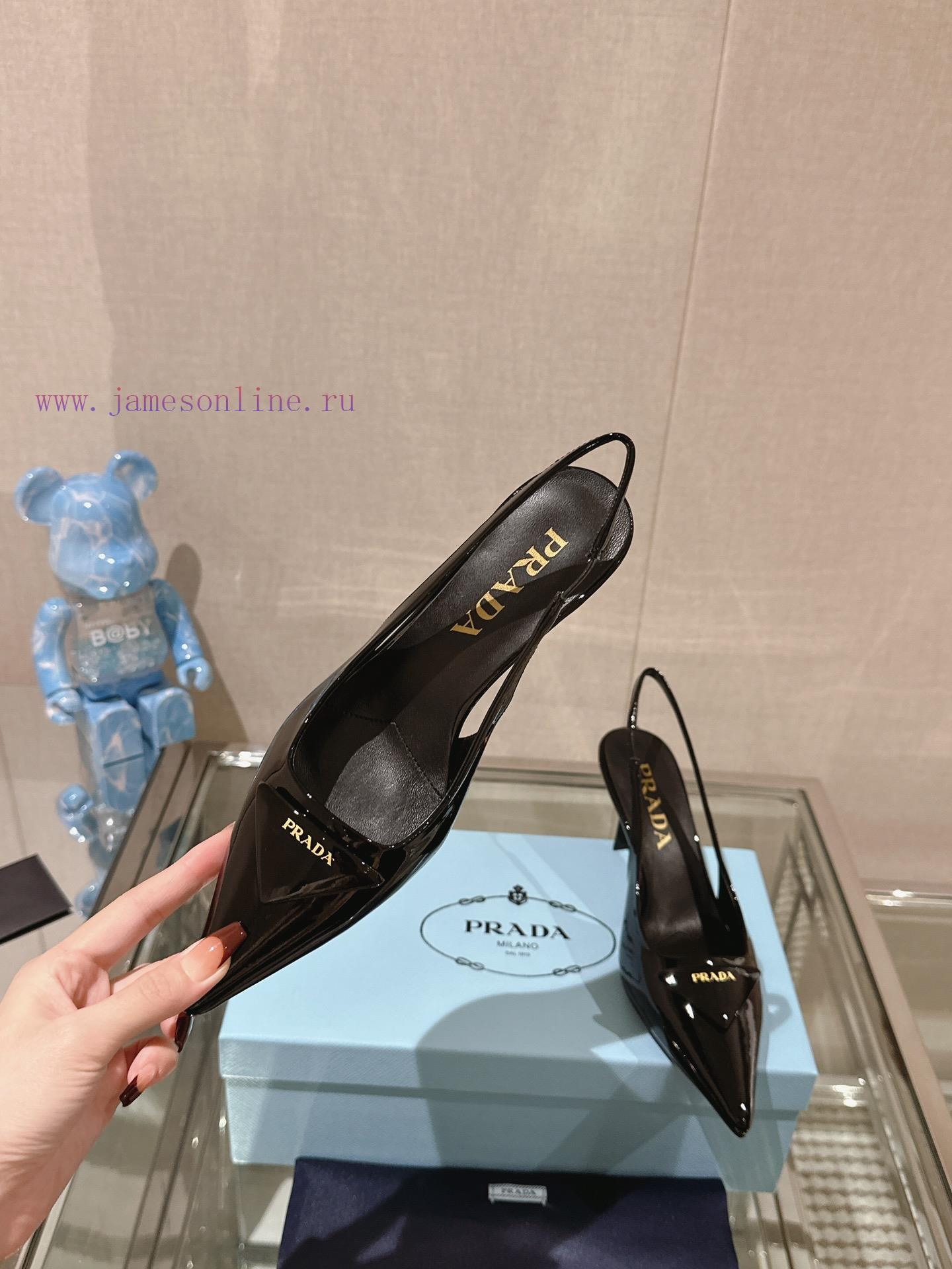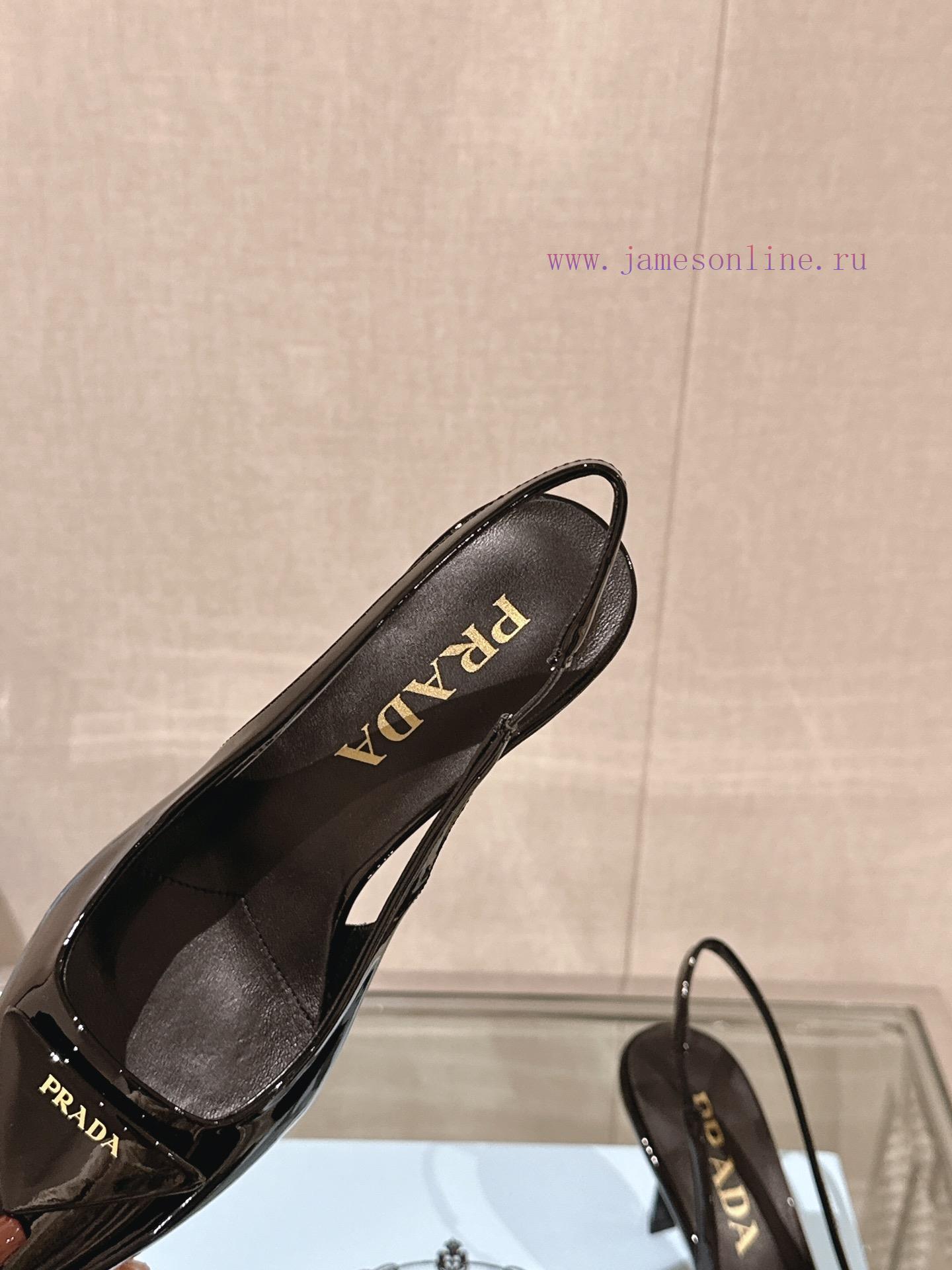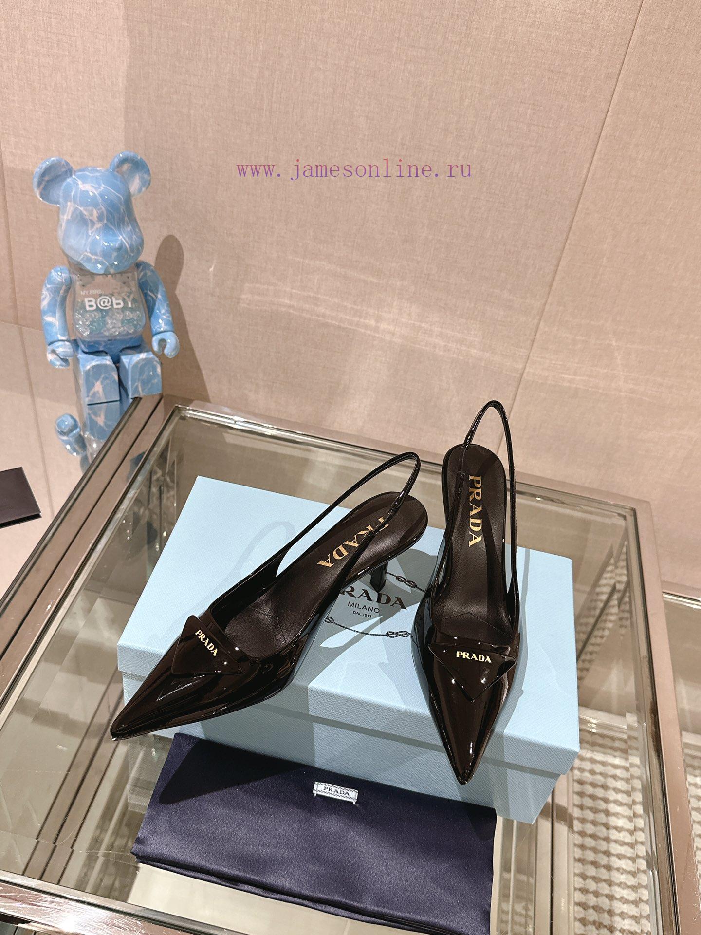 -24Ss Early Spring New Prada Stiletto Heel Back Air SandalsThis patent leather high-heeled shoe presents a soft and graceful silhouette, with elegant contemporary style details showcasing vitality. The pointed exposed heel design is paired with a geometric heel and a leather triangle logo, and the lightweight filling creates a three-dimensional effect, highlighting a modern atmosphereCow patent leather upperInside sheepskin liningHeight 7.5cmSole Italian leather outsoleSizes 35-3940,41 are customized and non refundable