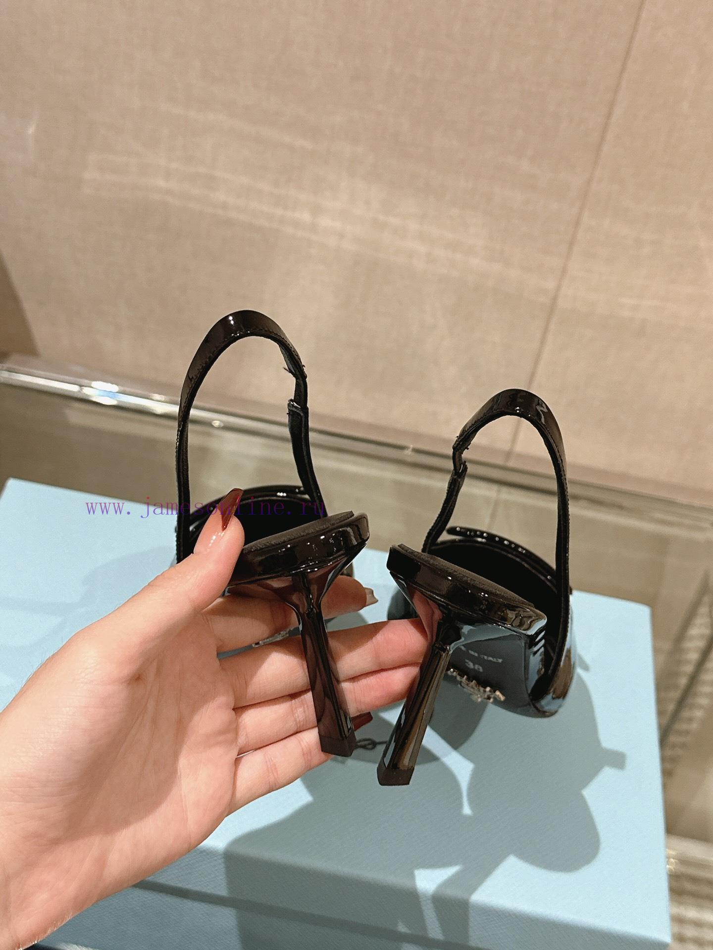 -24Ss Early Spring New Prada Stiletto Heel Back Air SandalsThis patent leather high-heeled sgyv123hs