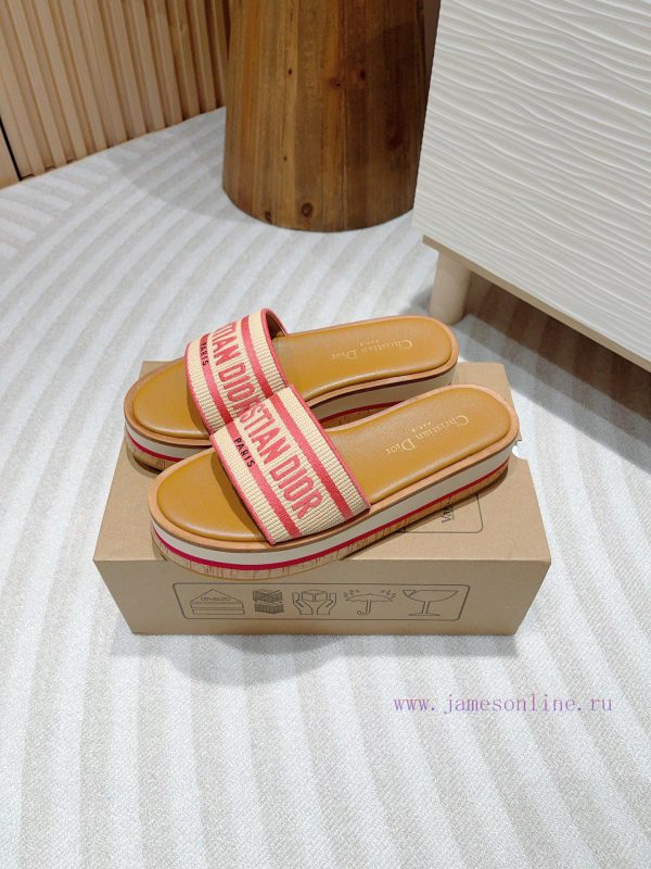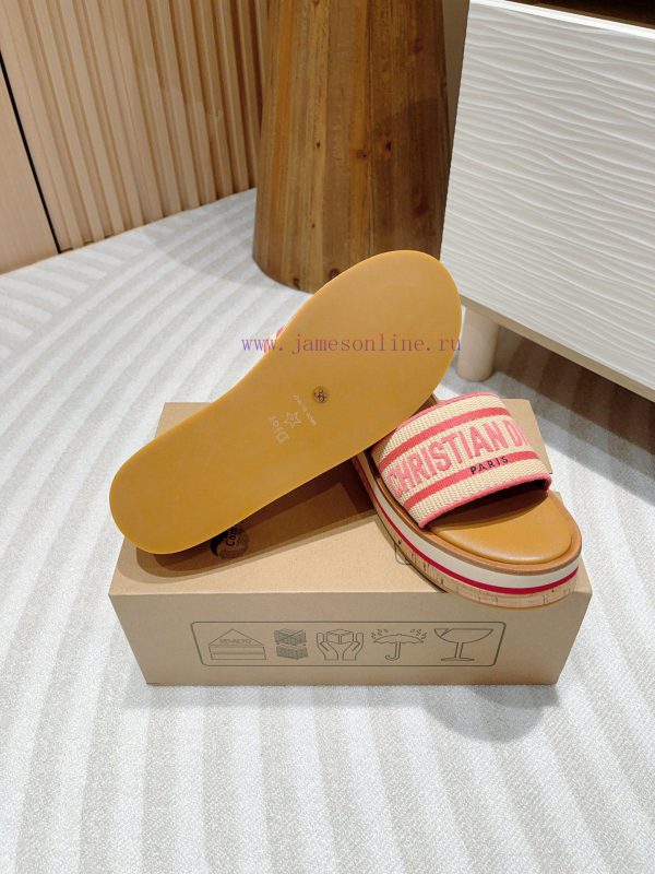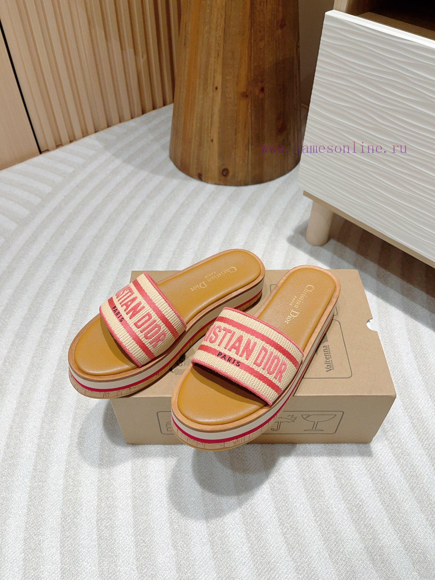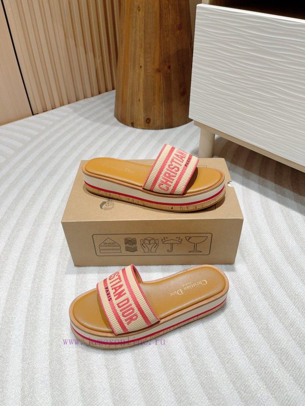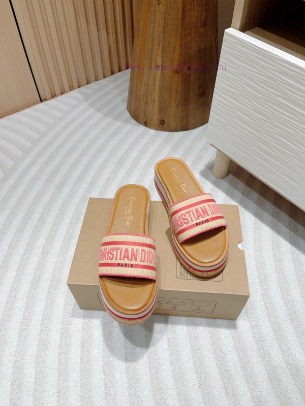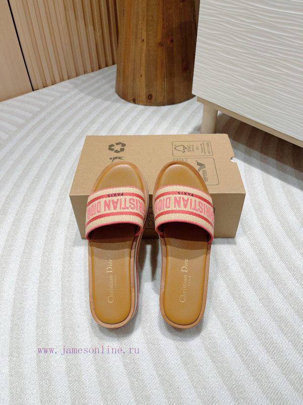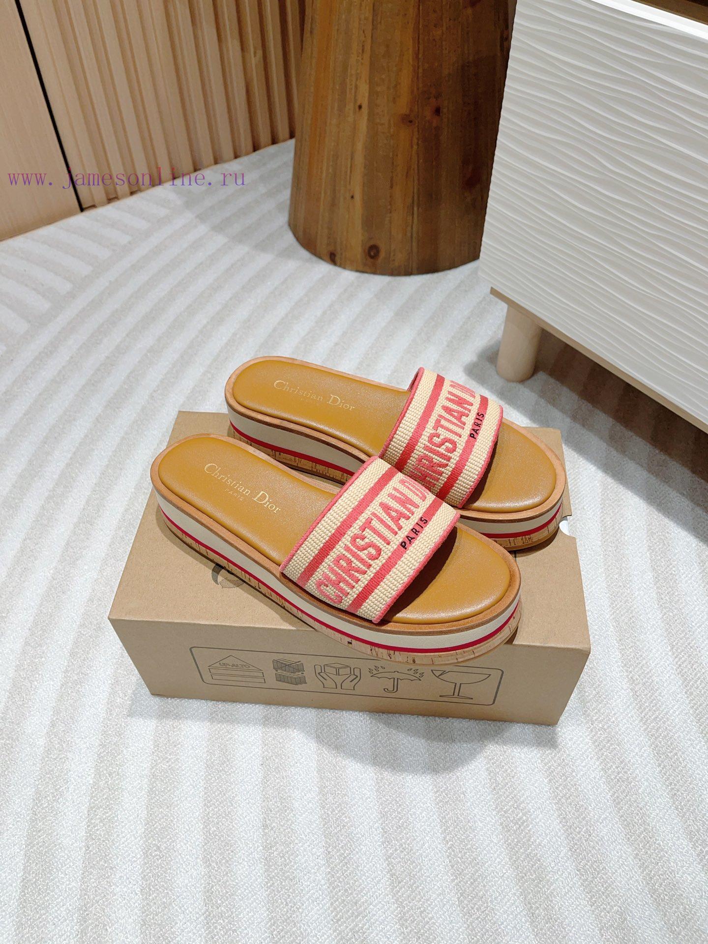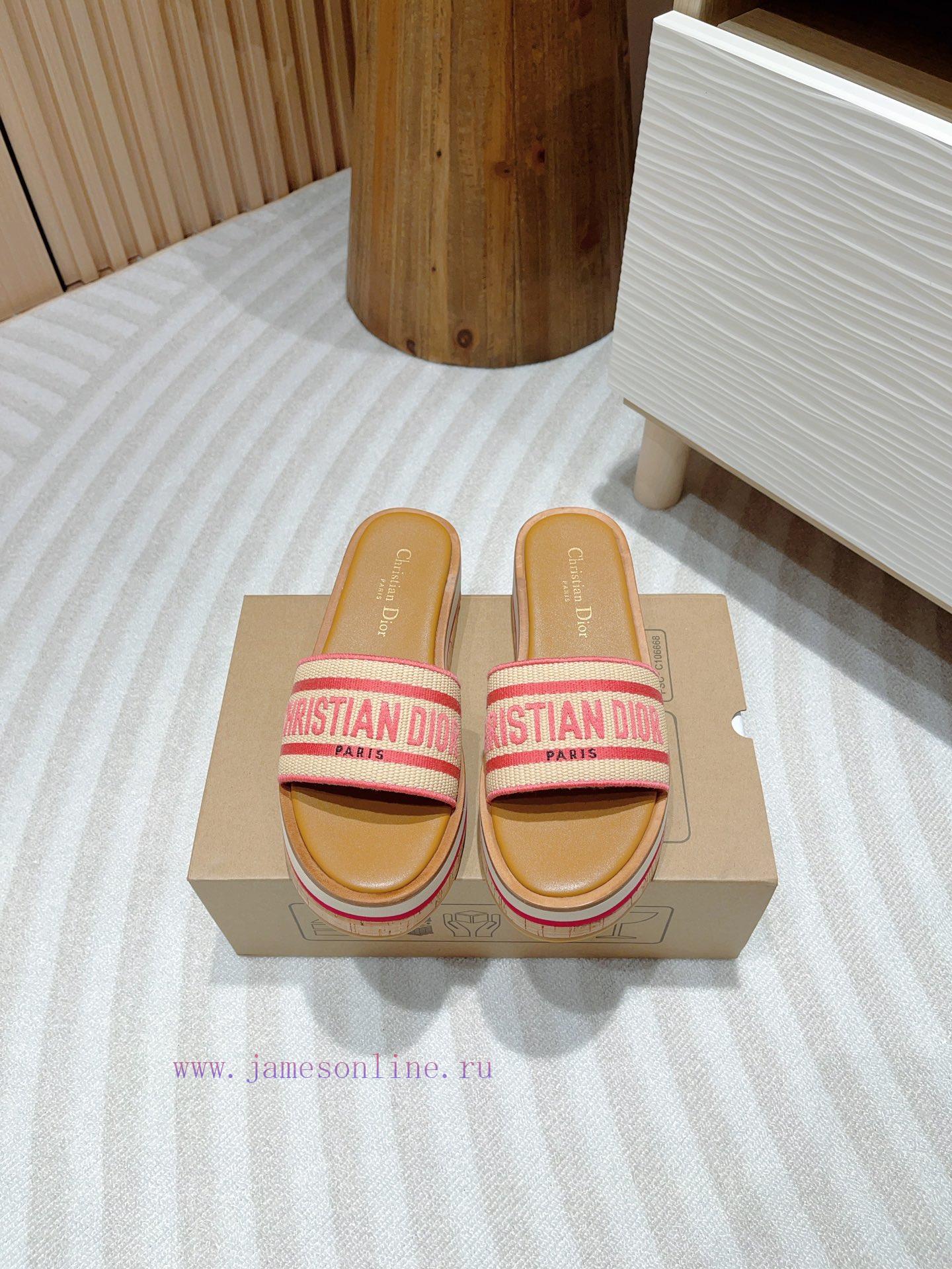 -24Ss new Dior Riviera Dway embroidered thick soled slippers in jelly colorThis Dway thick soled cooler is a new product in the 2024 autumn ready to wear collection, from the Dioriviera limited edition collection. It features a stylish and casual design with natural colors of wine coconut grass and candy pink cotton uppers embroidered with the Christian Dior Paris logo, and a recognizable thick sole made of wood, candy pink rubber, and cork. It can be paired with other items in the Dioriviera limited edition collectionEmbroidery technique of coconut grass on shoe upperInner calf leatherOriginal combination sole with genuine leather edgingHeight 4cmSize 35-3934.40.41.42.42 Customized Non refundable
