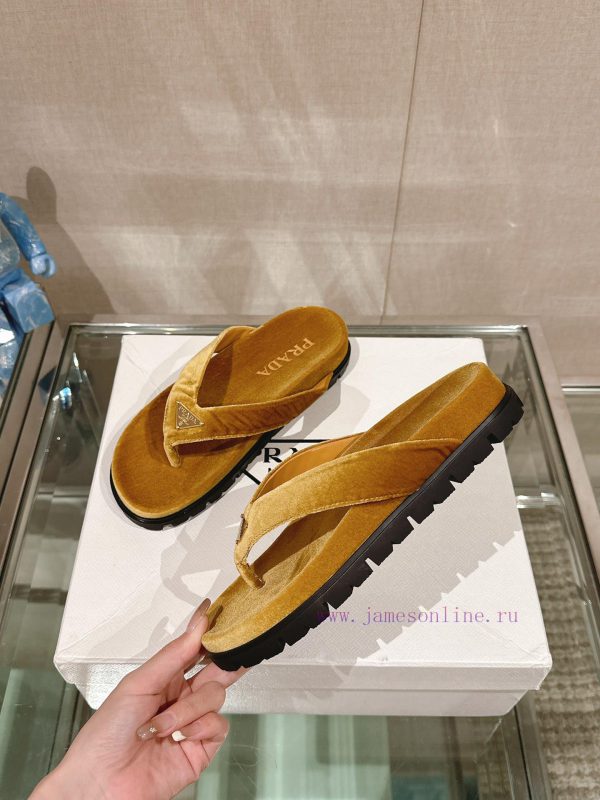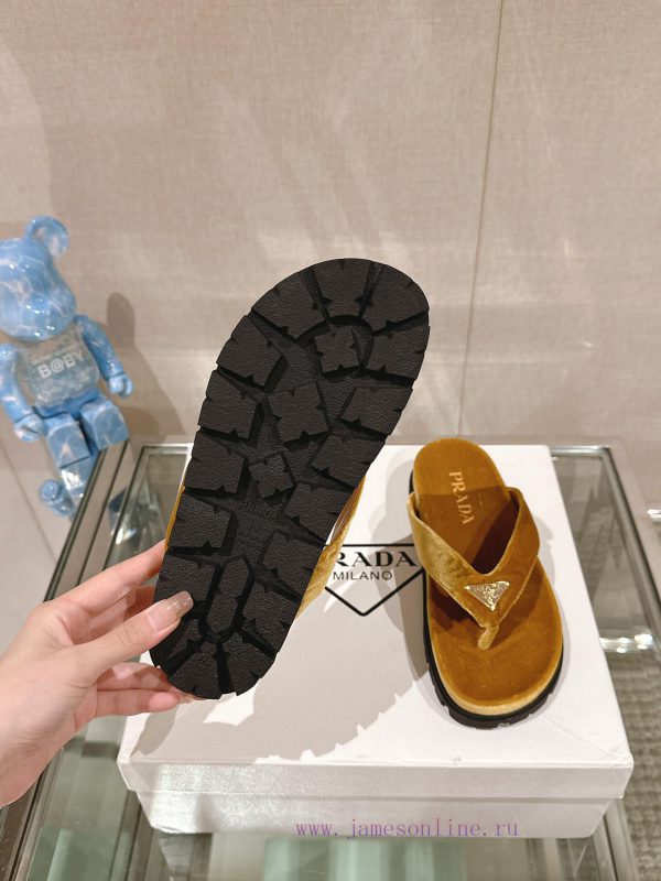 -24Ss new Prada herringbone velvet flip flopsThis sandal features a mixed design that clevernny8hdww