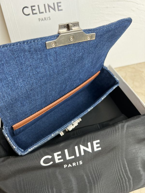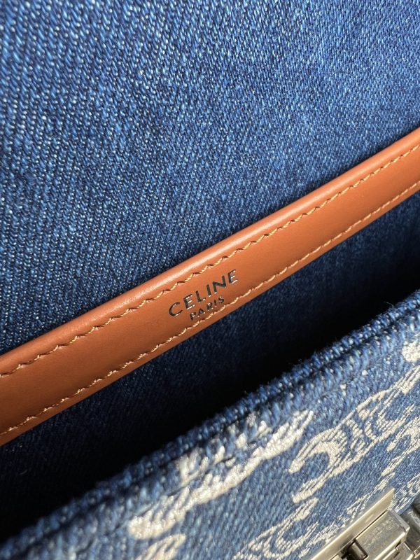 CELIN-E TRIOMPHE SMALL DENIM CHAIN SHOULDER BAG