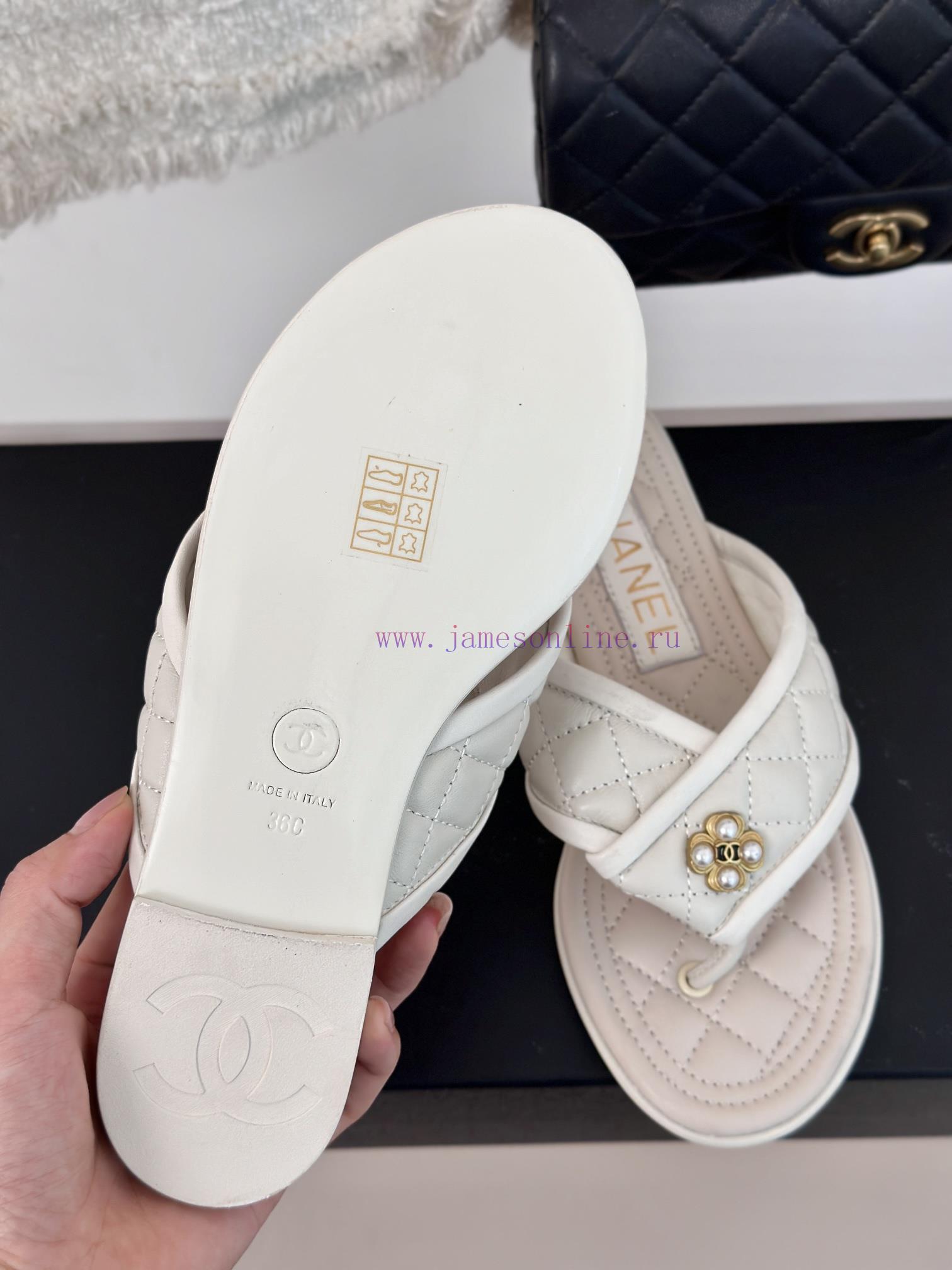 Chanel | 24P Spring/Summer New ProductsDouble C diamond grid clip on flip flopsSummer flip flops inexplicably make people feel freeWearing the double C crystal logo embedded is too exquisiteIt looks too good too, isn’t it? The upper foot is super delicate and appears whiteThe shoe upper is made of original customized materialImported sheepskin is used insideItalian imported cowhide outsoleZesi35-3934/40/41 customization