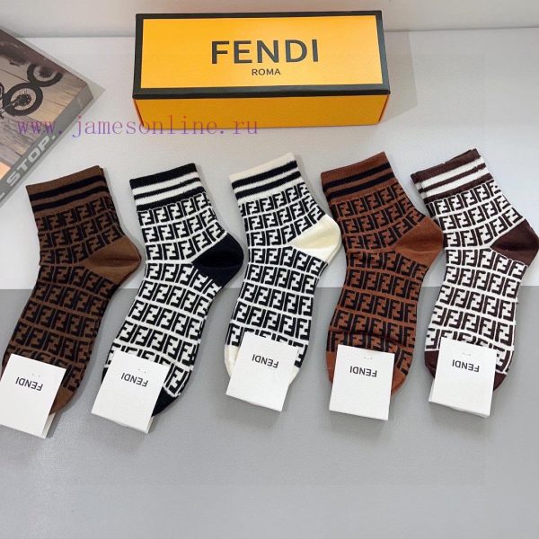 Comes in a box of 5 pairsFENDI letter double F popular mid length socks, made of pure cotton fabric, practical and easy to wear, soft and breathable, fashionable and versatile, popular on the street