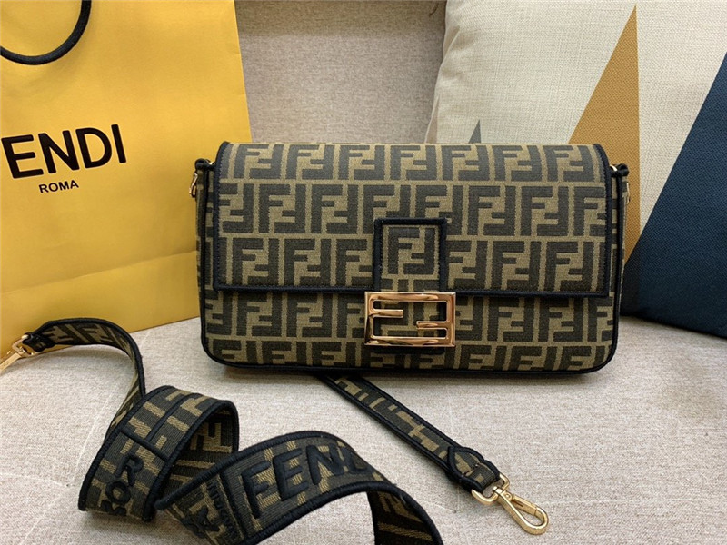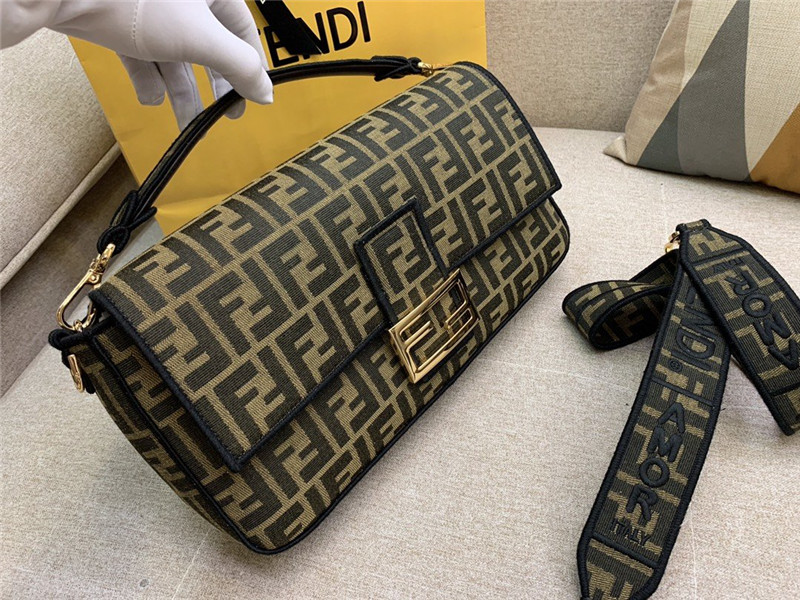 Fendi Baguette Jacquard FF Large Brown/Black bags