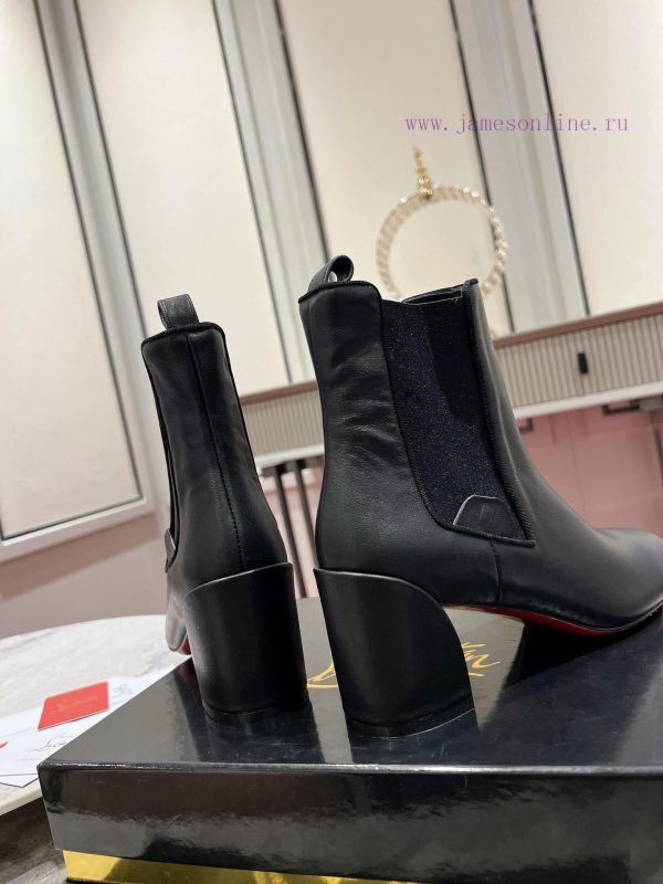 Generation level * ️The Turelastic short boots feature a thick 55mm diagonal heel design, paired with a delicate silhouette and smooth brown leather and Pony Kitty leopard print, showcasing the elegant temperament of Maison Christian Louboutin. It has a curved toe and elastic insertion on the side, enhancing a floating carved CL school team logotexture of materialImported calf leatherInner footrest made of full sheepskin, Italian leather outsoleSize 35-4240.41.42. Customized, non refundable, non exchangeableColor Black Paint Black Bull Leopard PatternFollow the height of 5.5