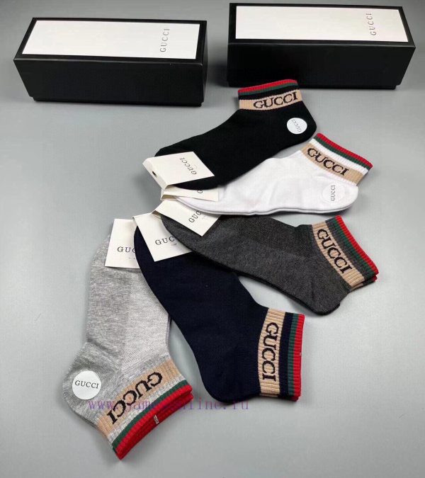 Gucci G Home New Men’s Short Socks – A box of five pairs of G Home synchronized short socks with classic jacquard logo, super nice, super beautiful physical appearance, super popular small item, big brand on the street, a must-have for trendsetters, super easy to match