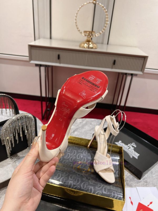 Leather sandals ︎ ️The elegance of Mariza sandals is enhanced by the details of their design. This Maison Christian Louboutin shoe features a 100mm heel made of black calf leather, with an ankle buckle and two cross straps that expose a low cut upperSize34-4334.40.41.42.43. Customization is non refundable and non exchangeable. Size 43 is 10Height of 10CMColor Black Naked