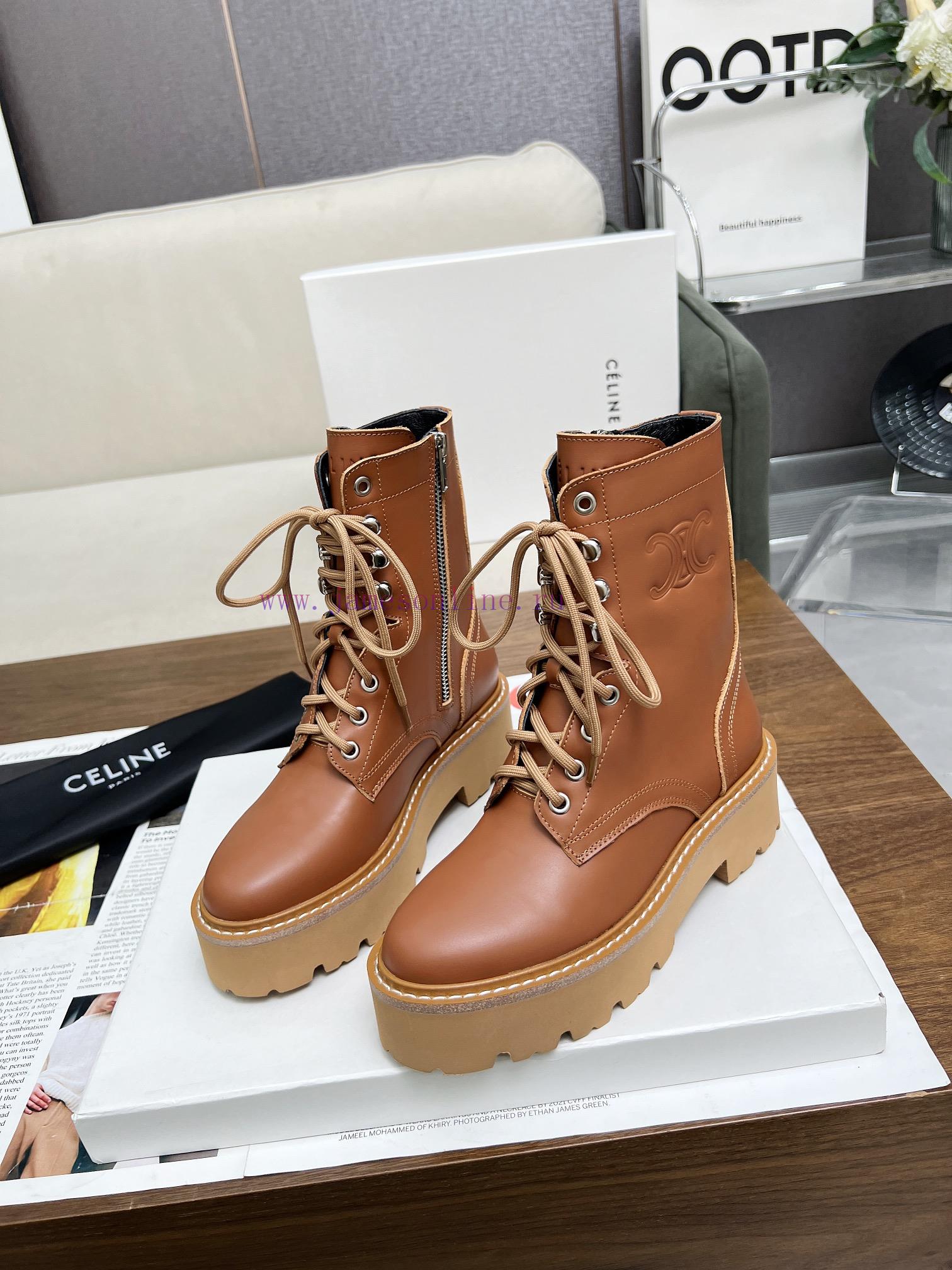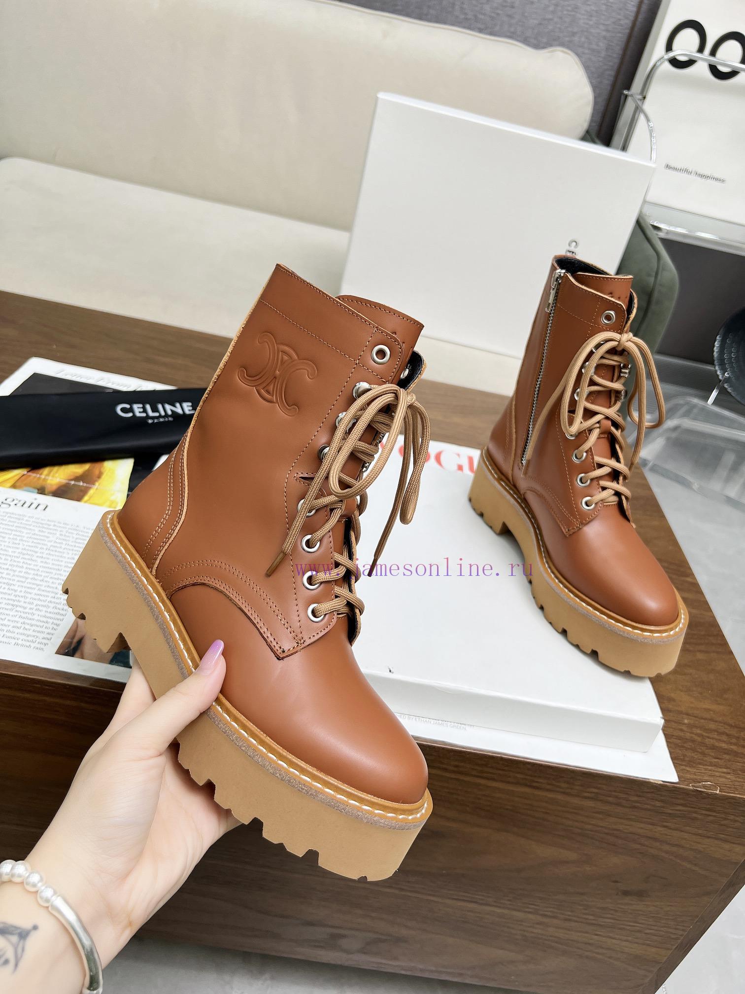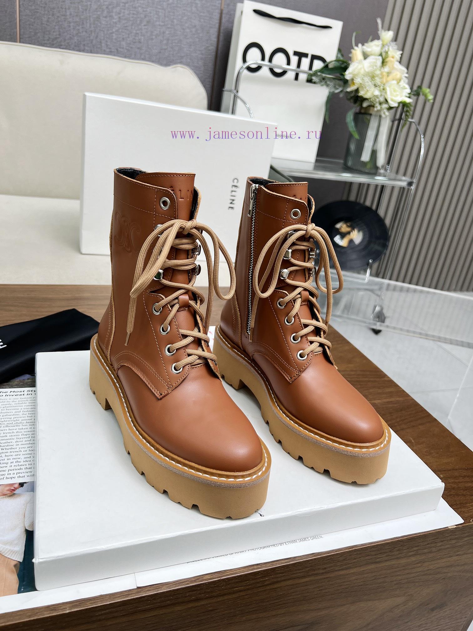 [Love] [Love] [Love] Celine 2024 Triumphal Arch Martin Strap Thick Bottom Flat Bottom Coarsehea9uowe