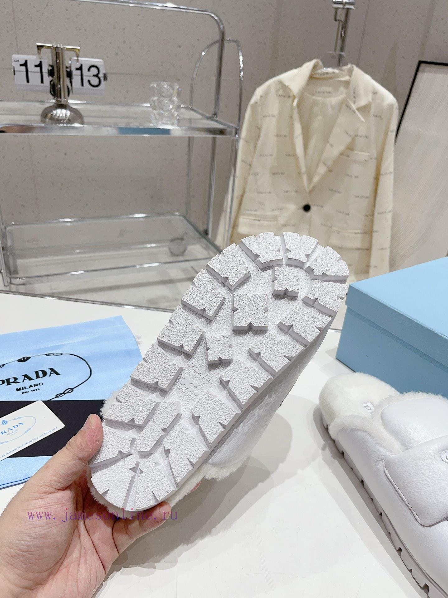 Prada’s autumn/winter 23 fur slippers collection is great for every style and color of the original craftsmanship. They are comfortable, cute, fashionable, elegant, and versatile. The wool is comfortable and soft, awakening the warmth of autumn and winter. Walking comfortably from morning till night, paired with socks, you can easily control the changing seasons. The original outsole is size 35-40