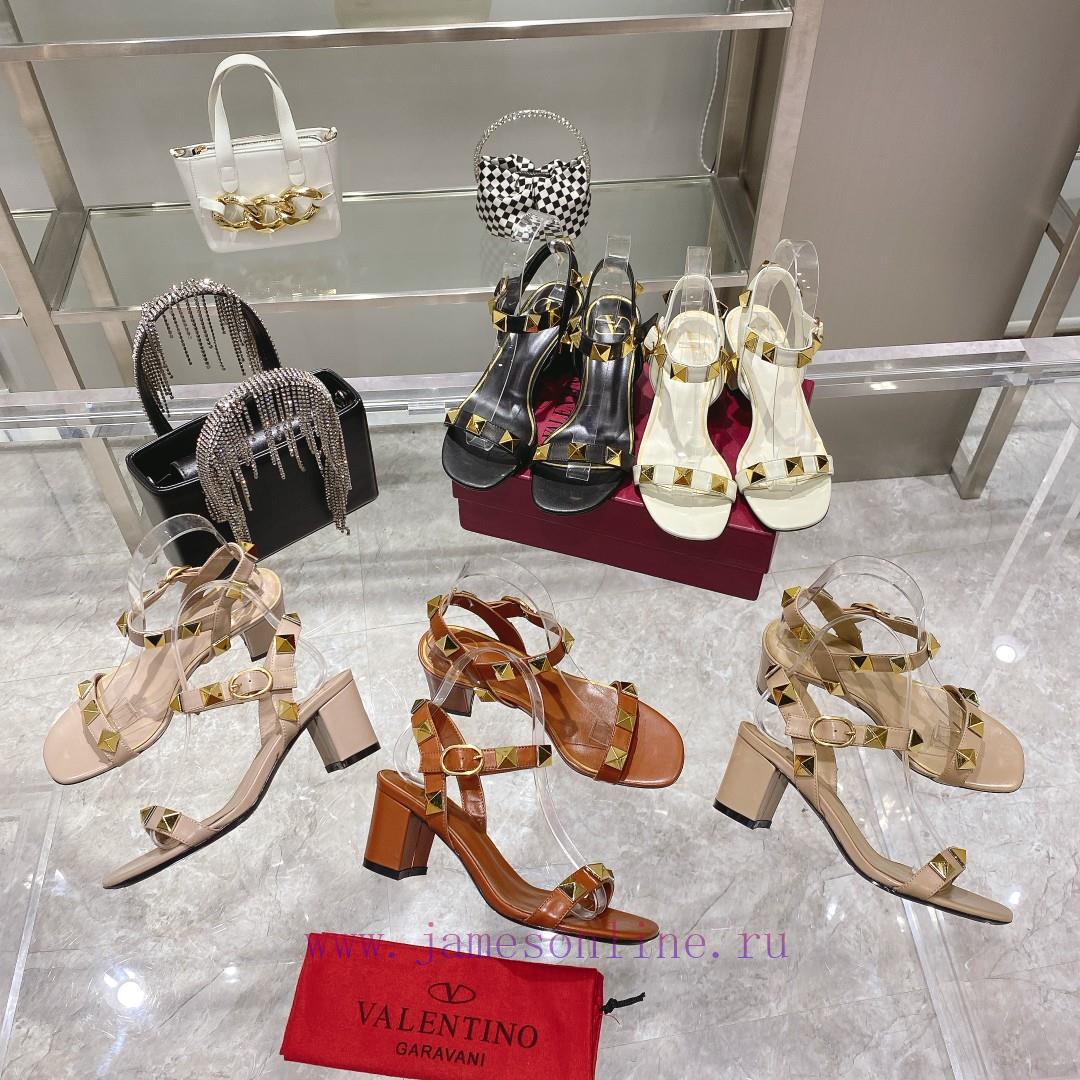 Valentinotino 〰️ Valentino Riveted Sandals New, Top QualityImported sheepskin upperImported sheepskin for inner foot padsColor: Black, White, Brown, Apricot, Bare, Available in Five ColorsHeight 6.5cmTwo options for outsole: genuine leather outsole and rubber outsoleSizes 34-4234 and 42 are custom-made and cannot be returned or exchangedP-price rubber sole ¥~genuine leather sole ¥ 190