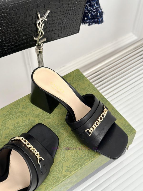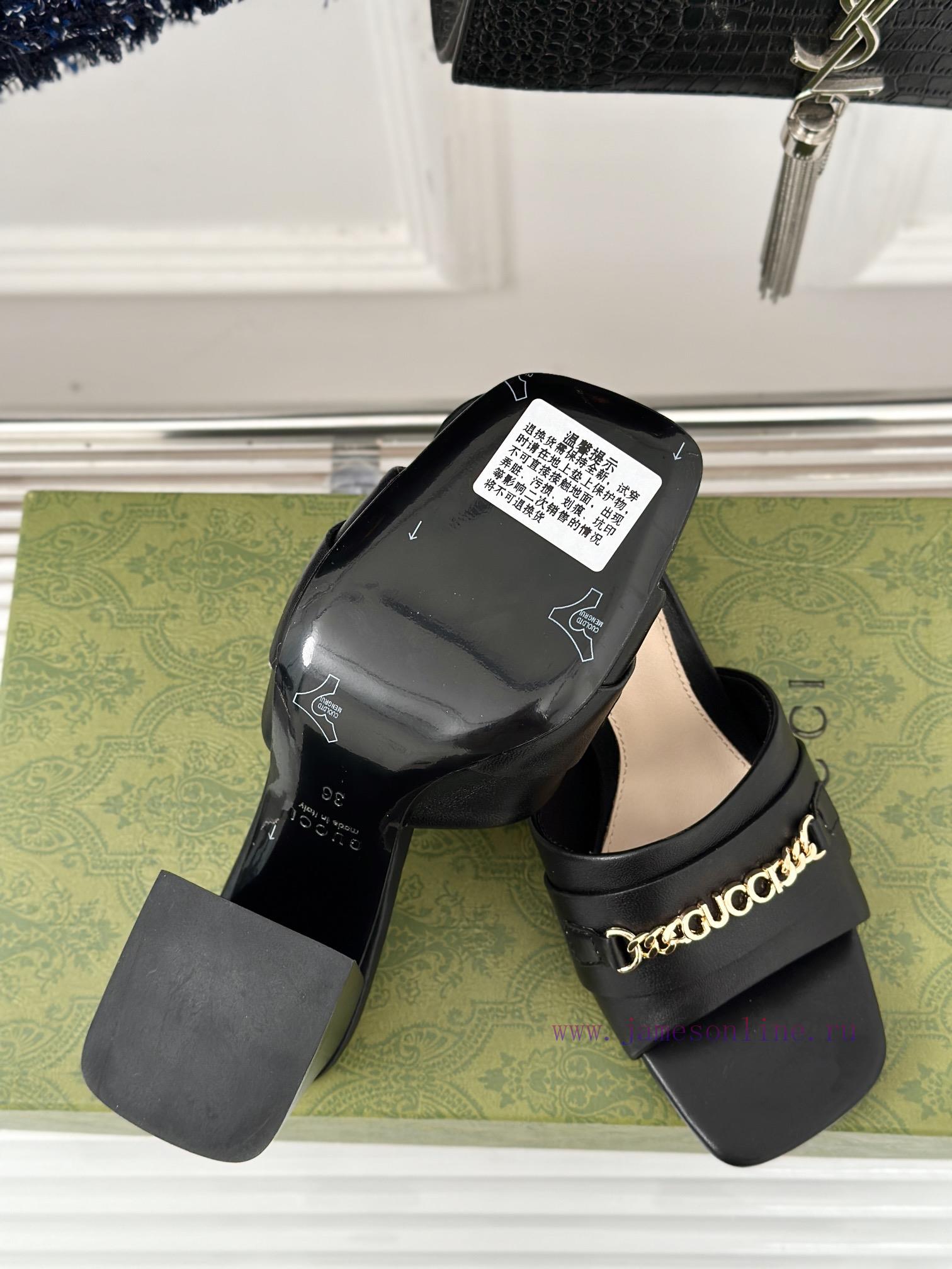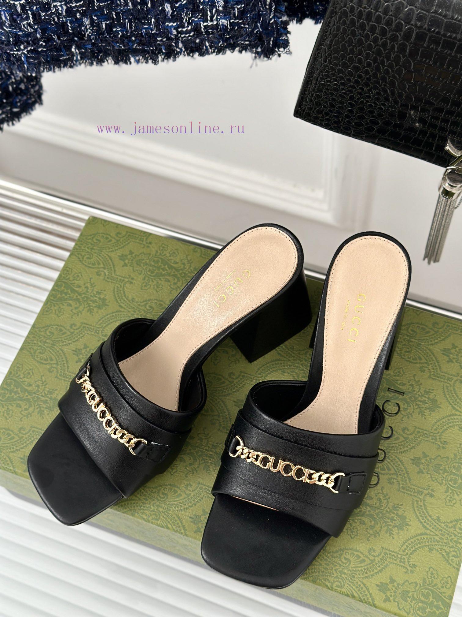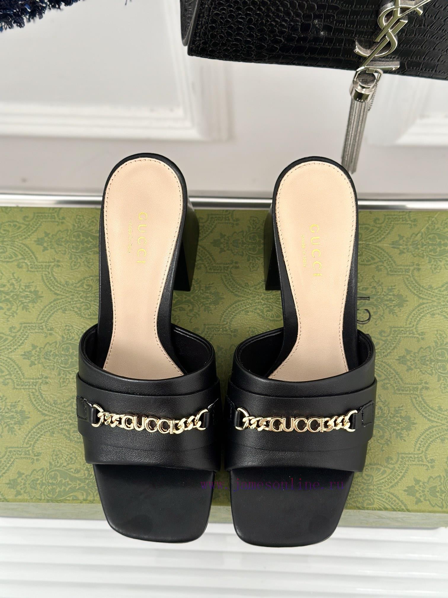 Gucci24S Spring/Summer New Product IntroductionLetter chain thick heel slippersThe fabric is made of imported calf leatherThe tiptoes inside are all made of sheepskinItalian imported cowhide outsoleHeight 7.5cmCustomization for sizes 35-3940/41