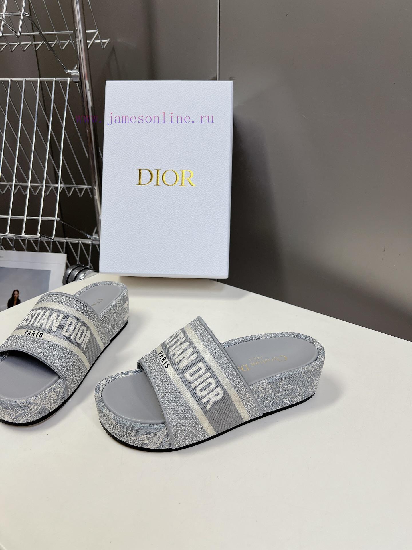 Top tierDior Classic Cotton 3D Stereoscopic Embroidery Printed Thick Bottom Cool Slippers Long lasting Edition with Many Internet Celebrities and Grasses Planting Top Quality Original Fly Weaving Pure Cotton 3D Stereoscopic Embroidery/Printing Very Comfortable on Feet Inner Cushion Leather~Lucky Star Super Good Foot Feeling Original Mold Bottom Height 5cm Size 35-40