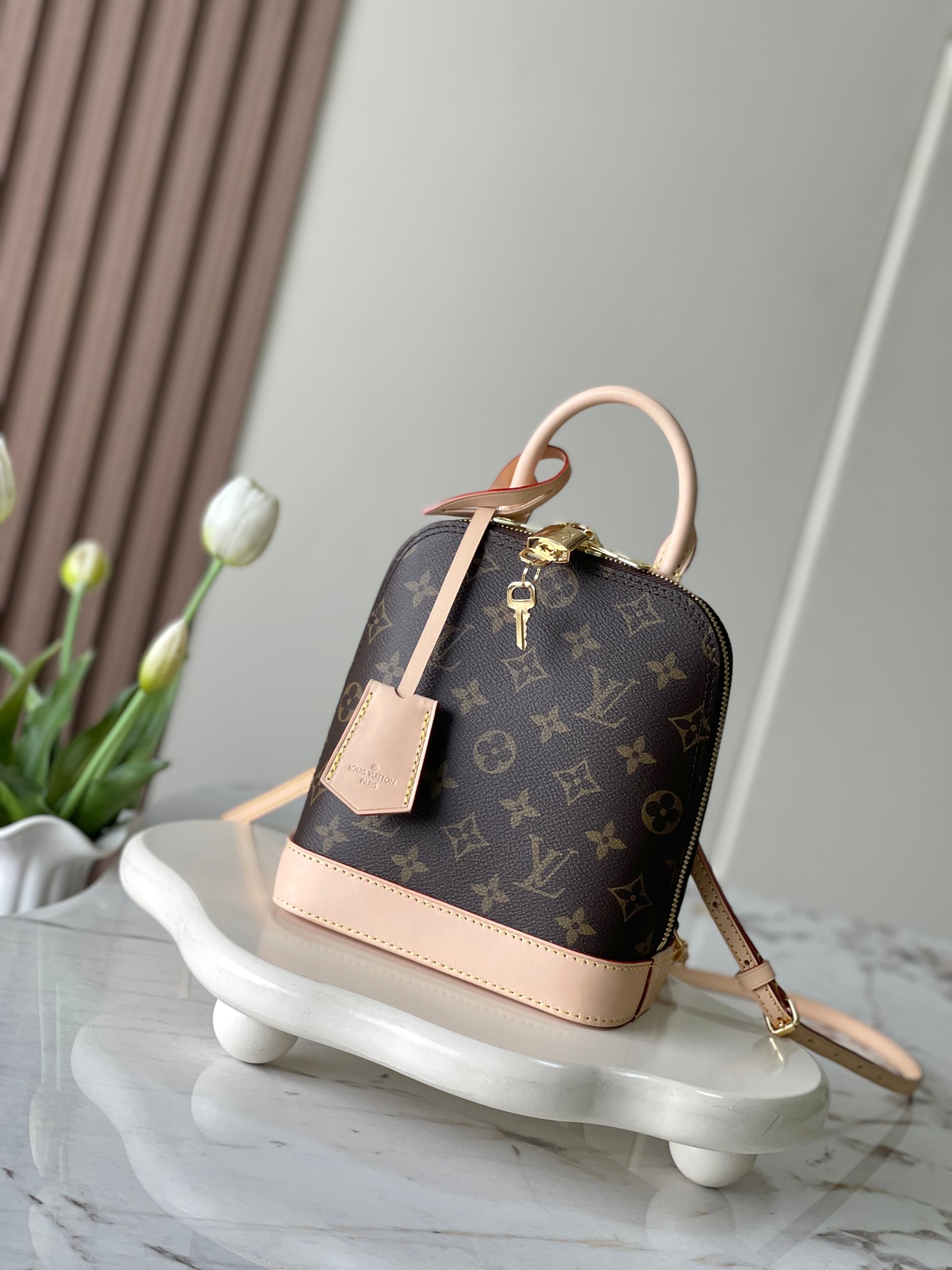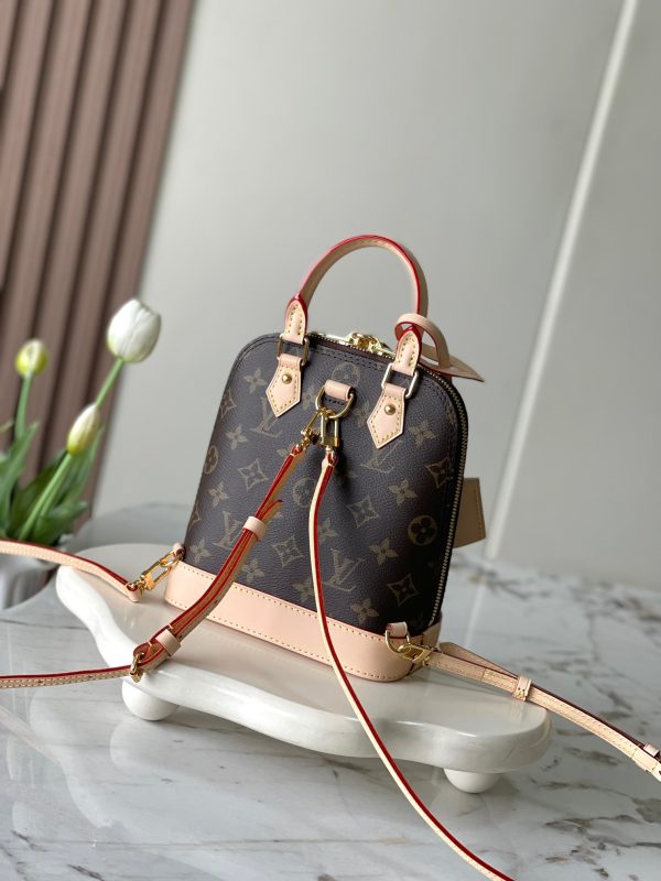 (Version), ALMA backpack M47132This Alma backpack has made a remarkable debut at the 2024 Spring/Summer women’s fashion show, adding a fashionable new piece to the Alma sbd collection. The classic Monogram canvas is paired with a variety of Alma handbag elements, including a rounded top handle, a dazzling engraved padlock, and a keybag. The detachable shoulder strap provides a variety of carrying options.Size: 15 x20x10 centimeters (length x height x width)