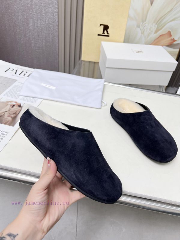 High qualityThe Row 24ss Autumn/Winter New Retro Big Head Baotou Tow, Boken Wool Tow. At first glance, this shoe feels inconspicuous and simple without too much decorationBut it has a bit of retro flavor, is cute and cute, and looks good with casual matching. It has a consistent minimalist style without any logo embellishment,The whole pair of shoes may seem simple, but the craftsmanship is difficult. They are made using full leather last making technology by a master craftsmanAt the end of the day, there is not much production capacity for super waste, and wearing it barefoot is comfortable, soft, and skin friendly. There is absolutely no need to worry about the foot feelEasy to wear is a must. If you don’t have the experience of wearing it, you won’t want to take it off. For those who demand a high sense of foot feel, close your eyes and enter its simple and versatile style~Imported calf suede fabric with delicate and soft textureImported cow suede inside, the bottom of the mattress is made of imported woolOriginal molded rubber outsole with anti slip and wear-resistant propertiesSize35-3939 Customized Non refundable