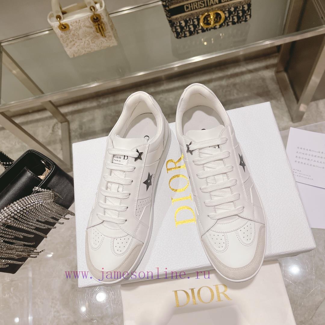 2024 Spring/Summer New CollectionThis Dio Star sports shoe continues the timeless silhouette and is carefully crafted from white cowhide leather, making it more comfortable to wearAdorned with suede leather patches in the same color tone and metal stars to decorate the shoelace eyelets, enhancing the style. Lightweight and paired with the “Christian Dio” logo thin sole, suitable for all seasons, can be paired with various casual styles, adding a finishing touch. Classic and durable shoe upper with cowhide stitching and original TPU outsolesize35-41
