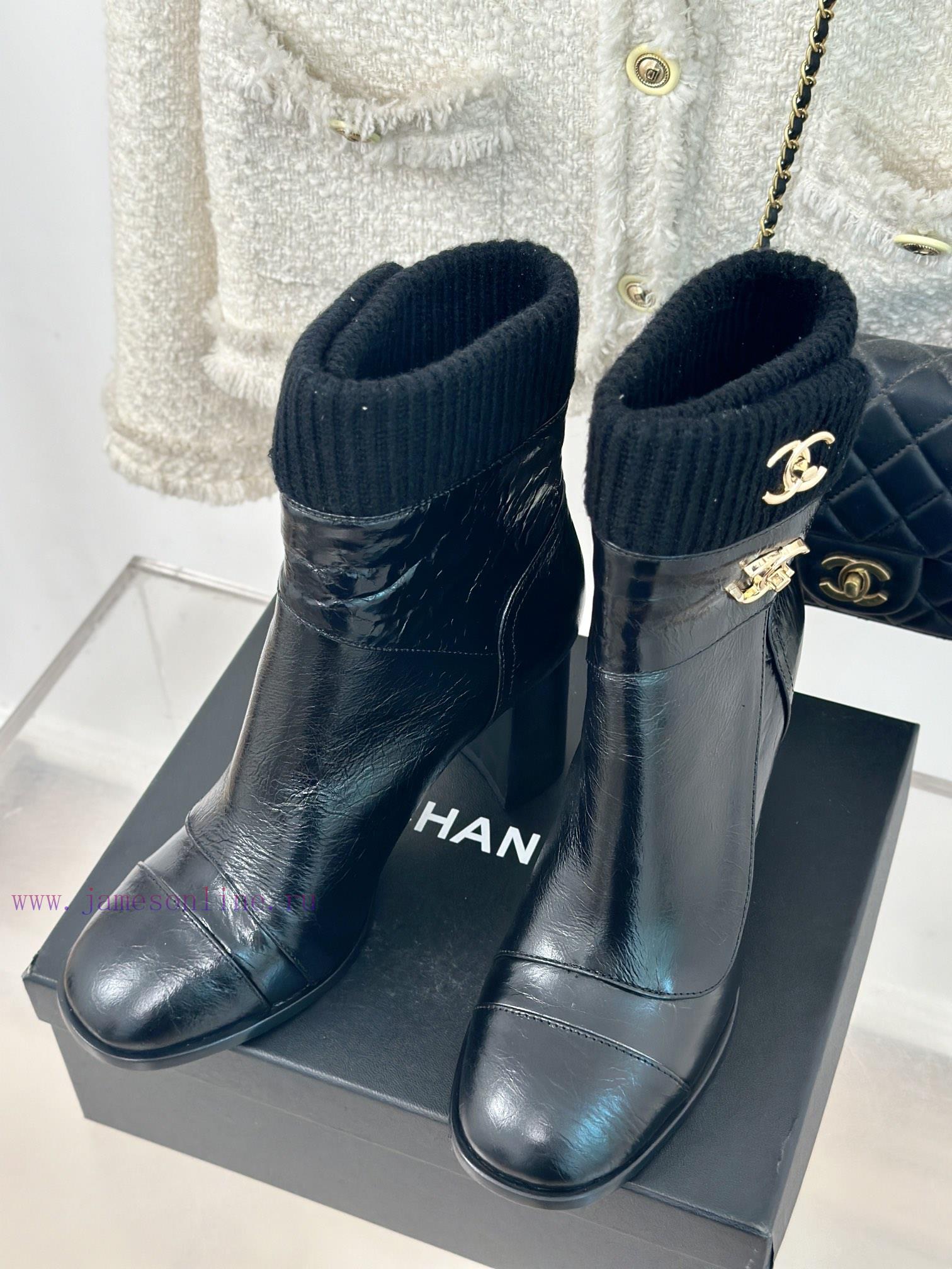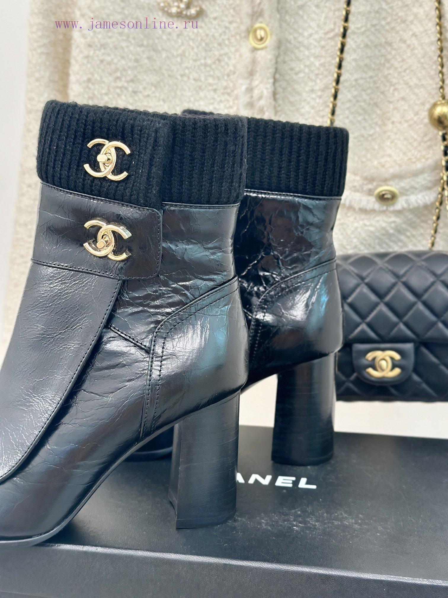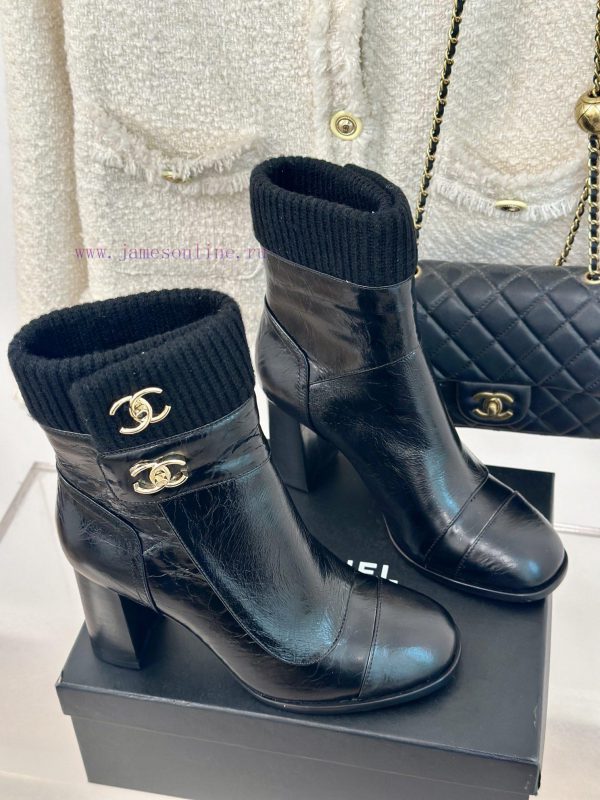 Chanel | Chanel Classic Autumn/Winter Double CBackpack buckle knitted yarn tube short bootsThe shoe upper is made of customized cowhideMixed sheepskin with inner foot padsItalian imported genuine leather outsoleHeight 8cmCustomization for sizes 35-3940/41