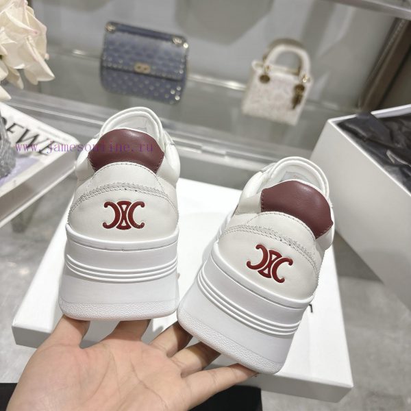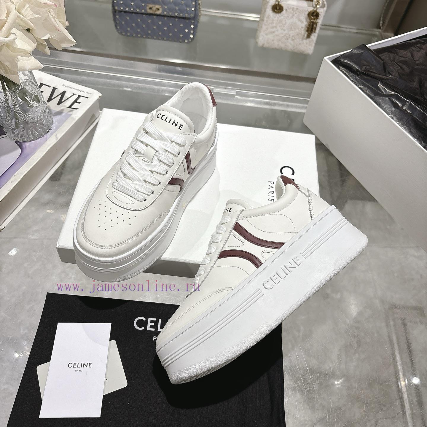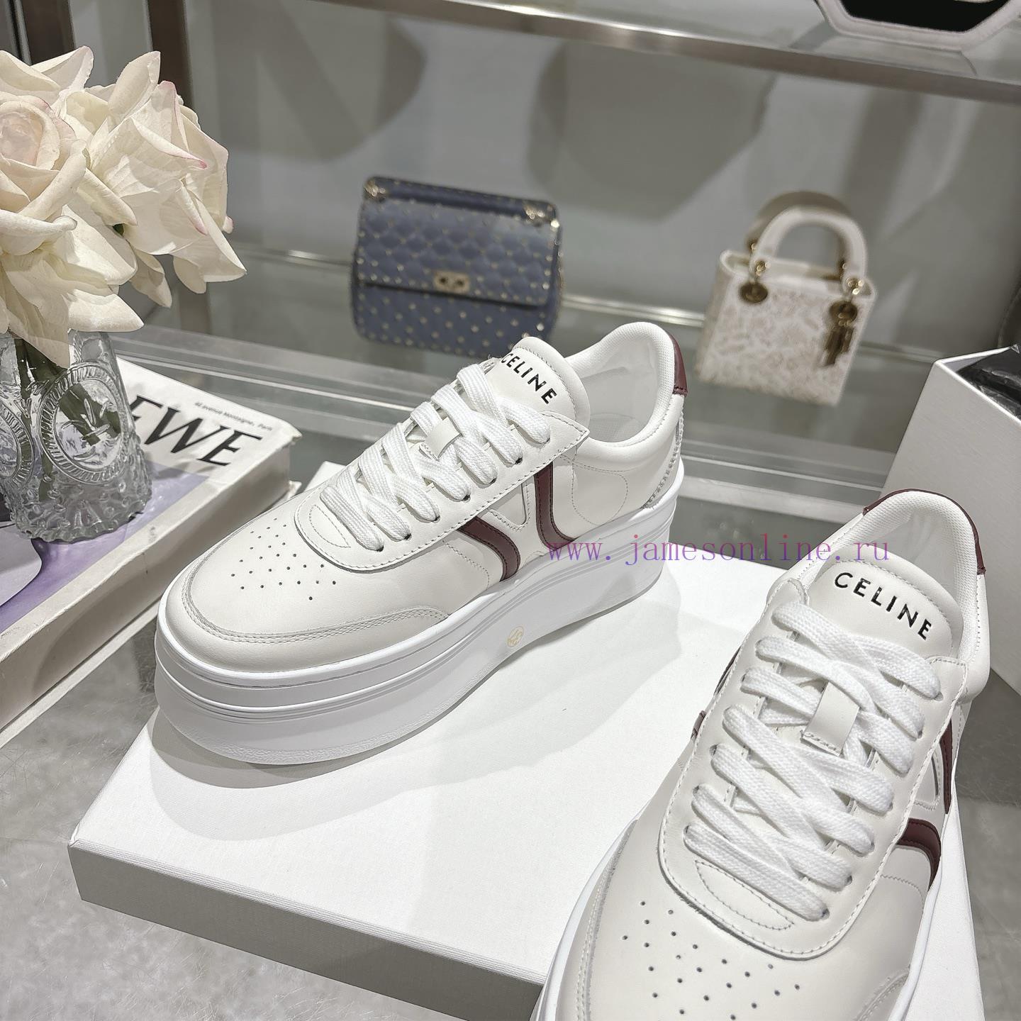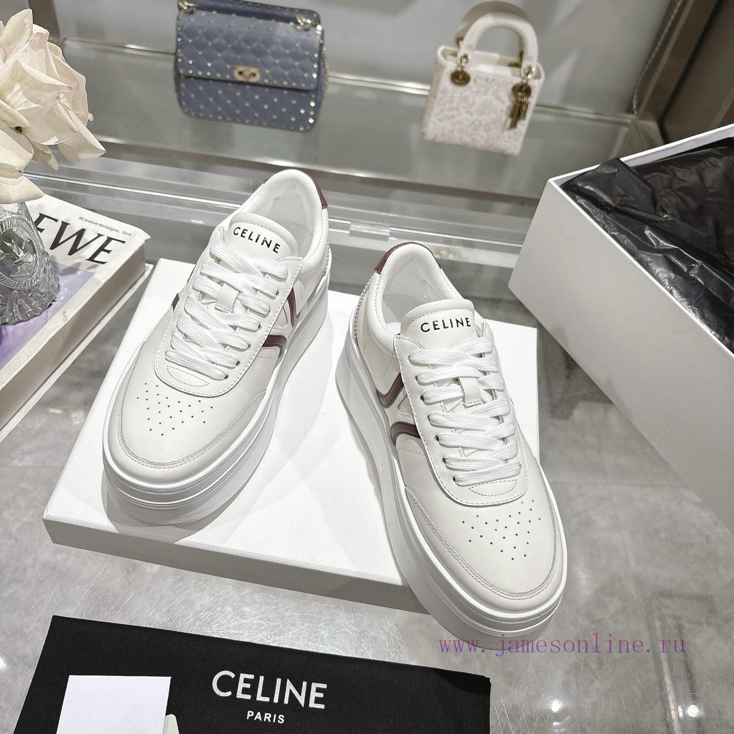 CELINE BLOCK TRIOMPHE Leather Slope Heel Sneakers Thick Bottom White Shoes with Arc de Triomphe Logo Imprinted on the BackThe new Triumphal Arch logo tie for early autumn is simple and comfortable, clean and neat, and increases height to show slender legsWhether worn alone or paired with wide leg pants, let’s do CELINE girl together on the high street with retro styleOriginal leather upper with contrasting colorsInside the original versionBottom rubber material35-39 Other sizes customized
