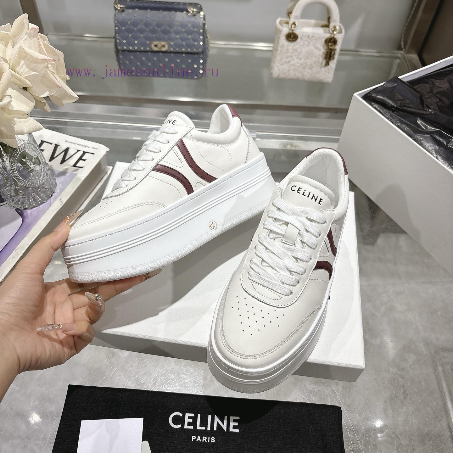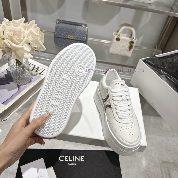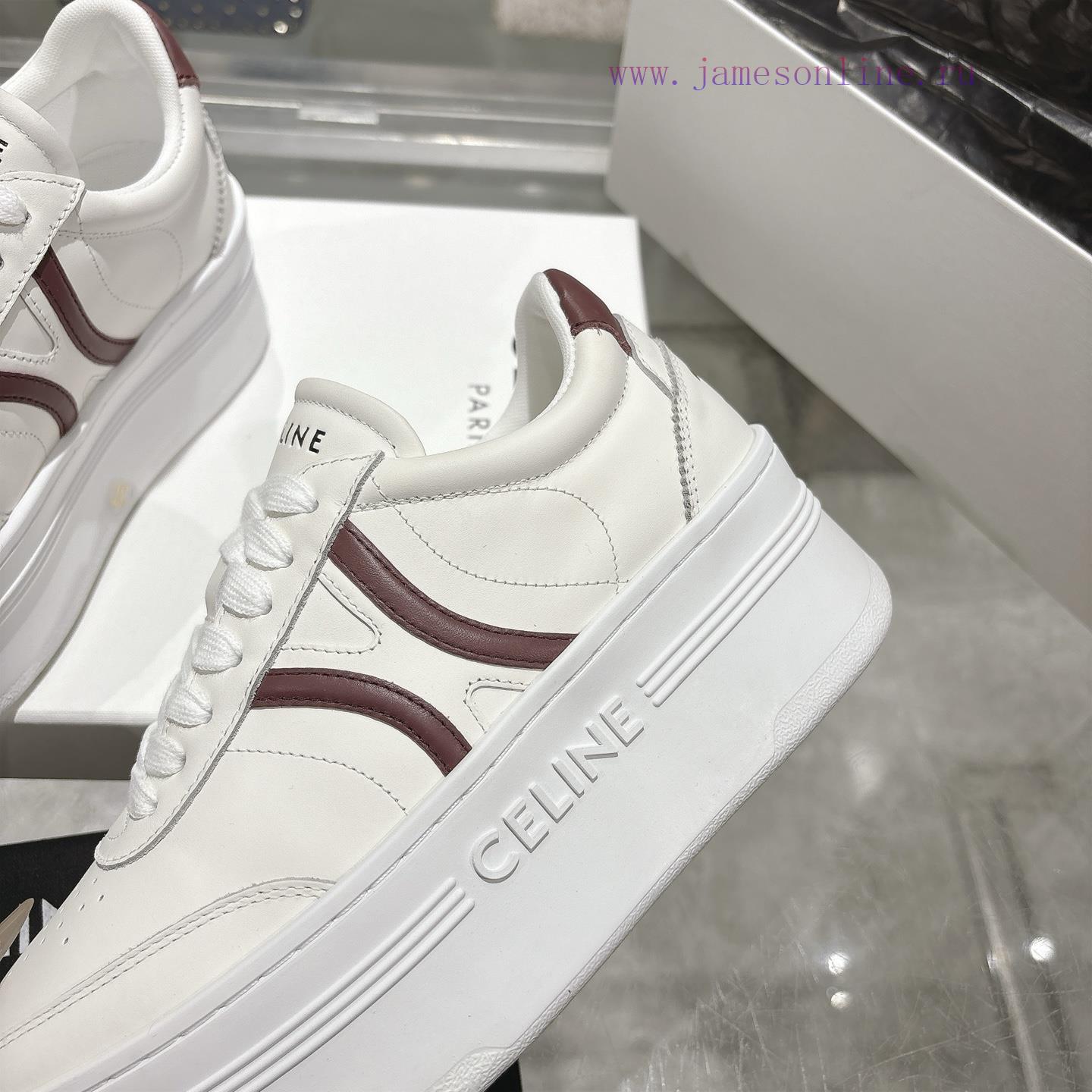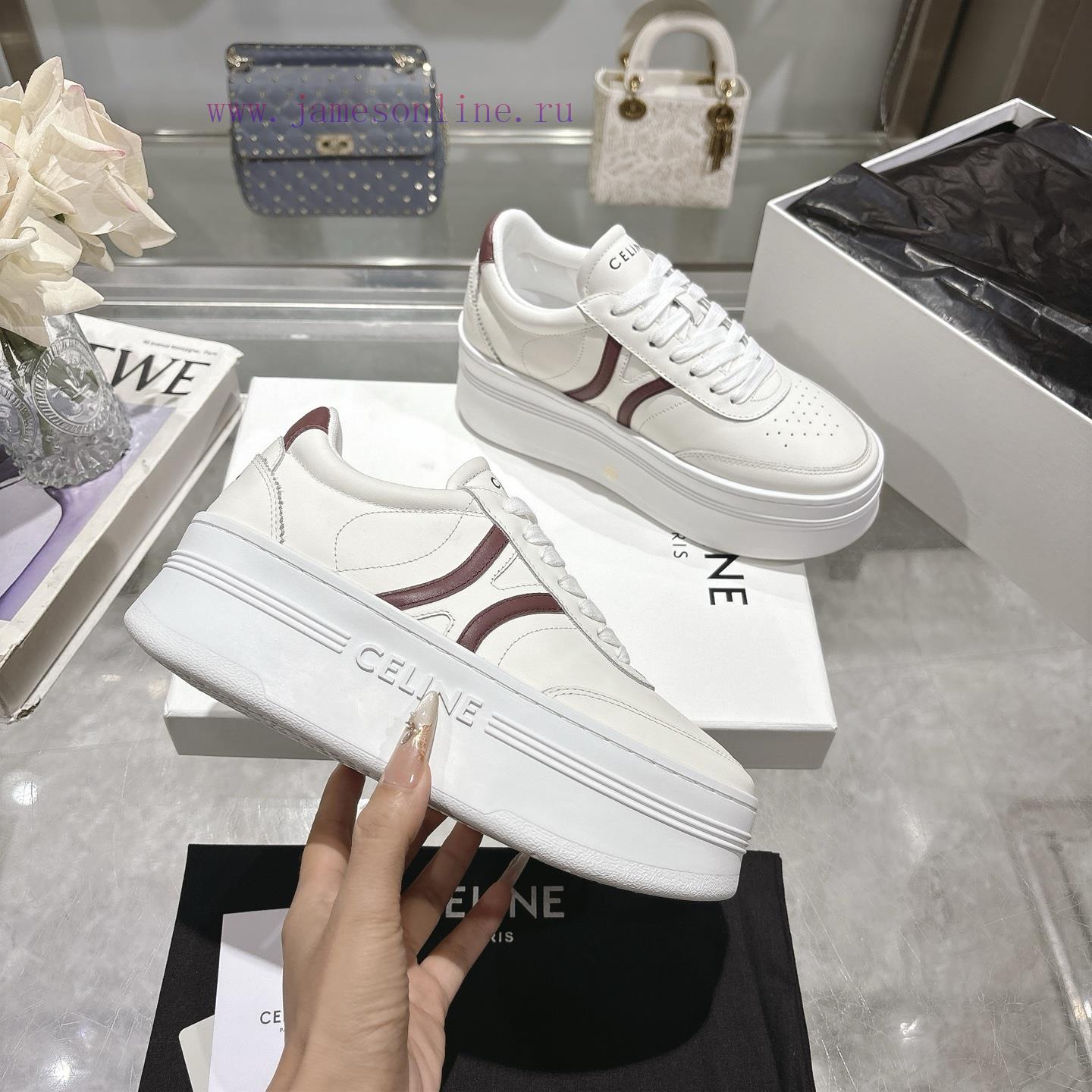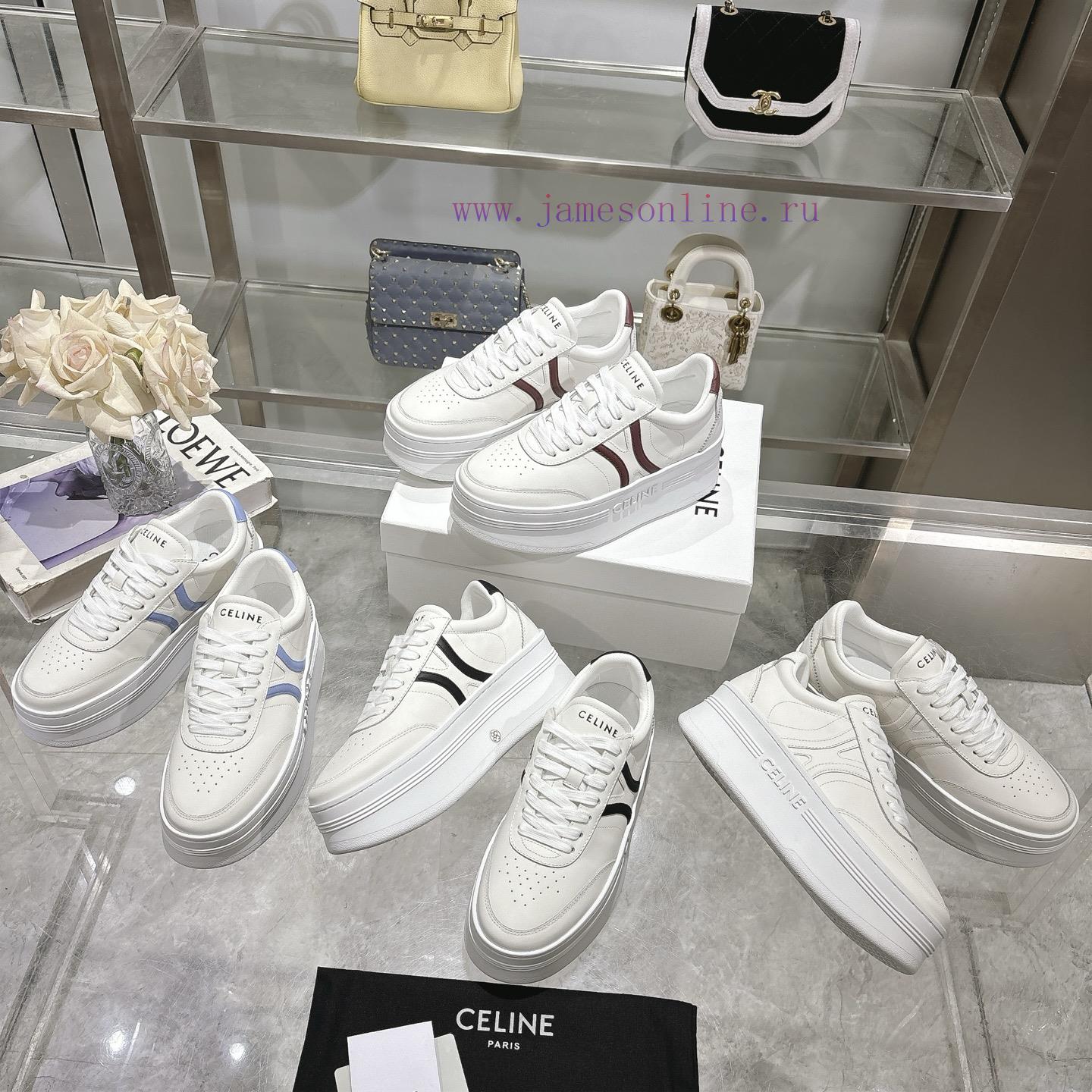 CELINE BLOCK TRIOMPHE Leather Slope Heel Sneakers Thick Bottom White Shoes with Arc de Triomphe Logo Imprinted on the BackThe new Triumphal Arch logo tie for early autumn is simple and comfortable, clean and neat, and increases height to show slender legsWhether worn alone or paired with wide leg pants, let’s do CELINE girl together on the high street with retro styleOriginal leather upper with contrasting colorsInside the original versionBottom rubber material35-39 Other sizes customized