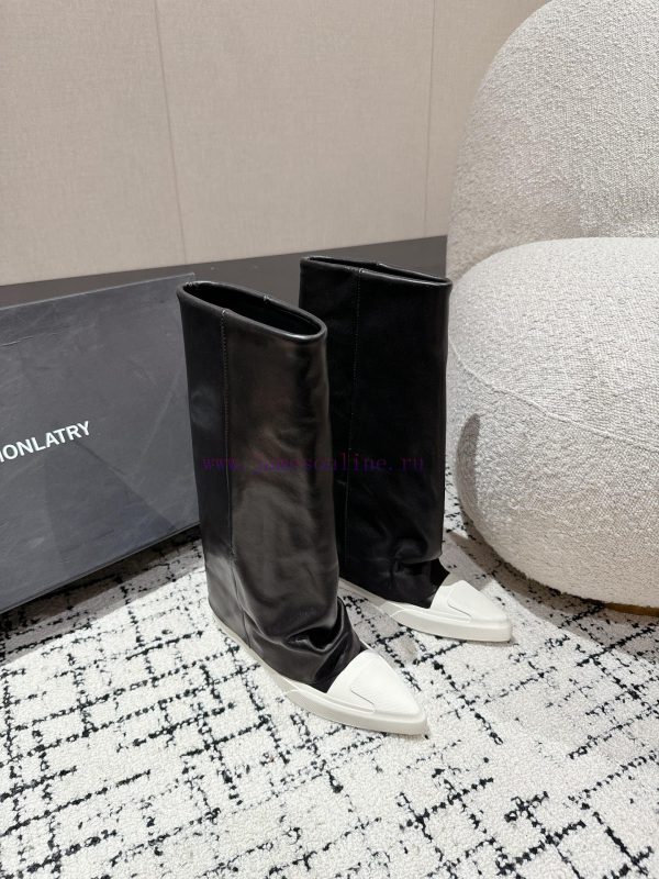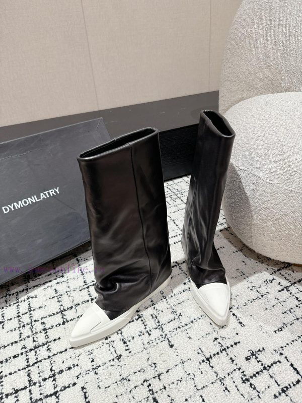 DYMONLATRY 24/niche designer new pointed leg boots and long bootsStep by step, the height can be increased within 3cm, making it easy to elongate and increase the proportion. It controls the sporty street style with original mold making and customized line data, bringing rich details and comfort to minimalist dressingBlack shoe upper and white outsole combination, easy to match for daily use, effortlessly achieving a sense of luxury️ Fabric calf leatherInner cowhideInternal height 3cmNatural rubber outsoleSize 35-40 (40 customized, non refundable)Tested with a diameter of 176mm for the middle cylinder and 184mm for the high cylinder in size 36