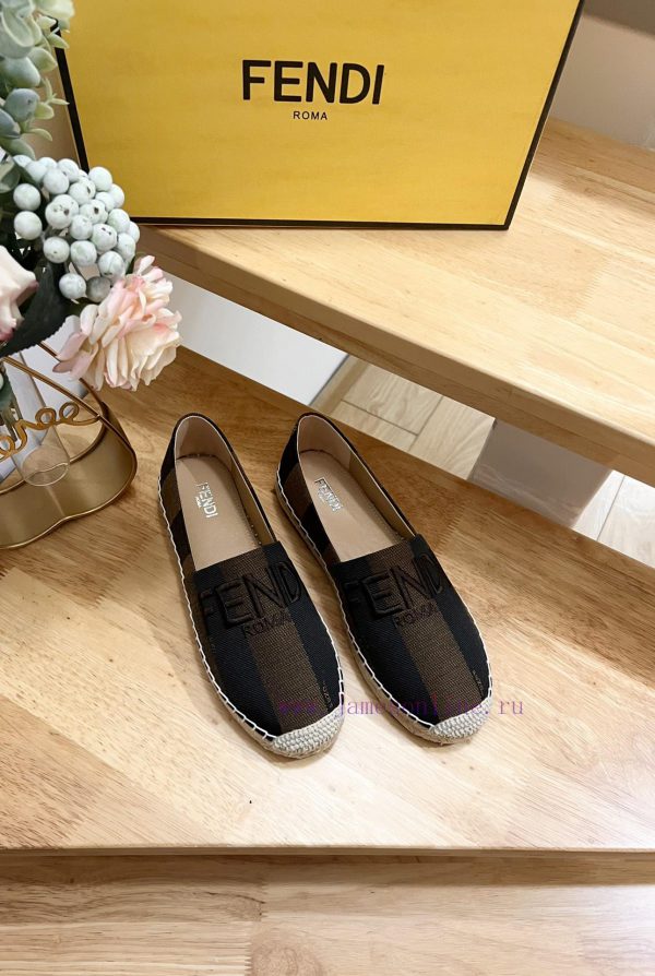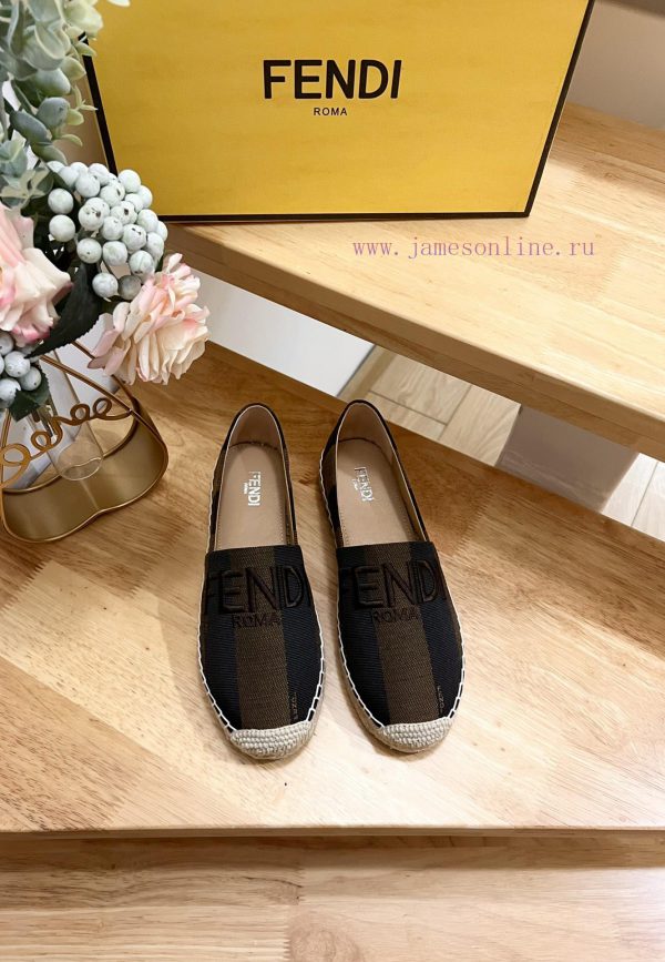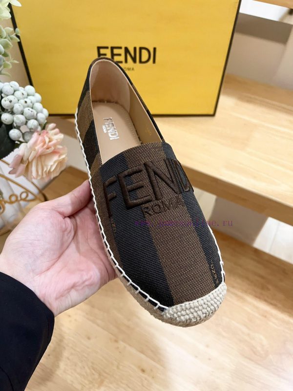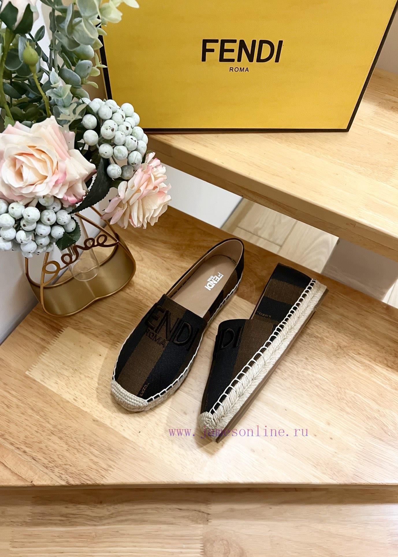 P Women’s and P Men’s 290Fendi men’s and women’s striped linen bottom fishing shoes are made of FF jacquard fabric with smooth leather edgesLeather lining Weaving rope bottomLeather inlay under heelrubber soleHeel 2cmSize 36-45