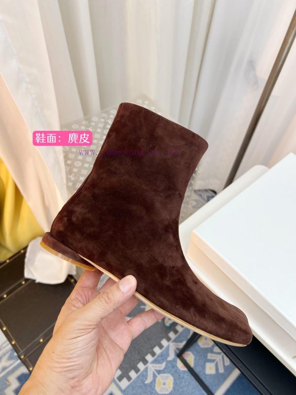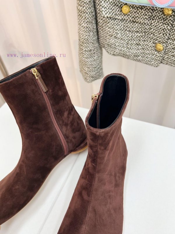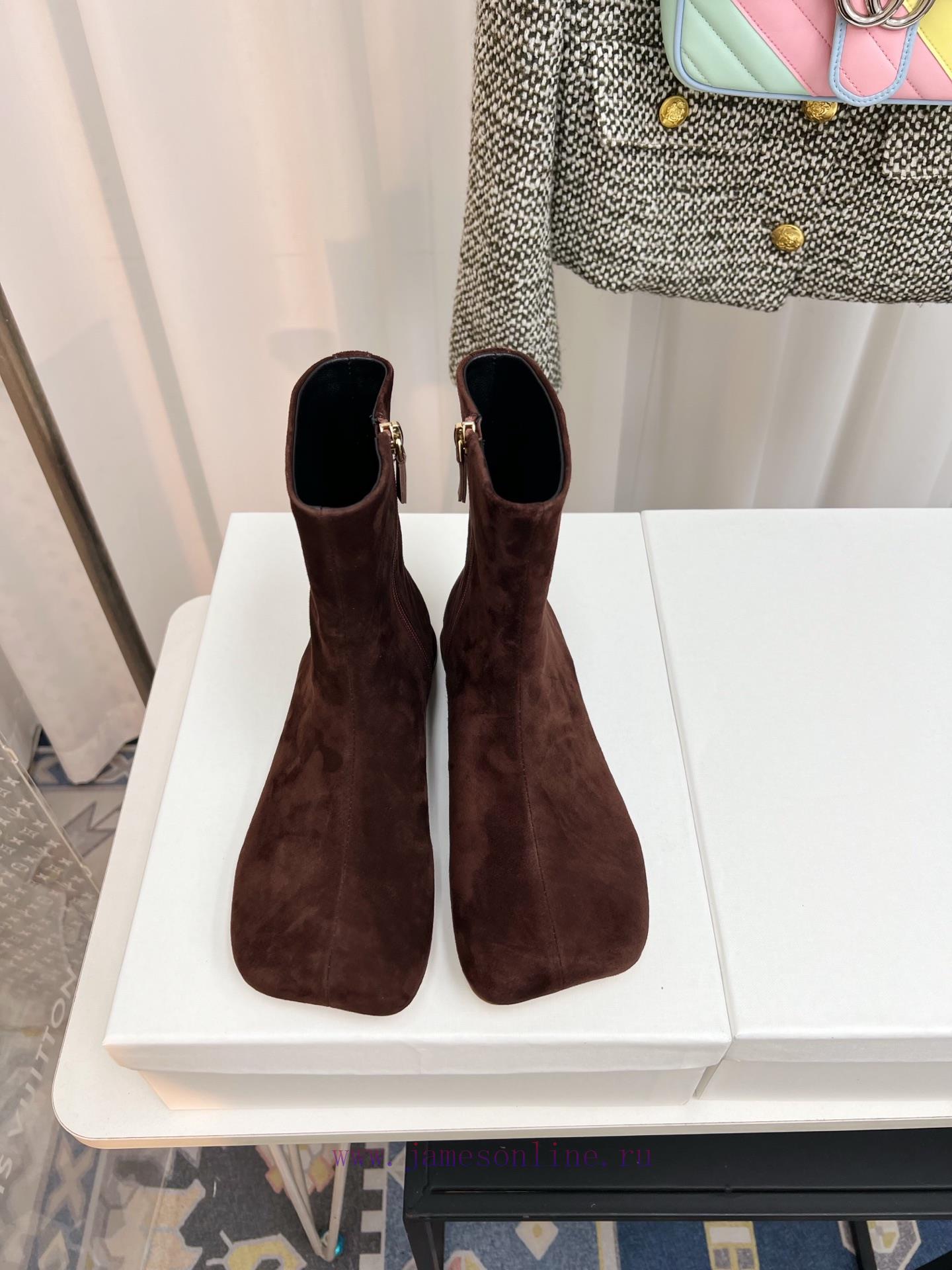 The ROW trendy design short boots will be released in the autumn and winter of 2025. They do not follow the trend and only define the sheepskin texture that wraps around the feet. The slanted square toe design overturns mediocrity, and the round heel adds comfort and style. These short boots are the most stylish weapon with design sense in your shoe cabinet, making every outfit eye-catching on-siteShoe upper made of sheepskin and suedeInner sheepskinHeight 2cmBig Bottom Imported Genuine Leather Bottom