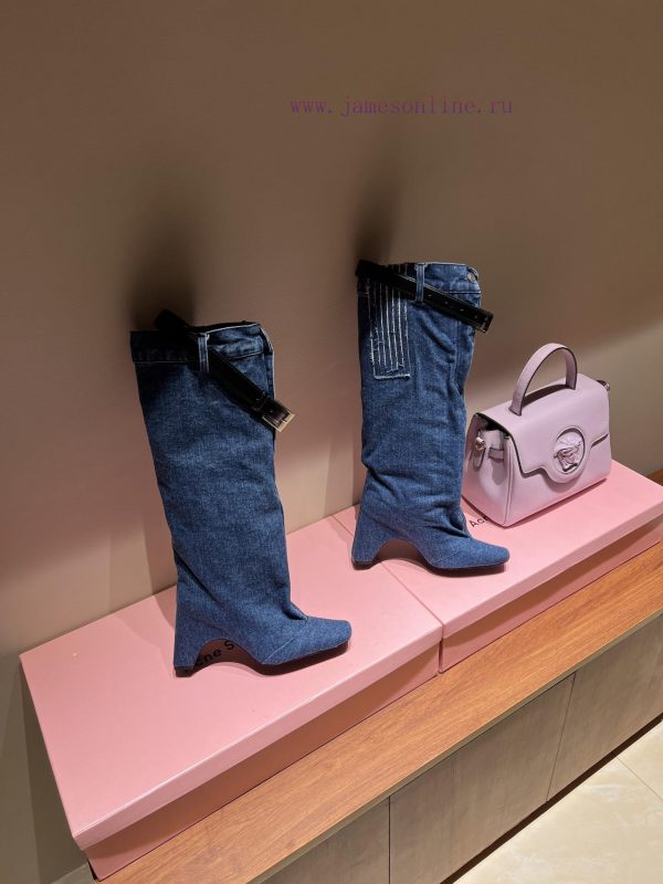 Coperni 24ss autumn and winter new horn boots with a unique heel design combined with a small square toe, high-end and fashionableUnconventional and unique designer styleQuickly sweeping the entire fashion circle with a unique styleThe texture of full screen imported calf leatherFine texture levelThe shoe upper has natural wrinklesMaster controls the machine car lineExquisite and high-end feel of the circuitShoe tube printing brand logo▪ Original washed denim fabric upper▪ Leather insoles inside▪ Height 9cm▪ Original outsole▪ Customization for sizes 35-4040 is non refundable.