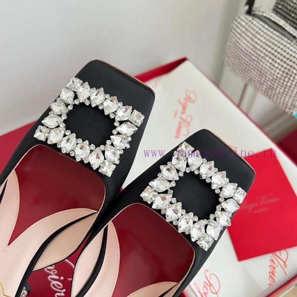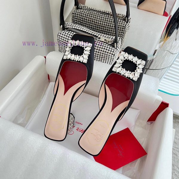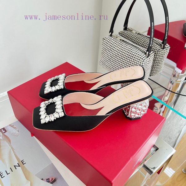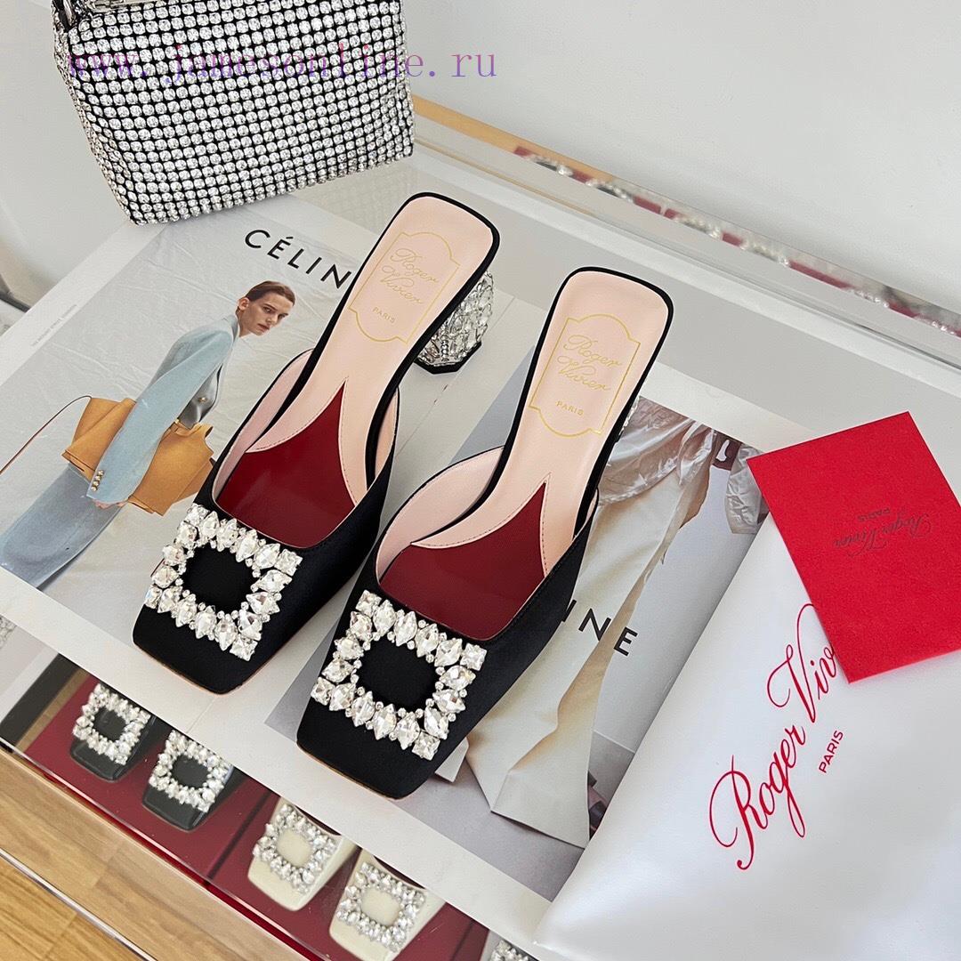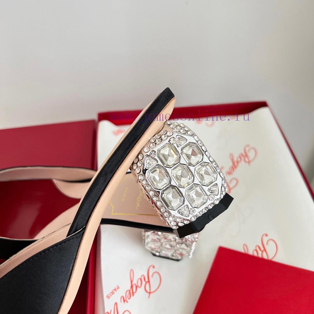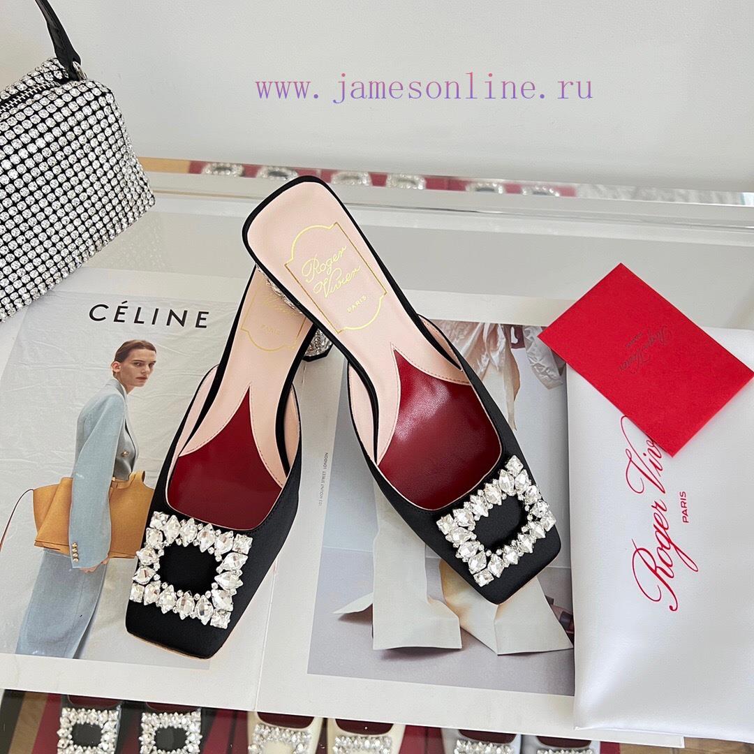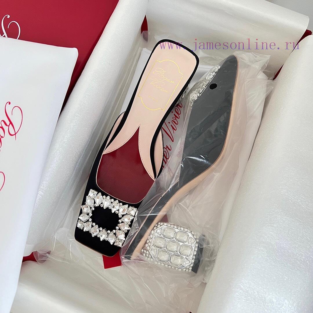 𝑹𝒐𝒈𝒆𝒓𝑽𝒊𝒗 * 𝒆𝒓 New Jewel Heel Sparkling Diamond Inlaid High Heel Half Drag | Top Purchasing Level-Black patent leatherMaterial and CraftsmanshipOriginal imported cowhide/silk fabricCustomized sheepskin liningCustomized rhinestone decorative buckleItalian genuine leather outsoleFlash diamond inlaid heel 6.5cmsize35-40