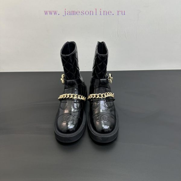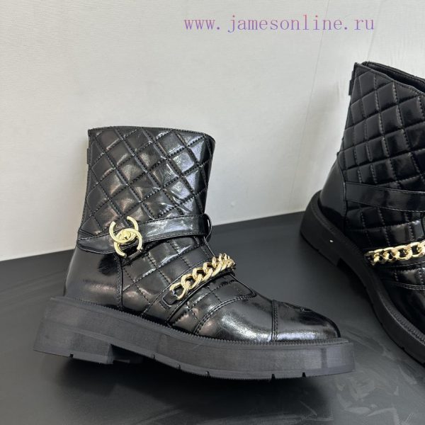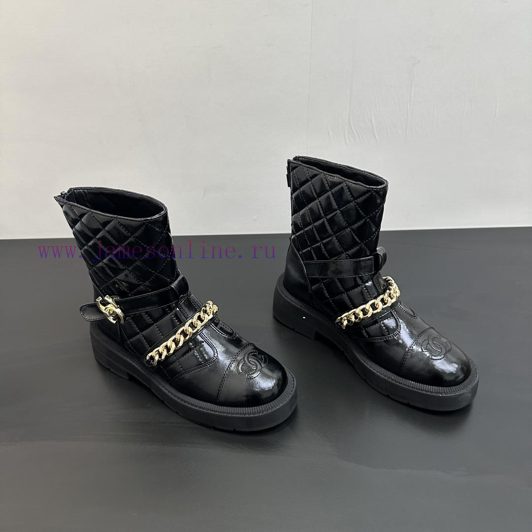 Chanel Chanel 25 Autumn/Winter Poster Collection: New Chain Short Boots with Classic Boot Design and British Retro Style. The original inverted last shape is timeless and durable, with an ultimate 11 body shape. The imported fabric presents a delicate texture with a chain and diamond grid boot tubeCustomized A-level high-density private mold bottom with luxurious packaging-Unparalleled quality, 35-39 (customized for 40.41)