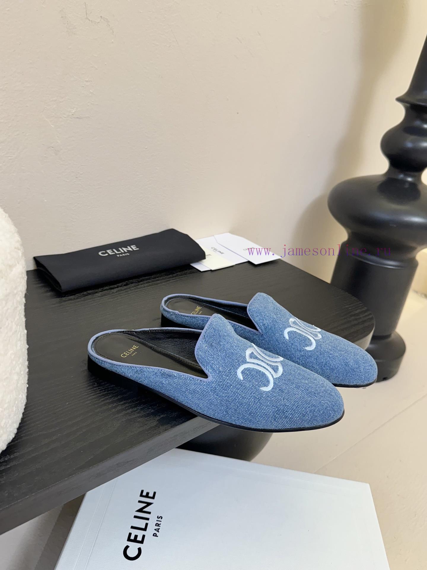 Celine * Celine 2025ss New Baotou Half TrailerThe internet celebrity Instagram grass planting artifact is very retro and full of atmosphere. The design style of each item is very novel, high-end, and very comfortable The original one-to-one customized toe Celine logo showcases the brand’s charm, and the fabric is super soft and comfortableOriginal fabric: Ma Mao Yang Jing denimInside sheepskin liningSize 35-394041 Customized