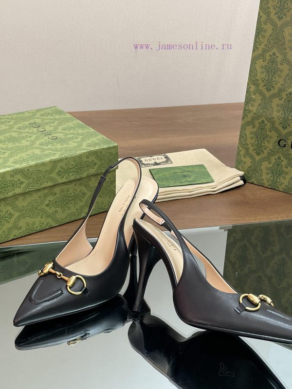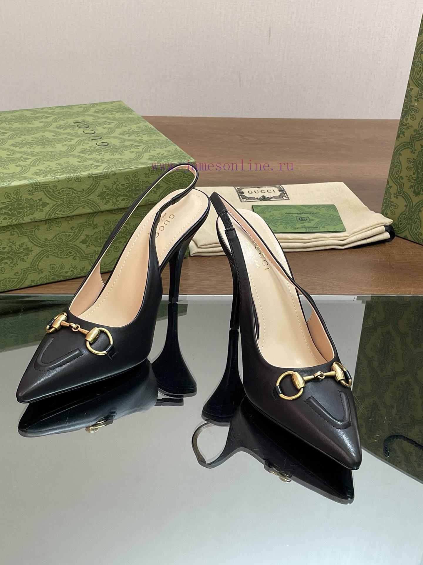 2024 G Home New GUcc ? Horseneck Buckle Exposed Heel Shallow Mouth Thin Heel High Heel Point17nai5fc