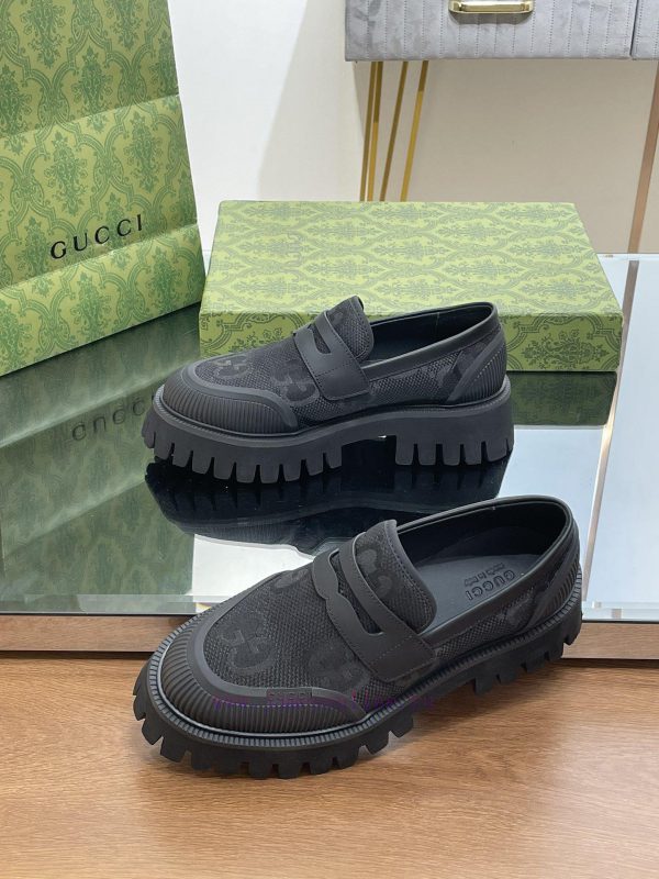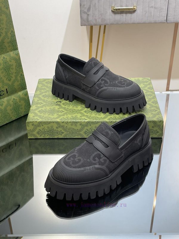 23 Gucci Thick soled GG Couple Shoes Academy Style Retro Casual Shoes Original Custom 11 RemakesThe purchasing agent level is comparable to GZ without any differenceImported calf leather upper with double GG woven fabricLeather lining/footrest11 original mold opening ultra light material wear-resistant bottomSize for Men and Women 35-46 (Female 4041 Male 4546 Customized)Heel height 4 centimeters, forefoot water table 3 centimetersGreen full set packagingThis pair of fitted couple shoes features a large design that interprets the interweaving pattern of the first letters of the brand founder Guccio Gucci’s name. The grooved sole and contrasting rolled edges add a touch of modern fashion, cleverly blending different chapters of the brand’s heritage
