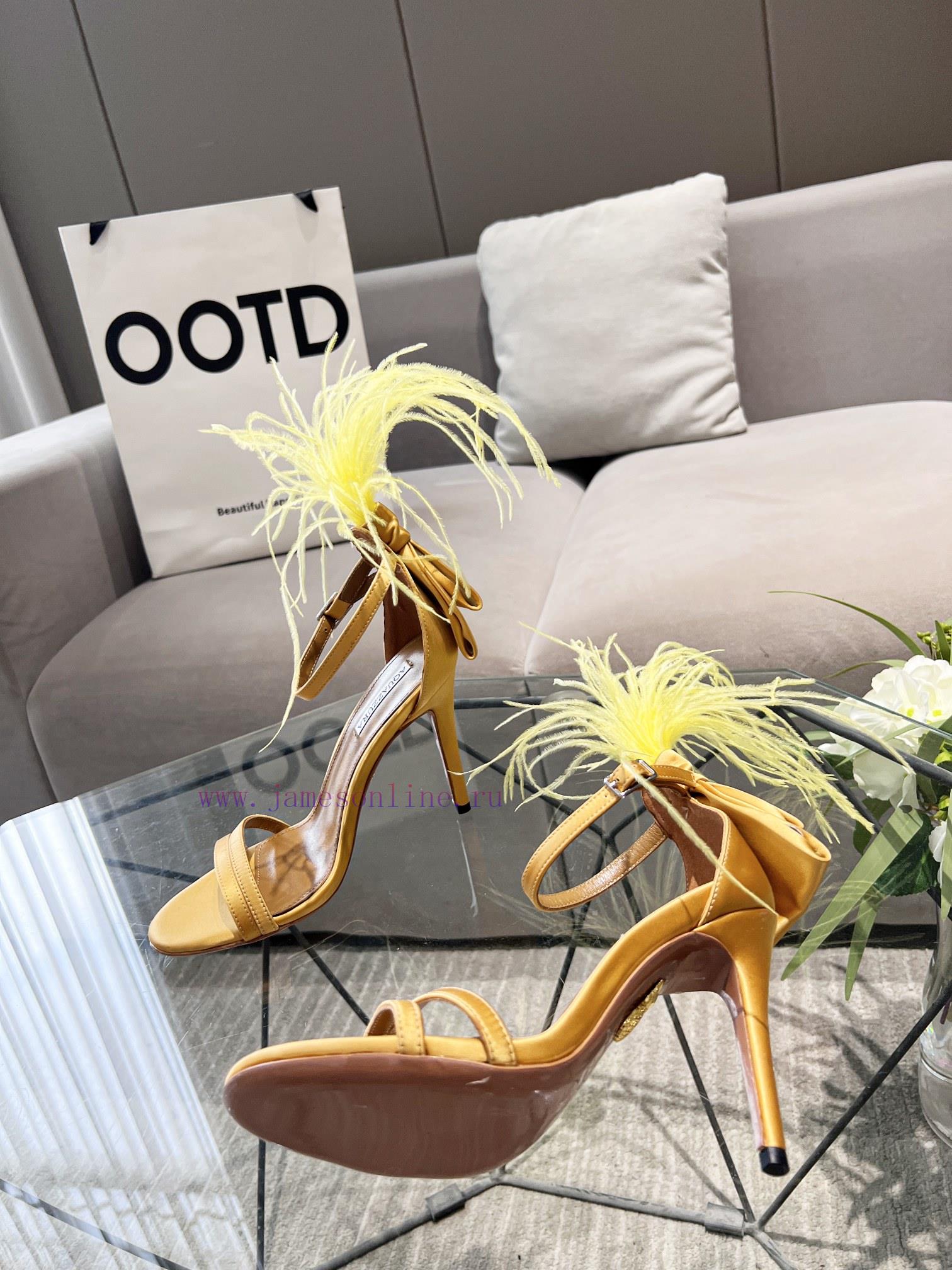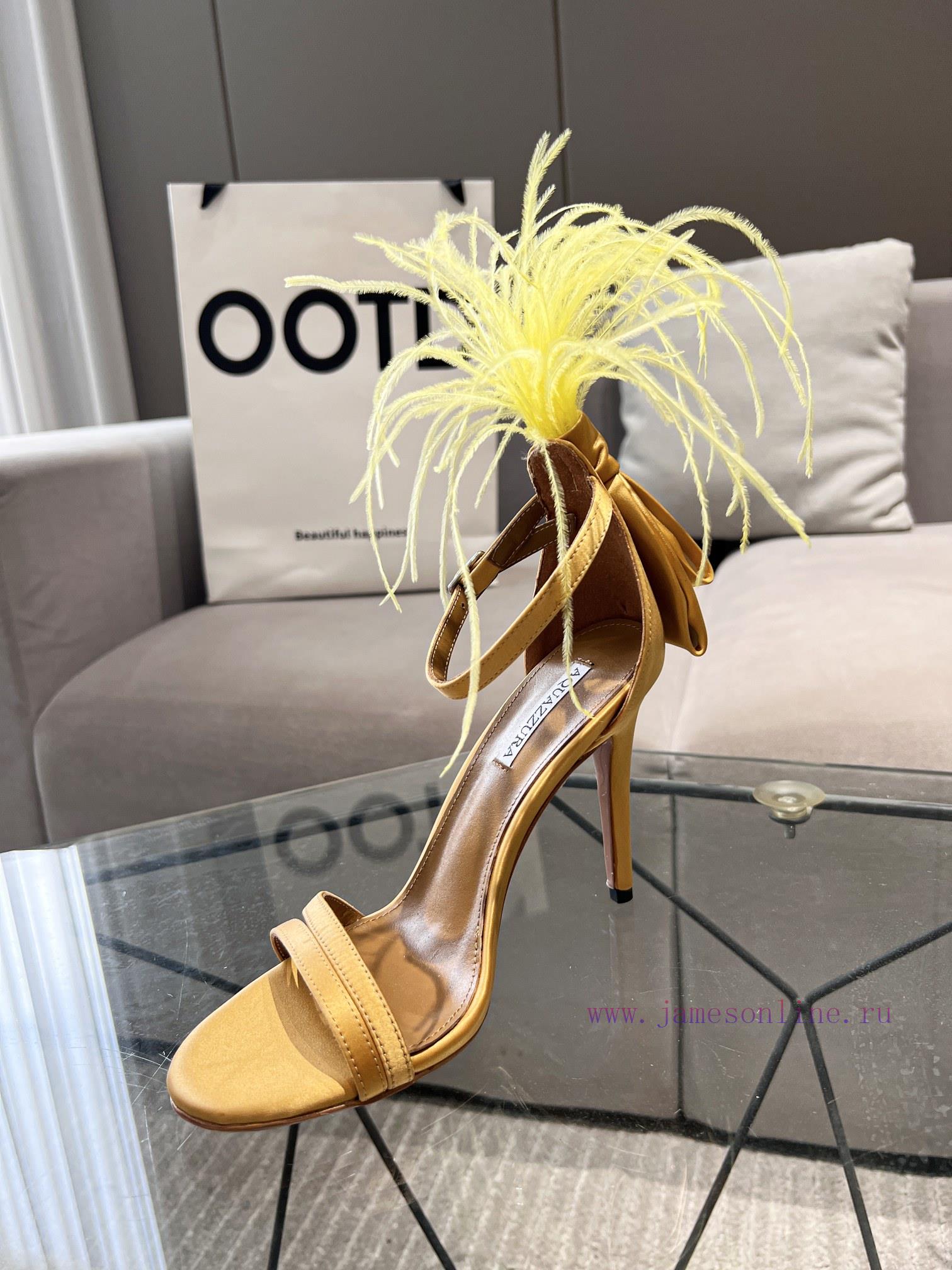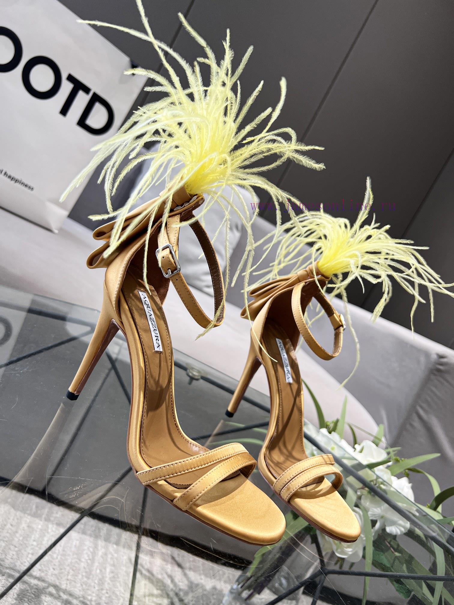 Aquazzura | Pineapple 2 ️⃣ 0 ️⃣ two ️⃣ two ️⃣/ ????? Spring/Summer New Product Italy Quickly Ostrich Hair Water Stained Silk Strap High Heel Sandals F3721 (️️)Imported real silk, Italian water dyed ostrich hair on the shoe upperFoot pads mixed with top layer sheepskinLarge leather sole10cm in heightSizes 35-4134.42 can be customizedPrice