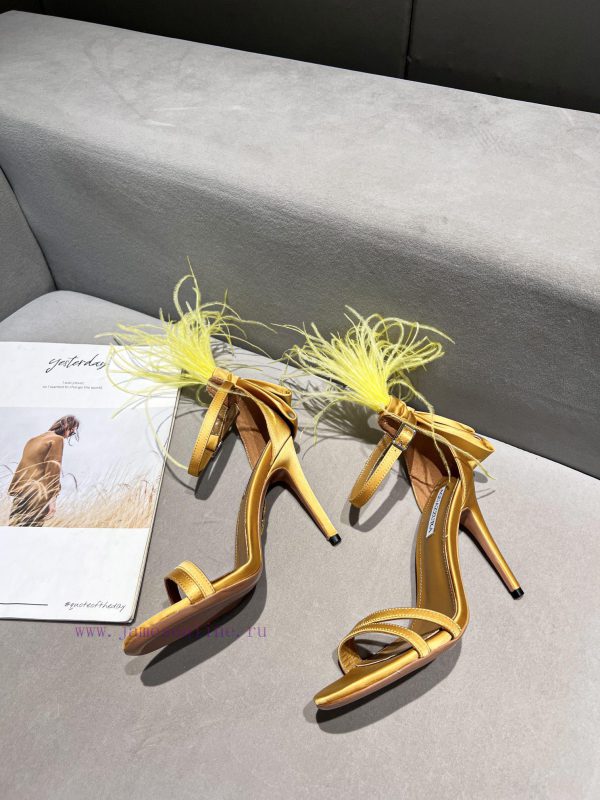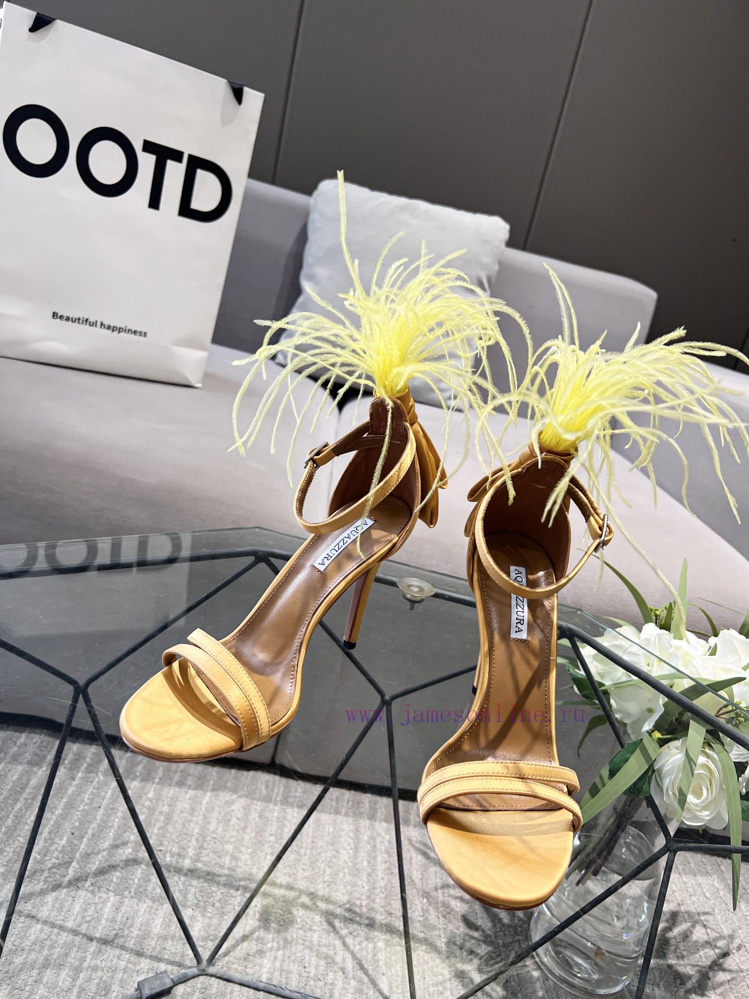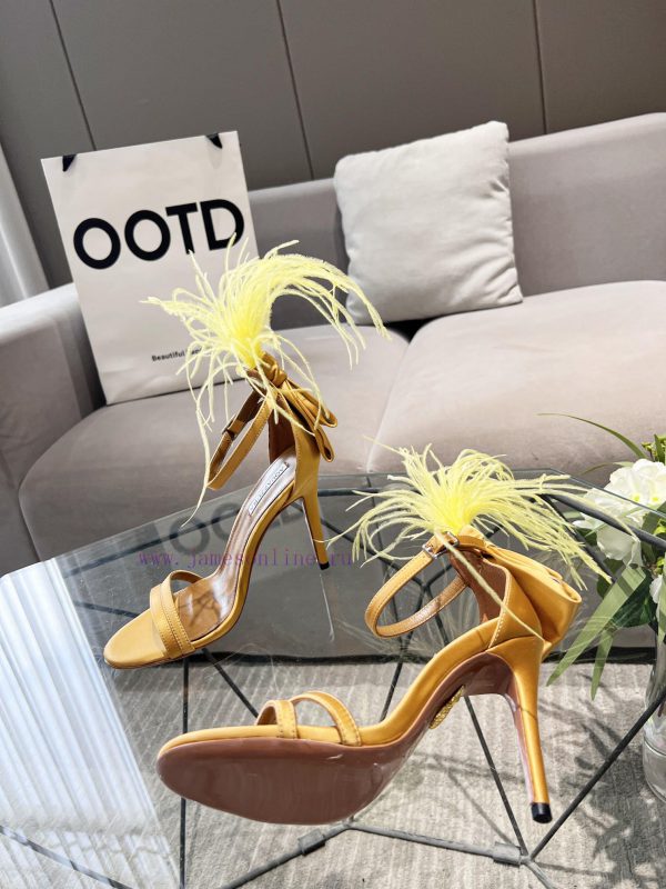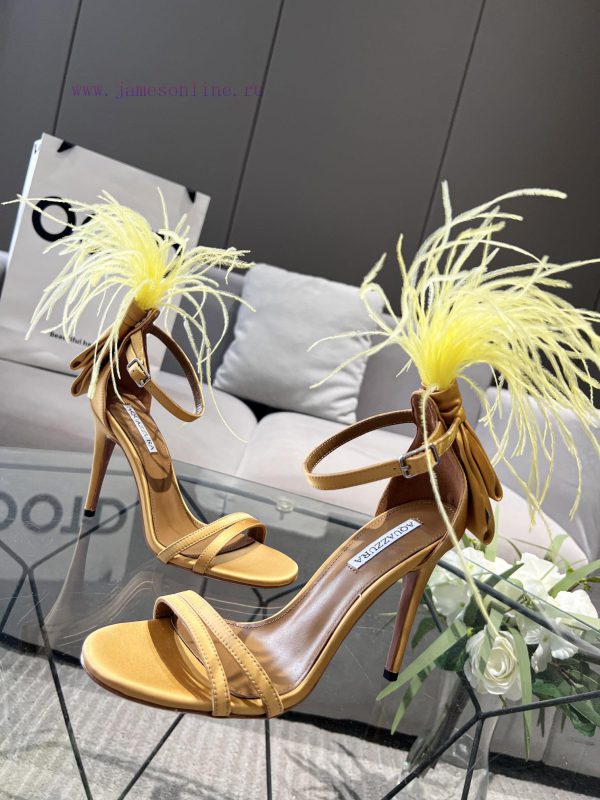 Aquazzura | Pineapple 2 ️⃣ 0 ️⃣ two ️⃣ two ️⃣/ ????? Spring/Summer New Product Italy Quickly Ostrich Hair Water Stained Silk Strap High Heel Sandals F3721 (️️)Imported real silk, Italian water dyed ostrich hair on the shoe upperFoot pads mixed with top layer sheepskinLarge leather sole10cm in heightSizes 35-4134.42 can be customizedPrice