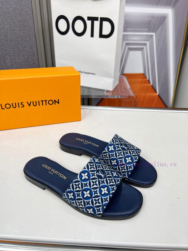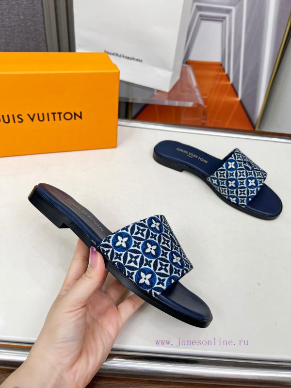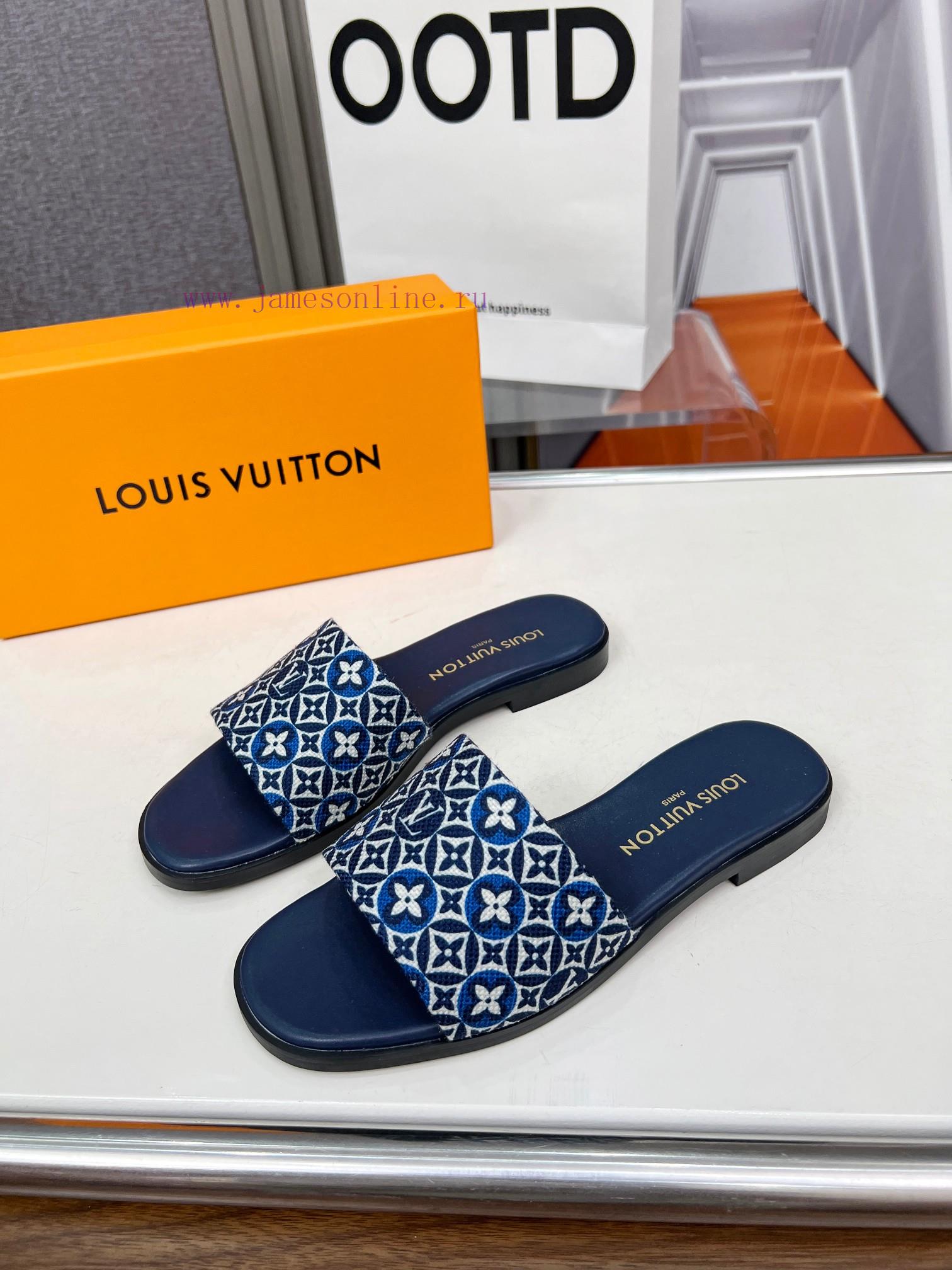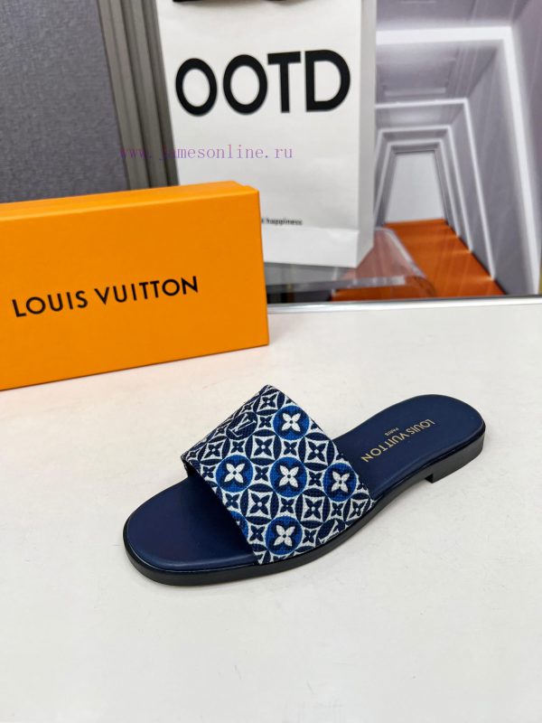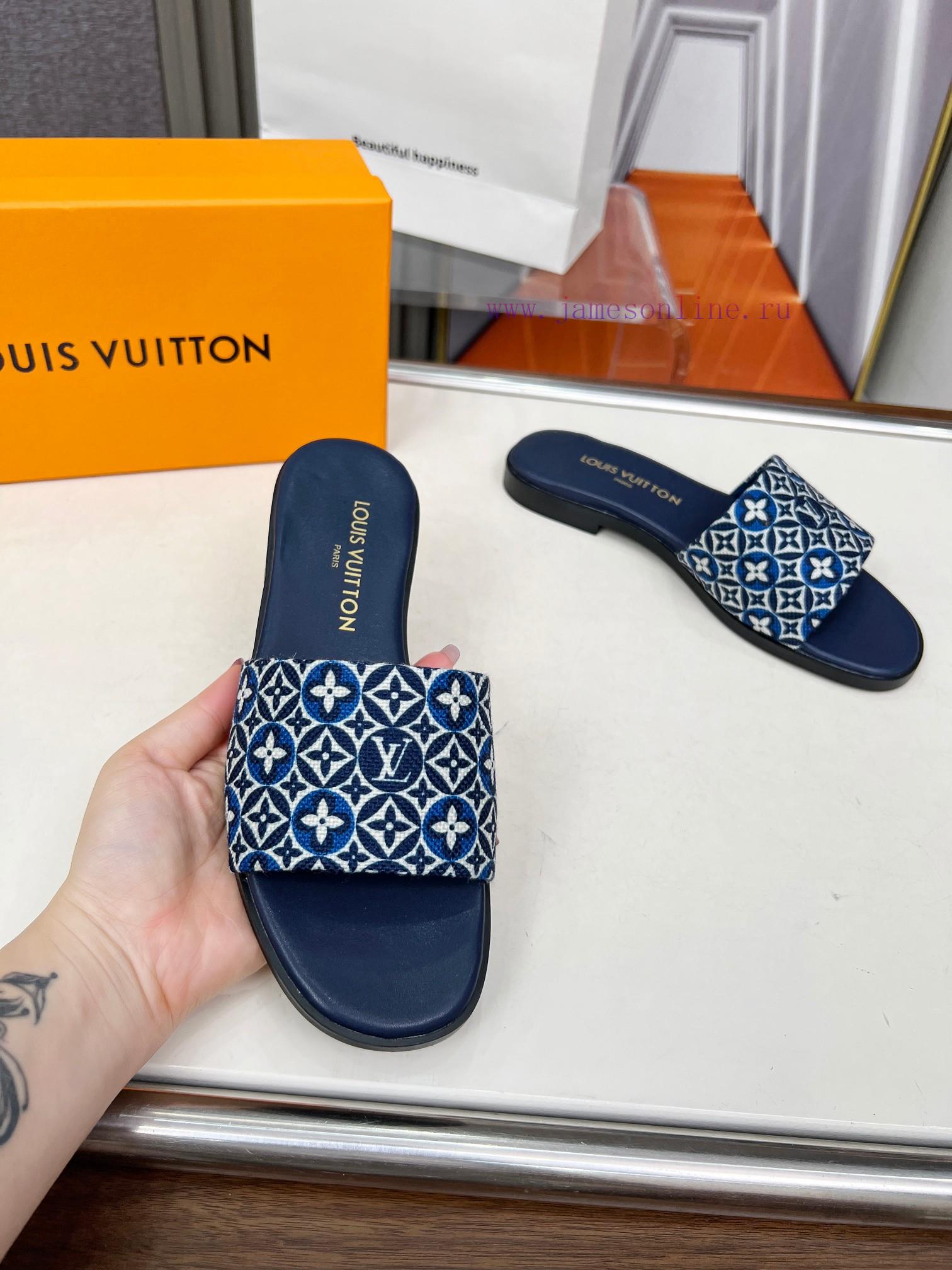 LV 2025 Spring/Summer New Lily Cool Trailer | A lazy and luxurious feeling at a glance****Summer must-have * * LV, these Lily flat bottomed sandals are really breathtakingly beautiful~▫️ ** Classic Louis Vuitton MONOGRAM denim fabric * *+embossed leather label * *, casual and high-end, perfect for pairing with jeans or skirts▫️ ** Soft leather sole+rubber shoe bed * *, feeling like stepping on clouds ️, walking for a day without tiring feet~▫️ Low key LV vintage logo, attention to detail, ecstatic. Wearing it out in summer, you can easily snap it into an Instagram style blockbuster**Small and fashionable without collision * *, sisters rushLV2025 Spring/Summer Flat Cool Dragging Lazy Gospel Luxury DressingColor Apricot BlueSizes 35-40 41424344 can be customized without return or exchange. Genuine leather sole can be customized with+40 non return or exchange